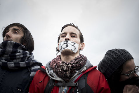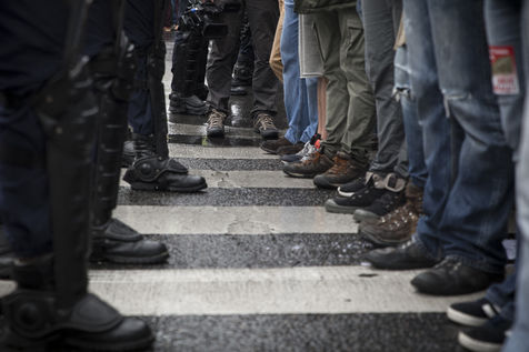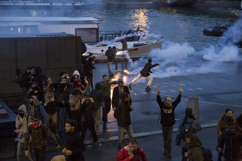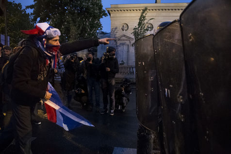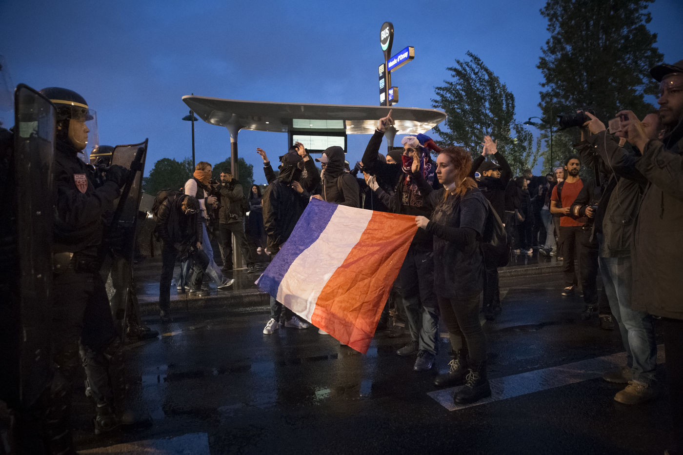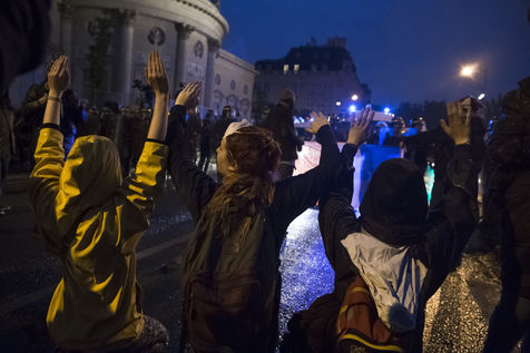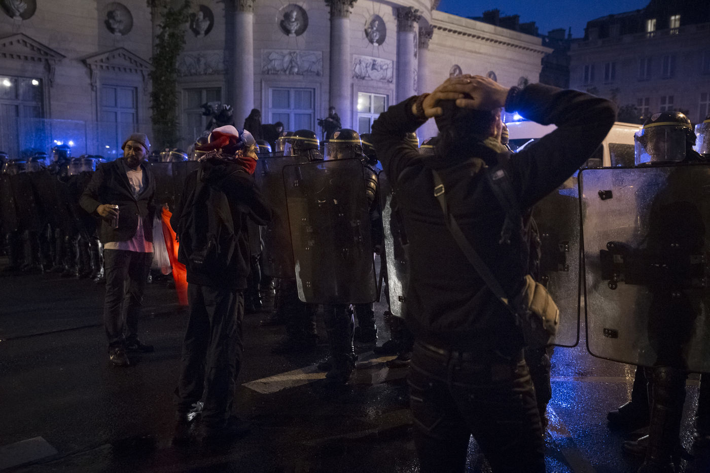 Paris, France, Tuesday, May 10, 2016. Hundreds of demonstrators came to protest in front of the National Assembly against the Prime Minister's use of 49.3 in order to pass the El Khomri labor law.