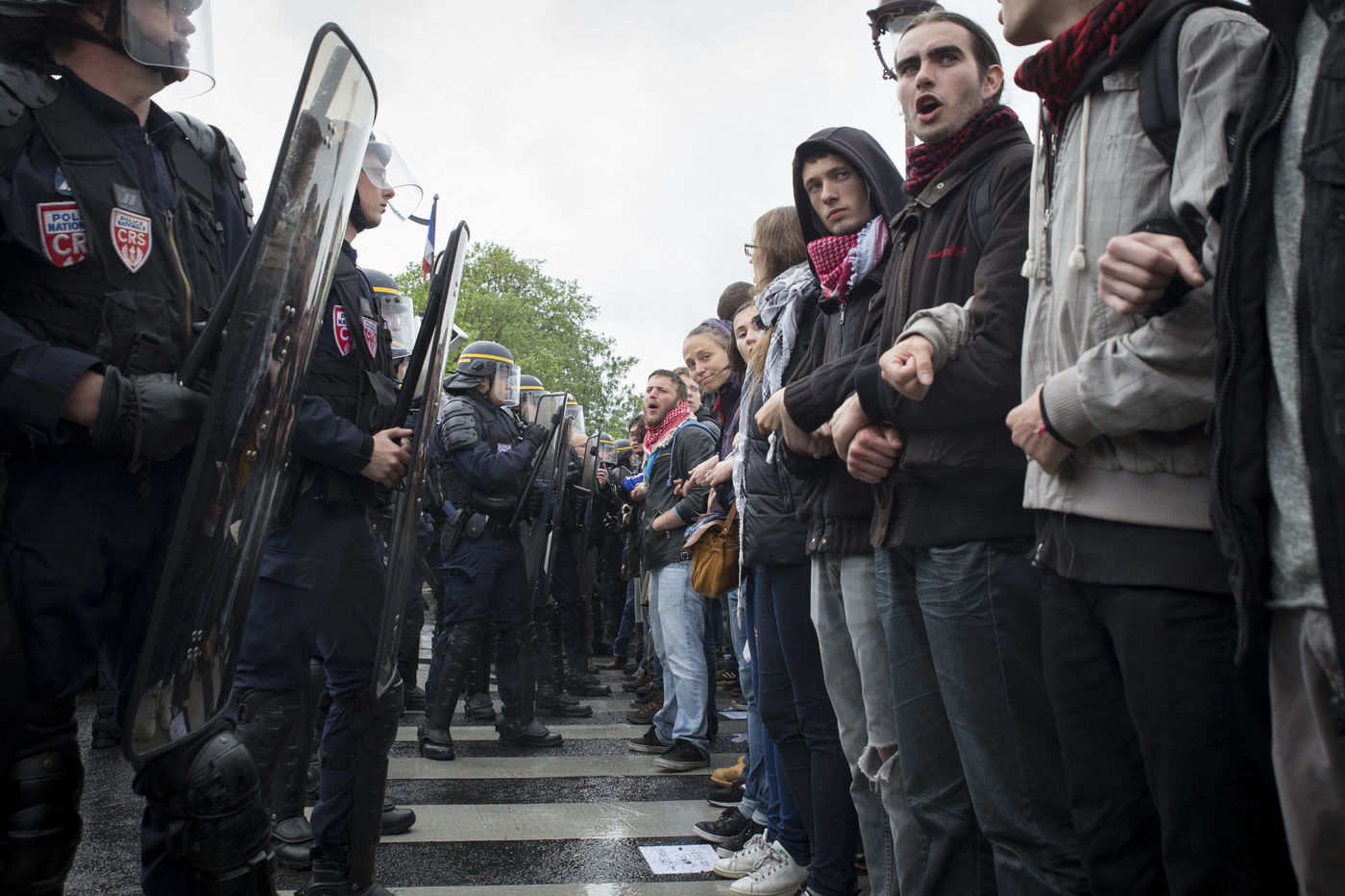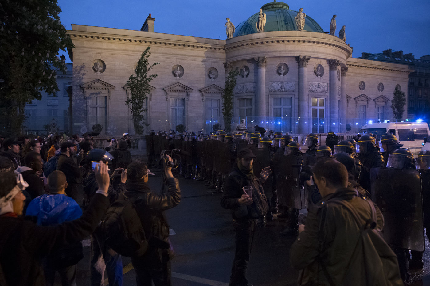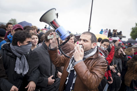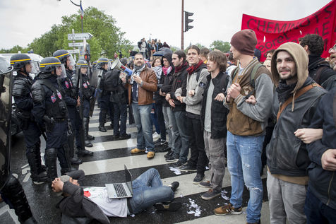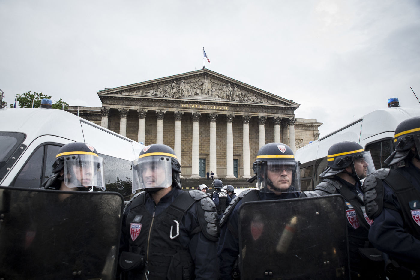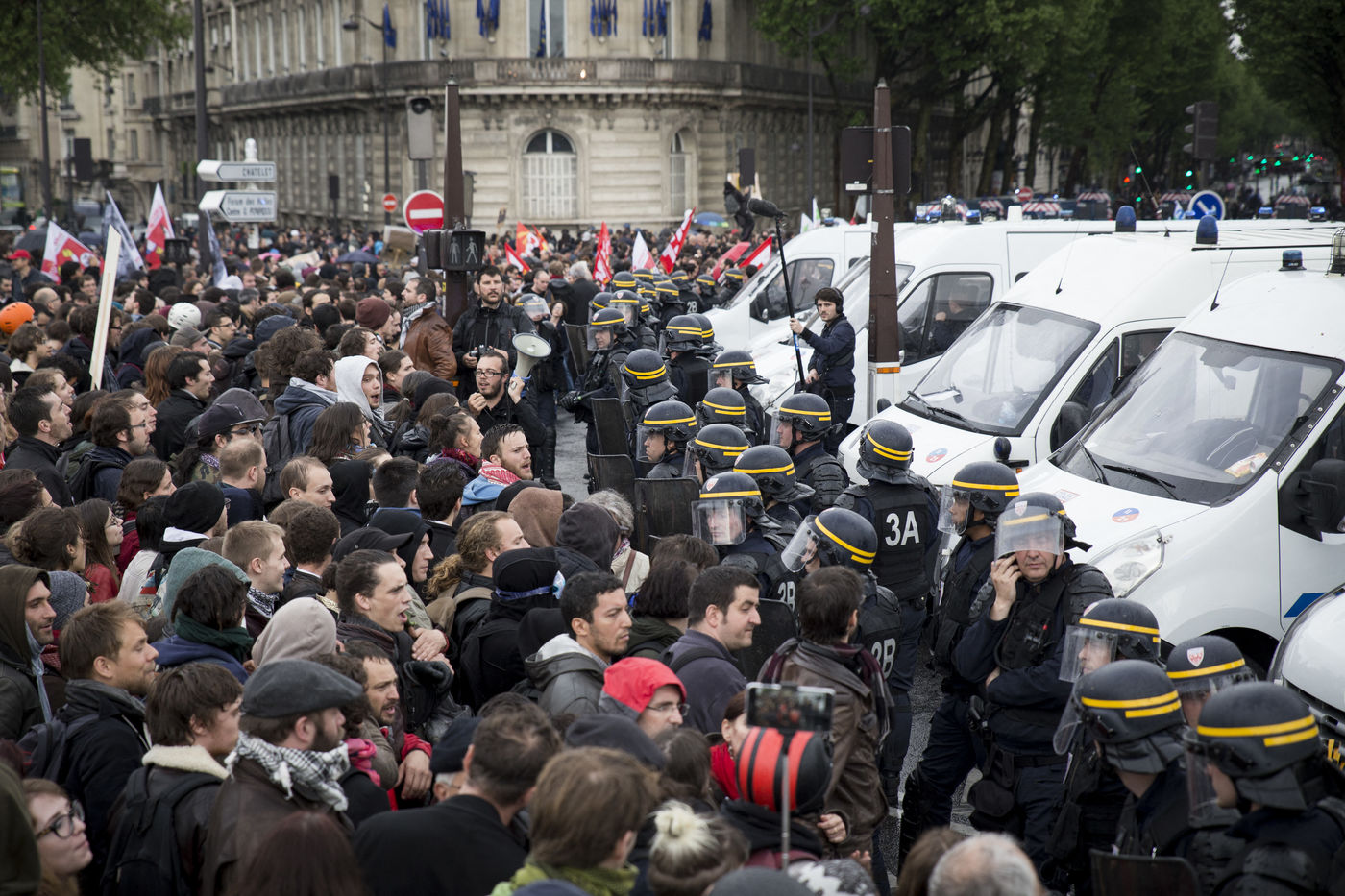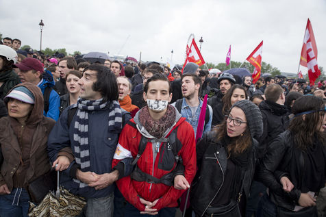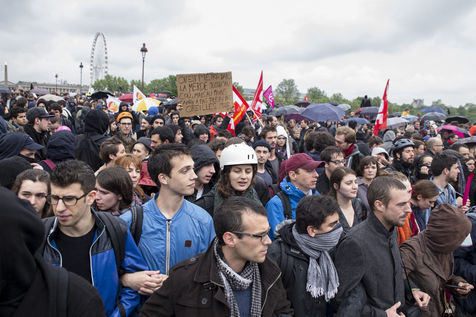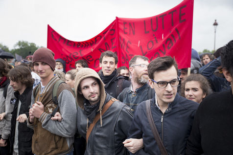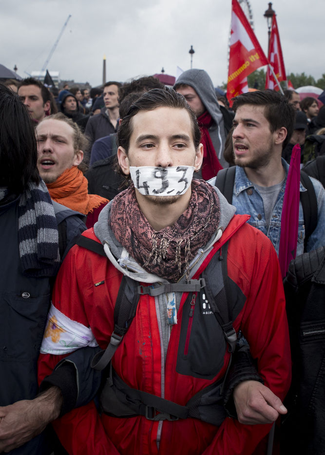 Paris, France, le mardi 10 mai 2016. Des centaines de de manifestants sont venus protester devant l'assemblee nationale contre le recours du Premier Ministre au 49.3 afin de passer la loi travail El Khomri.