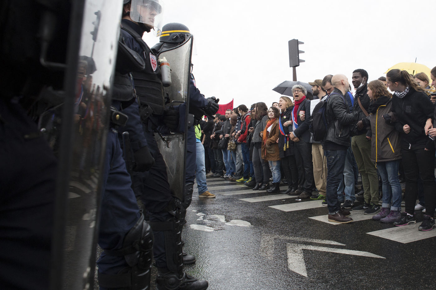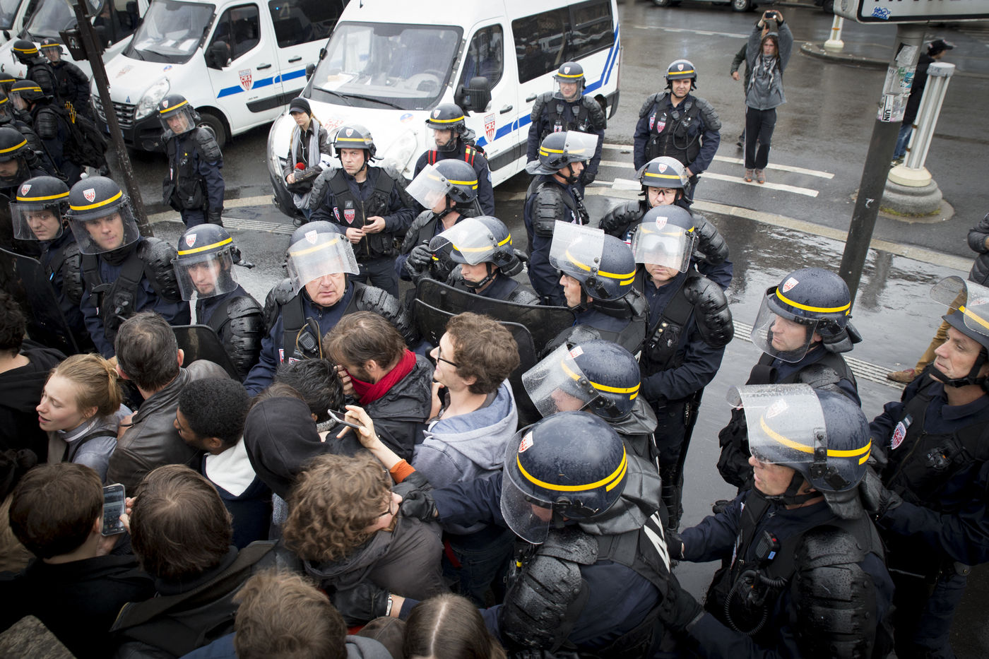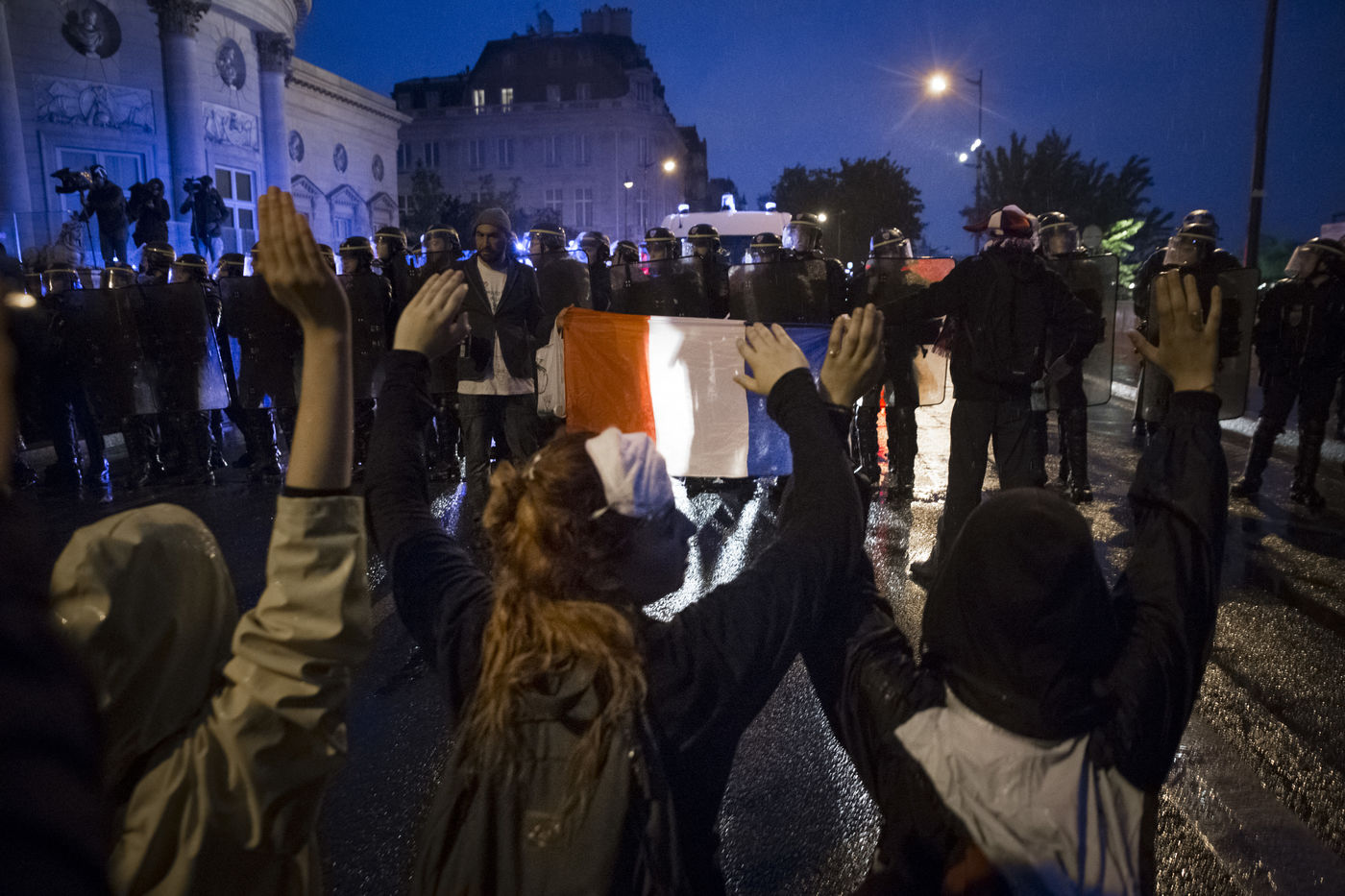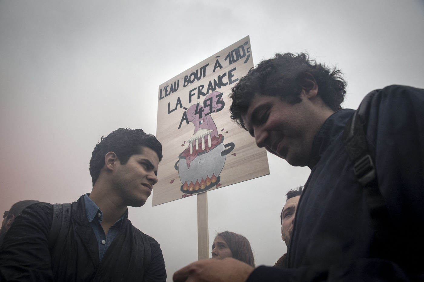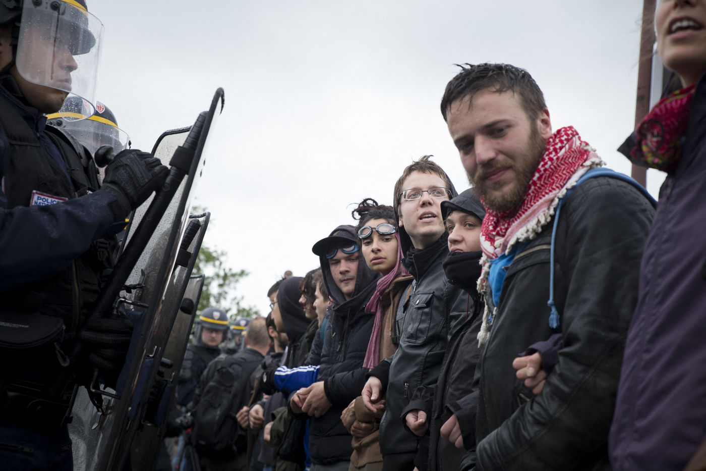 Paris, France, le mardi 10 mai 2016. Des centaines de de manifestants sont venus protester devant l'assemblee nationale contre le recours du Premier Ministre au 49.3 afin de passer la loi travail El Khomri.