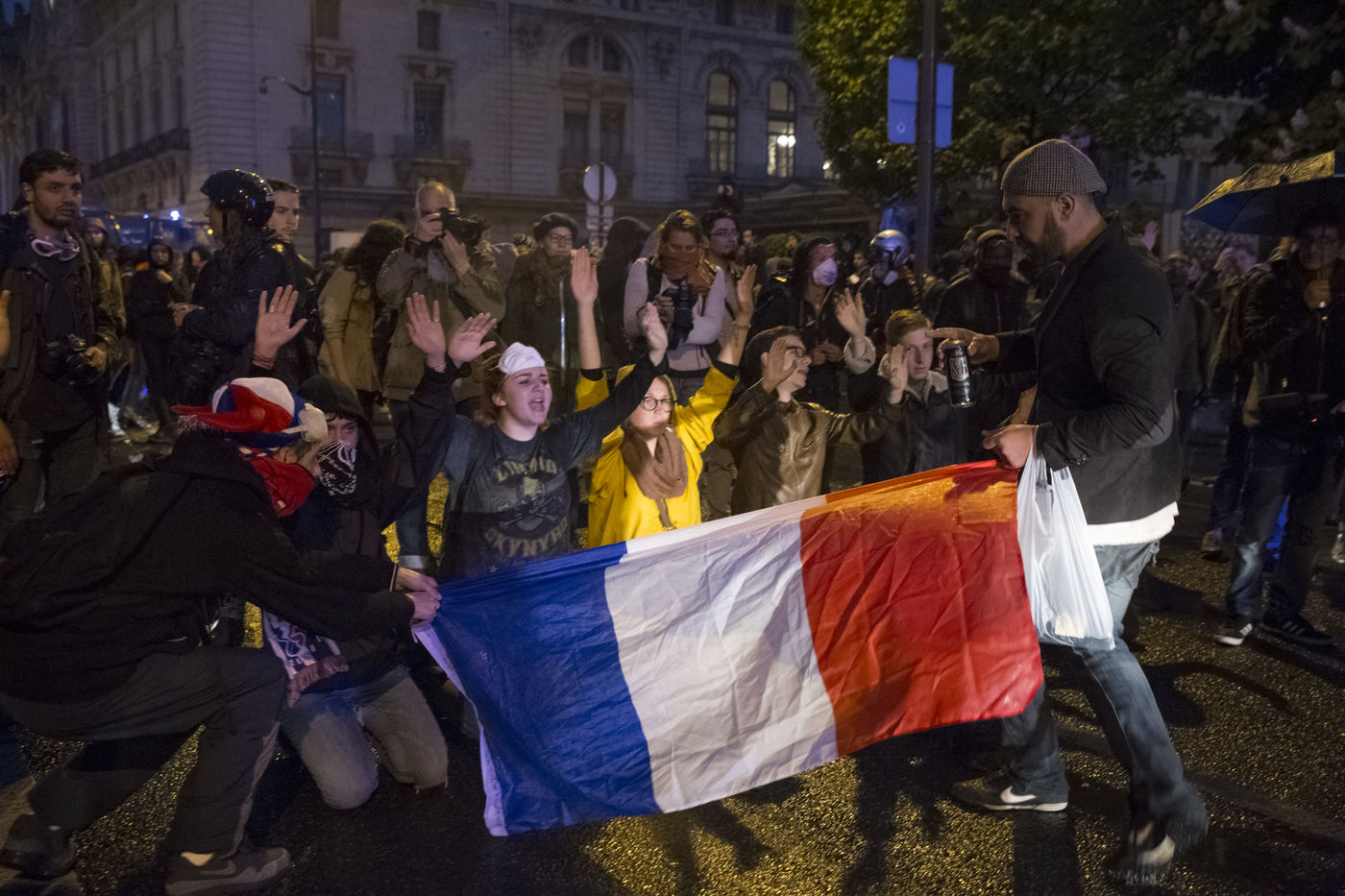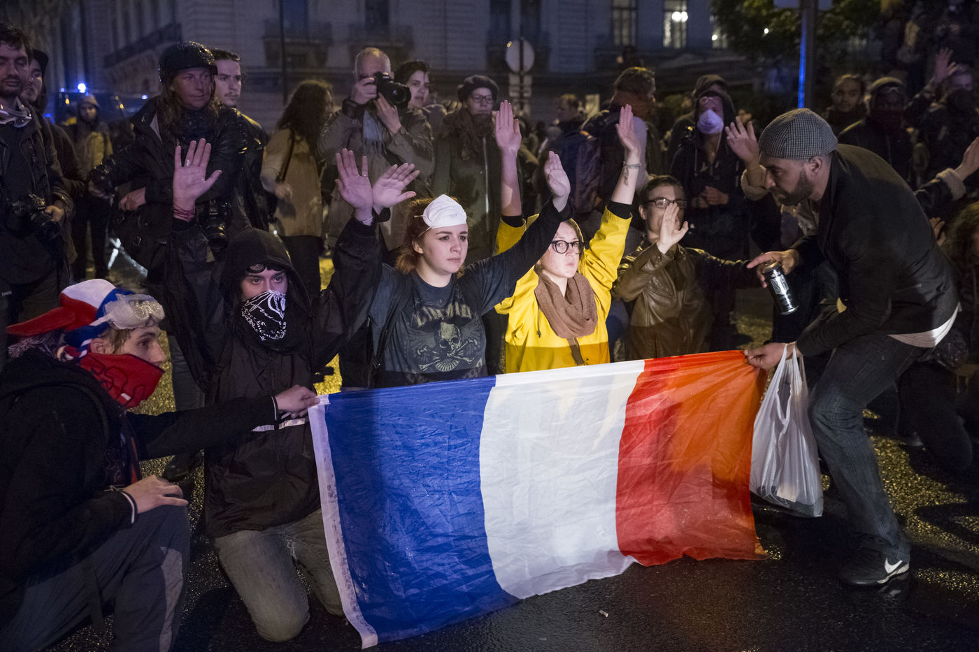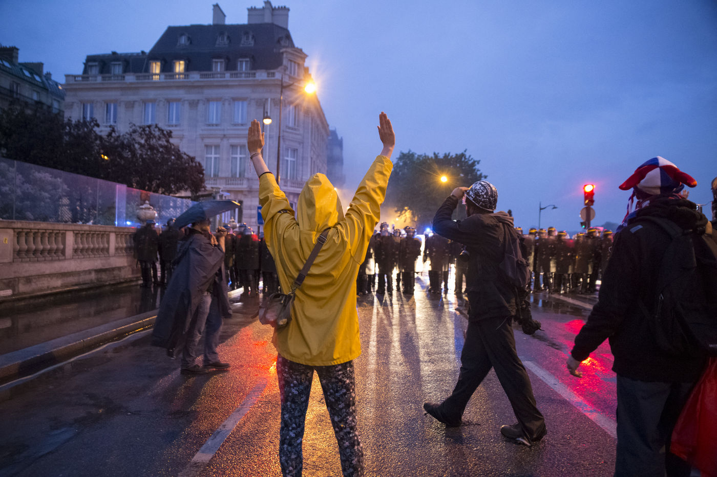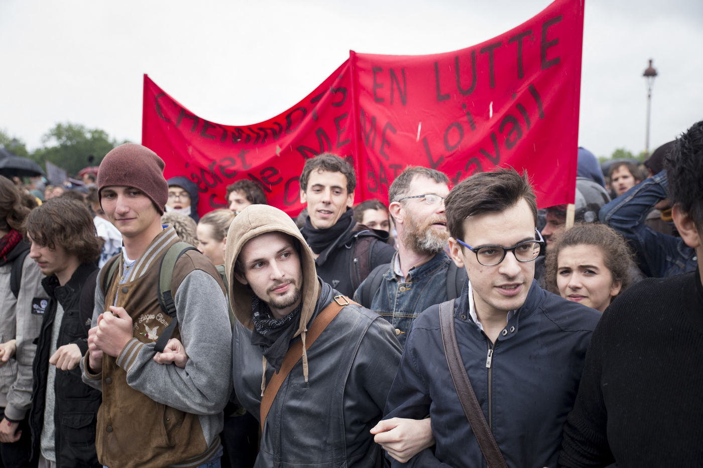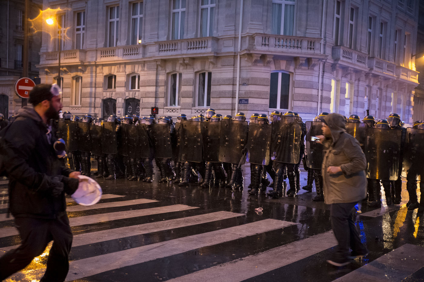 Paris, France, le mardi 10 mai 2016. Des centaines de de manifestants sont venus protester devant l'assemblee nationale contre le recours du Premier Ministre au 49.3 afin de passer la loi travail El Khomri.