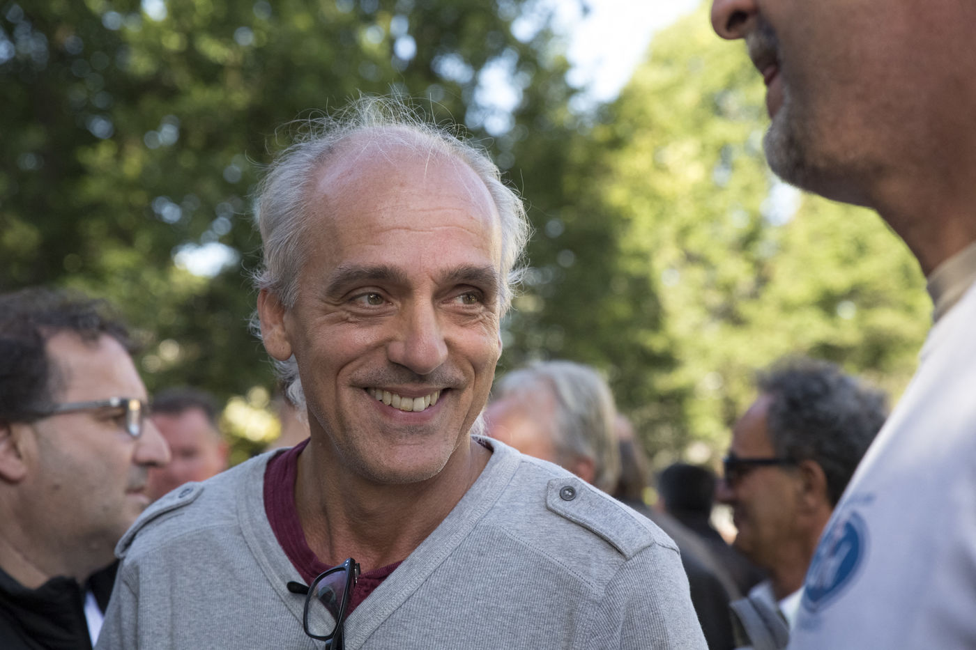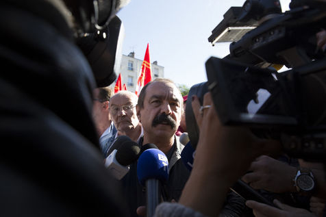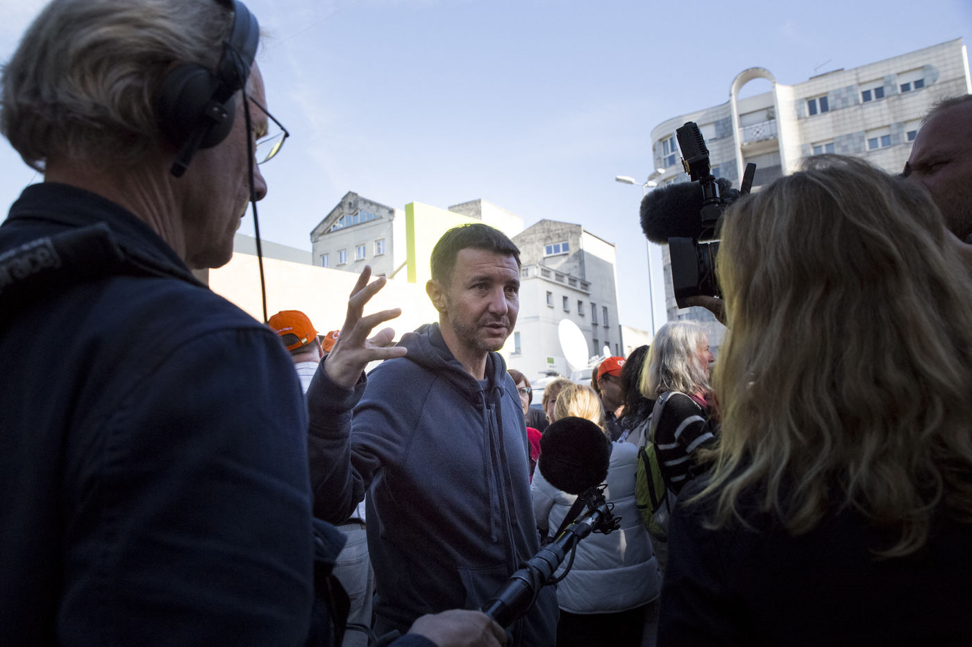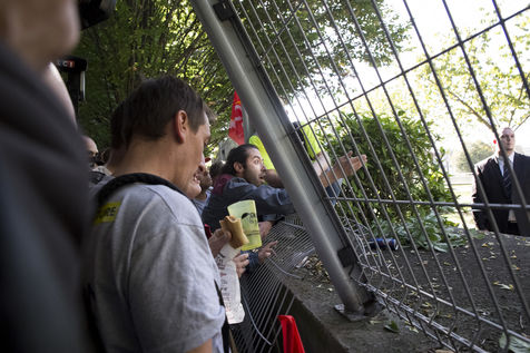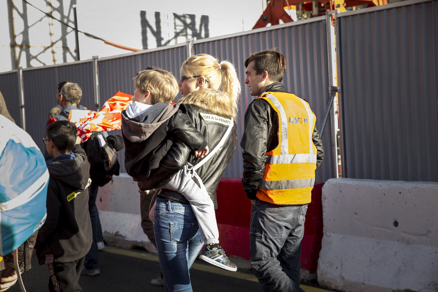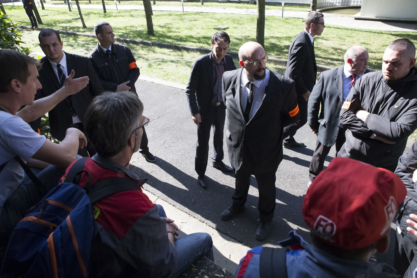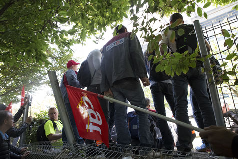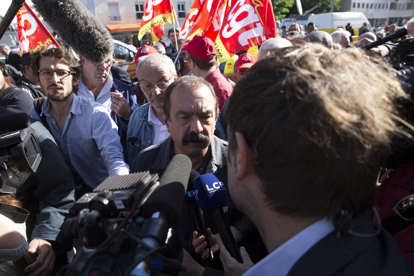 Saint Ouen, France, September 27, 2016. Rally against layoffs in front of Alstom headquarters. Employees demonstrate after the announcement of the closure of the historical site of Belfort.