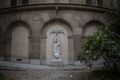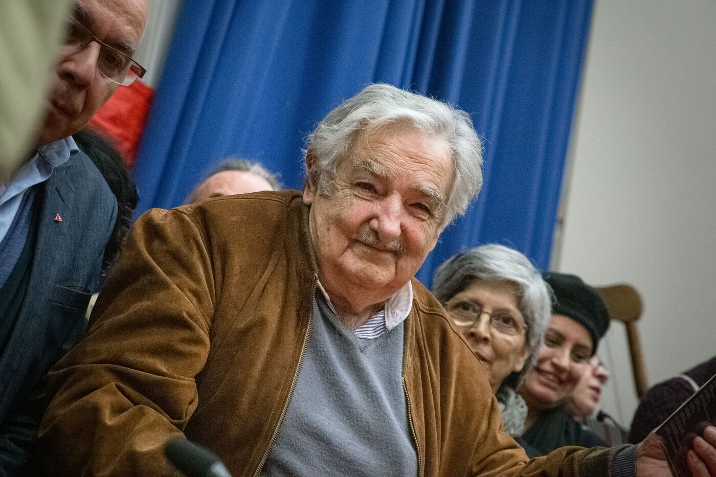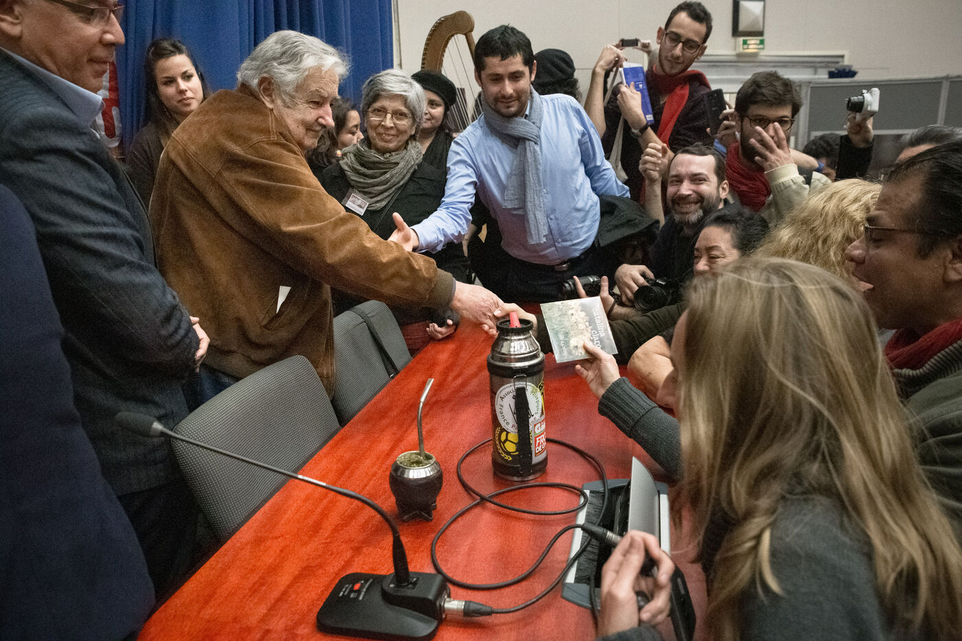 Paris, France, October 29, 2015. Visiting Paris, former Uruguayan president Jose Mujica Cordano, nicknamed “Pepe Mujica”, met with Jean-Luc Mélenchon at a conference at the Ecole de Médecine de Paris to inaugurate a series of events as part of COP 21.