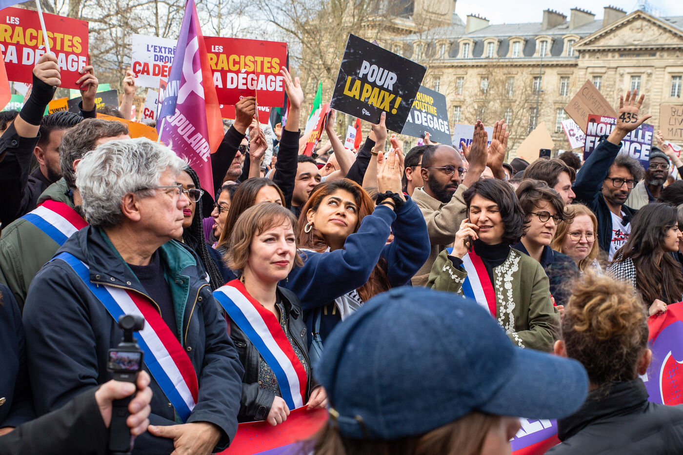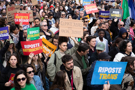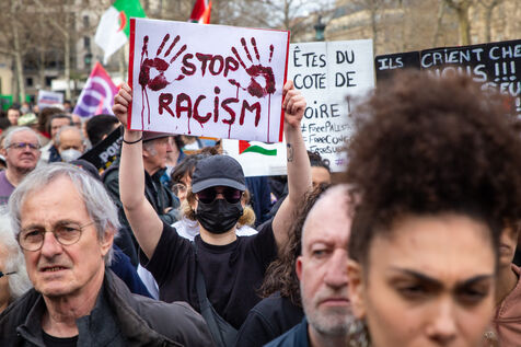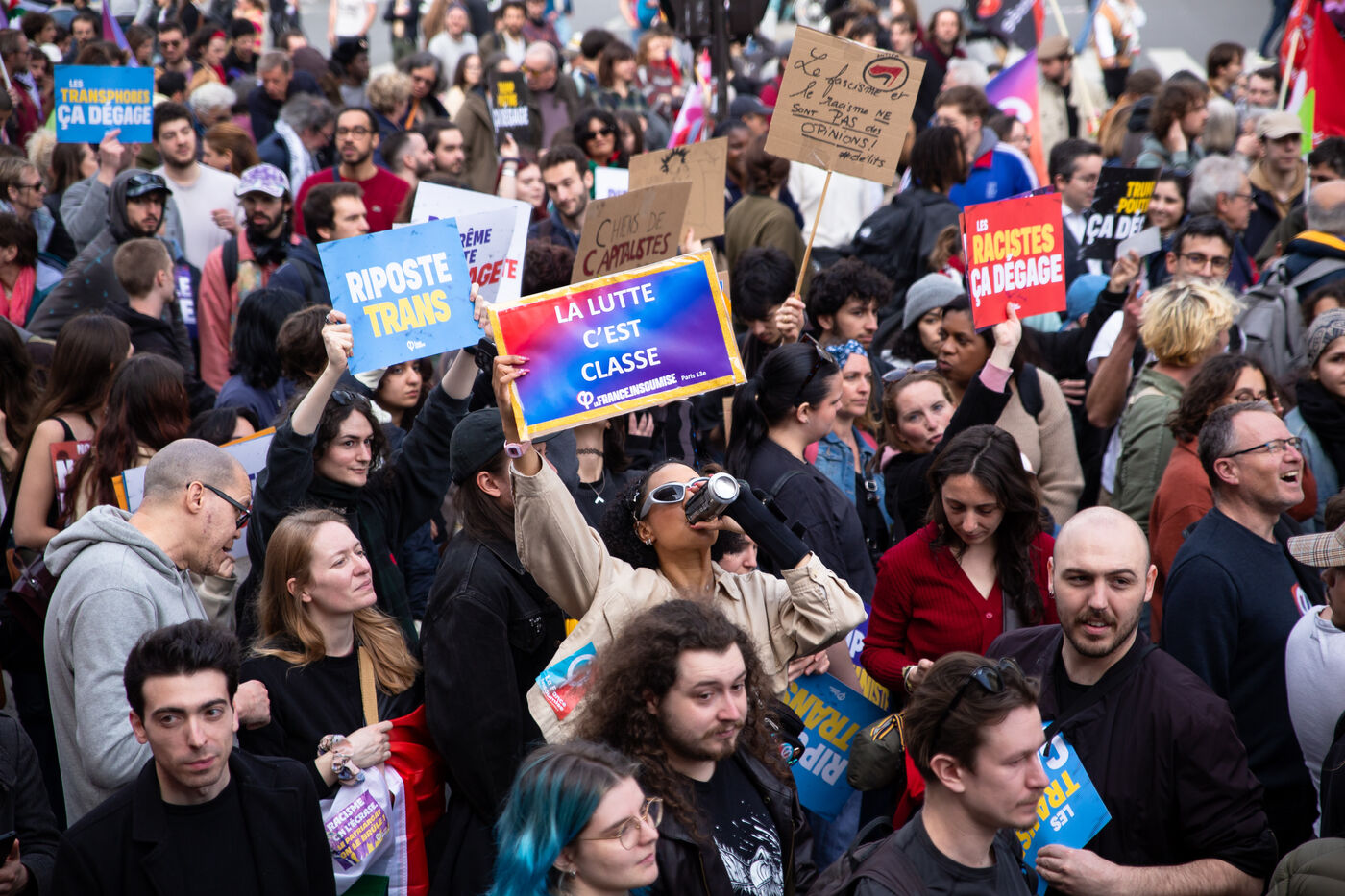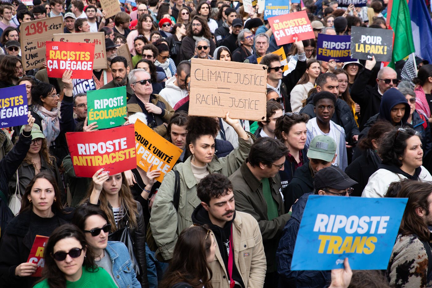FRANCE, Paris, March 22, 2025. For the International Day Against Racism and Fascism, several associations, unions, collectives and political parties had called for a demonstration to warn of the rise of the extreme right and to promote a project for a humanist, supportive and egalitarian society.