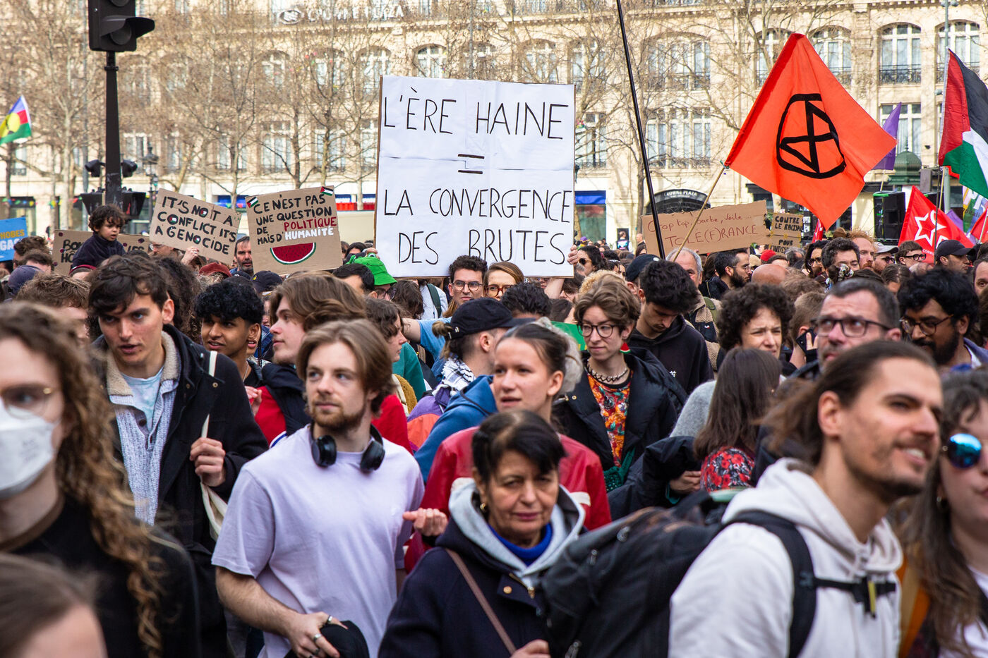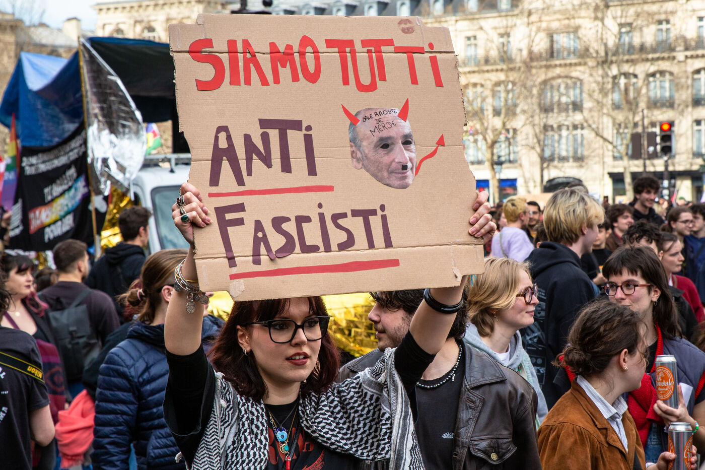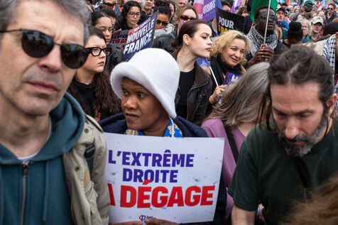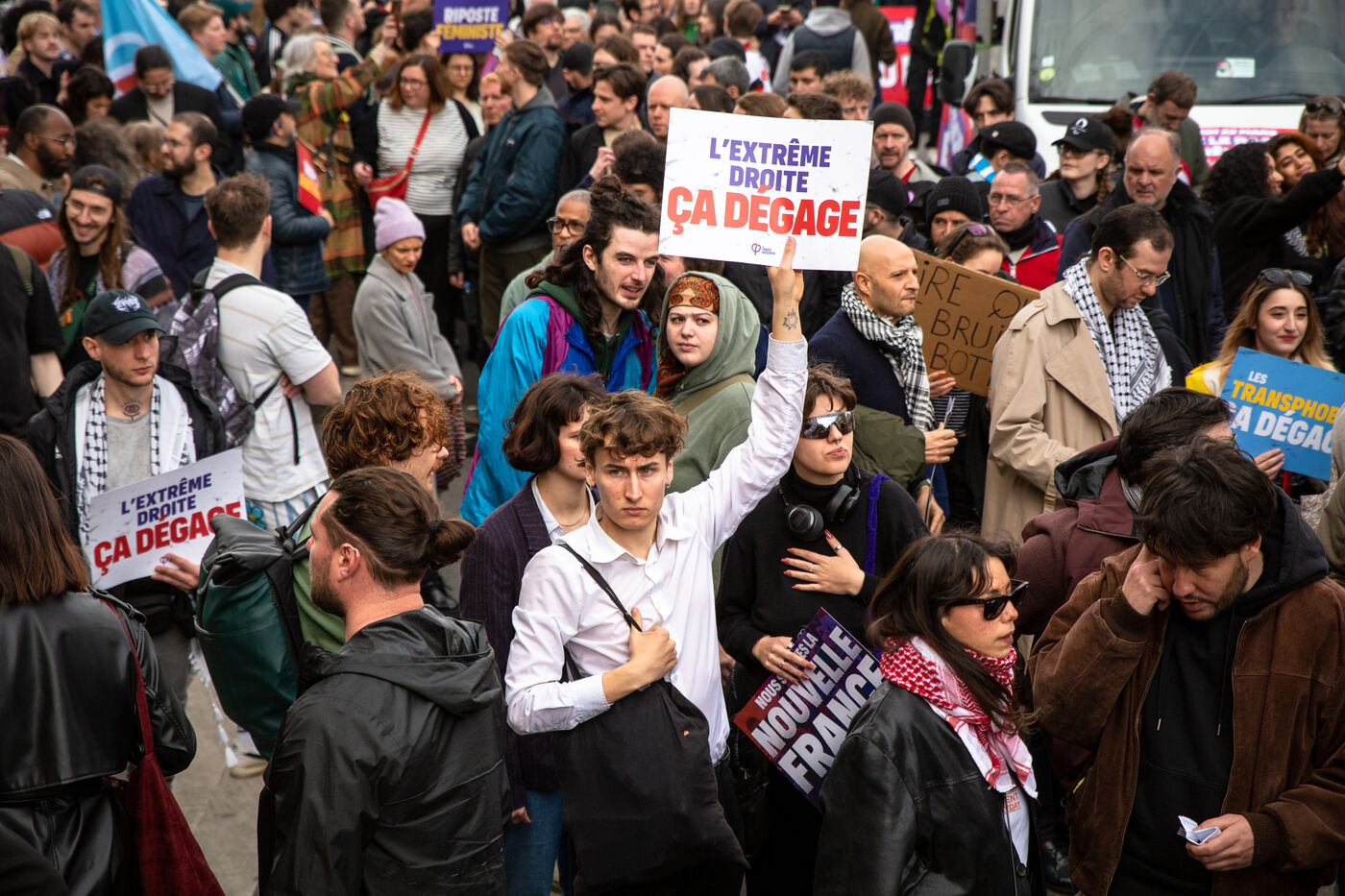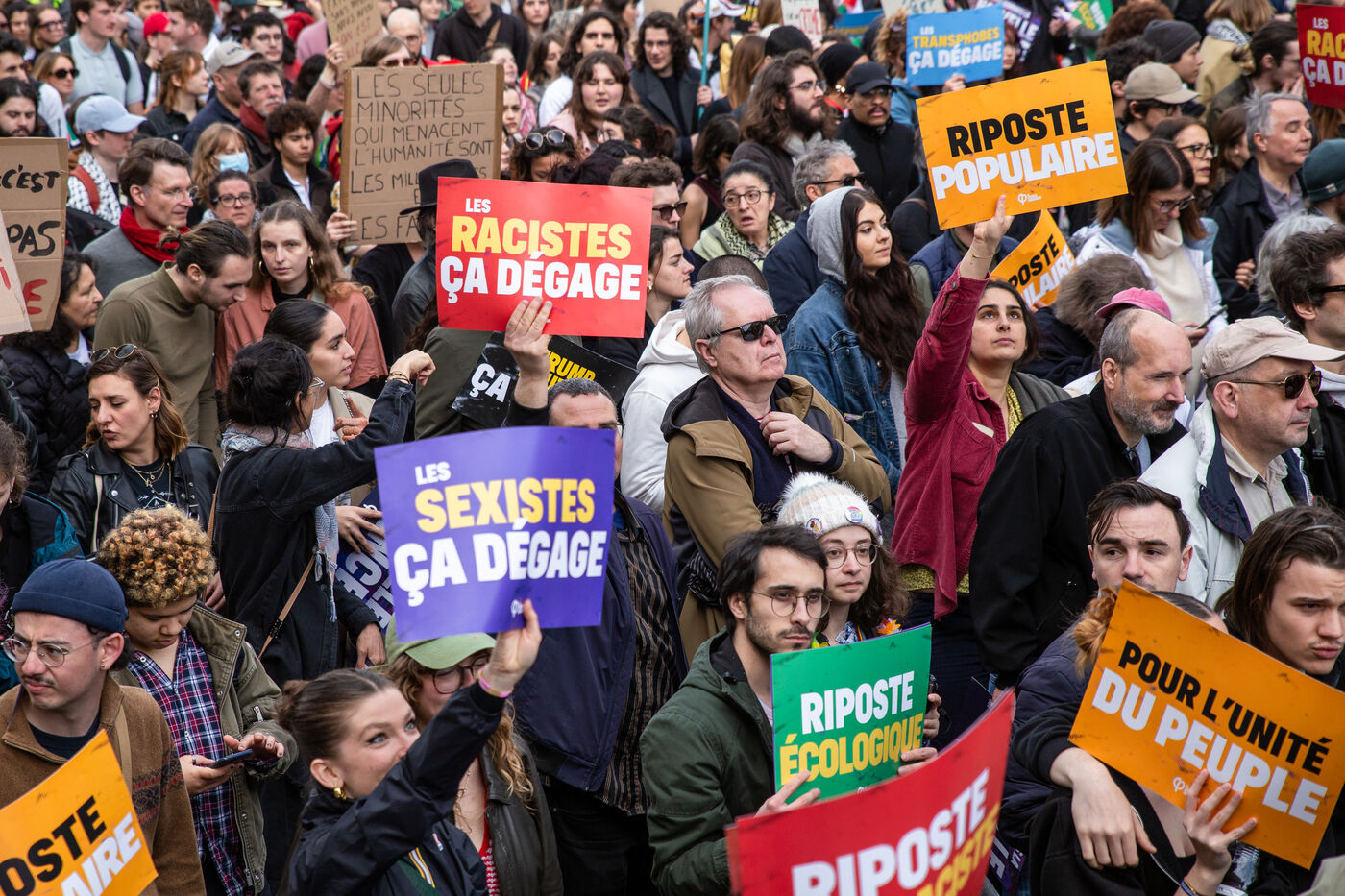 FRANCE, Paris, March 22, 2025. For the International Day Against Racism and Fascism, several associations, unions, collectives and political parties had called for a demonstration to warn of the rise of the extreme right and to promote a project for a humanist, supportive and egalitarian society.