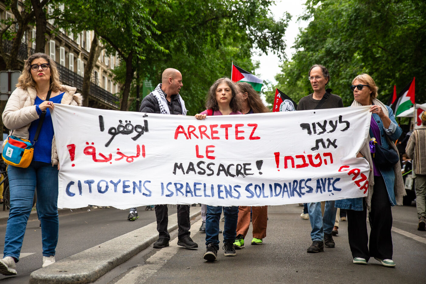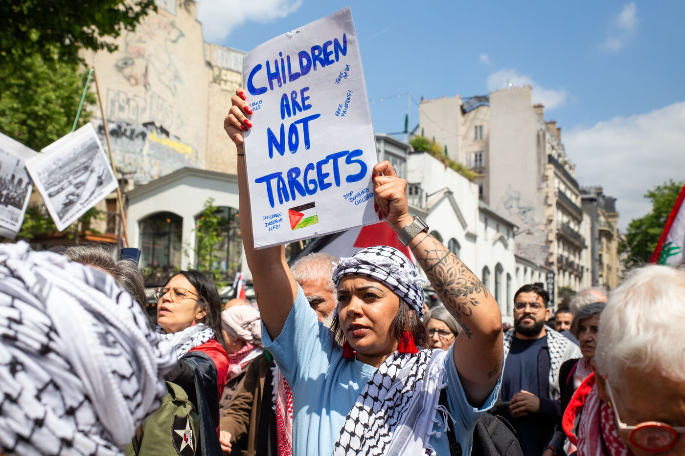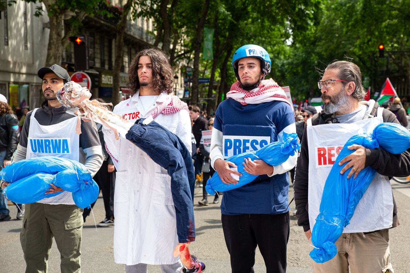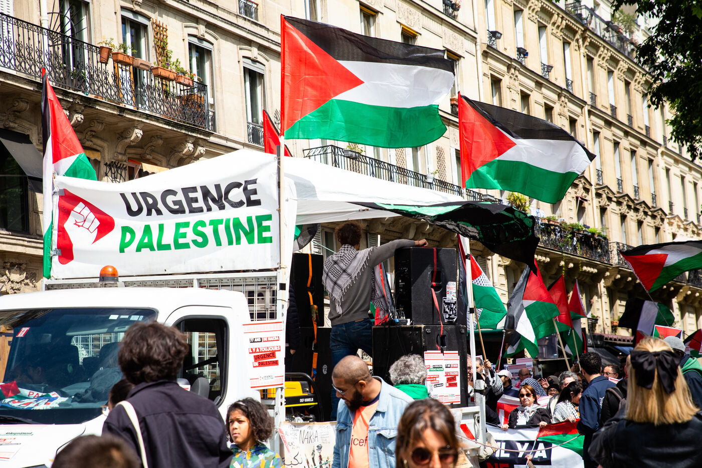 FRANCE, Paris, May 17, 2025. Demonstration in support of the Palestinian people and commemoration of the Nakba, which means “catastrophe” and refers to the Palestinian exodus following the creation of the State of Israel and the defeat of the Arab countries in the first Arab-Israeli war in 1948. A duty to remember for pro-Palestinian activists, it aims to keep Palestine in the public debate and influence diplomatic decisions, notably for the recognition of the Palestinian state.