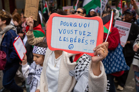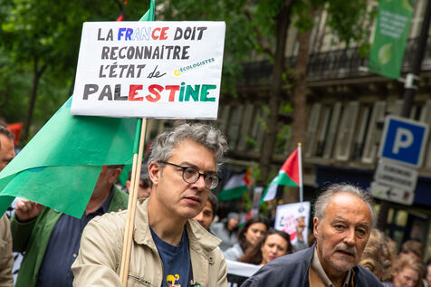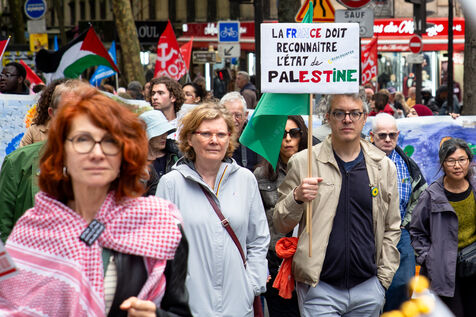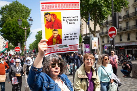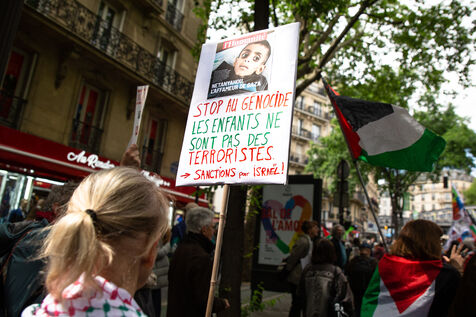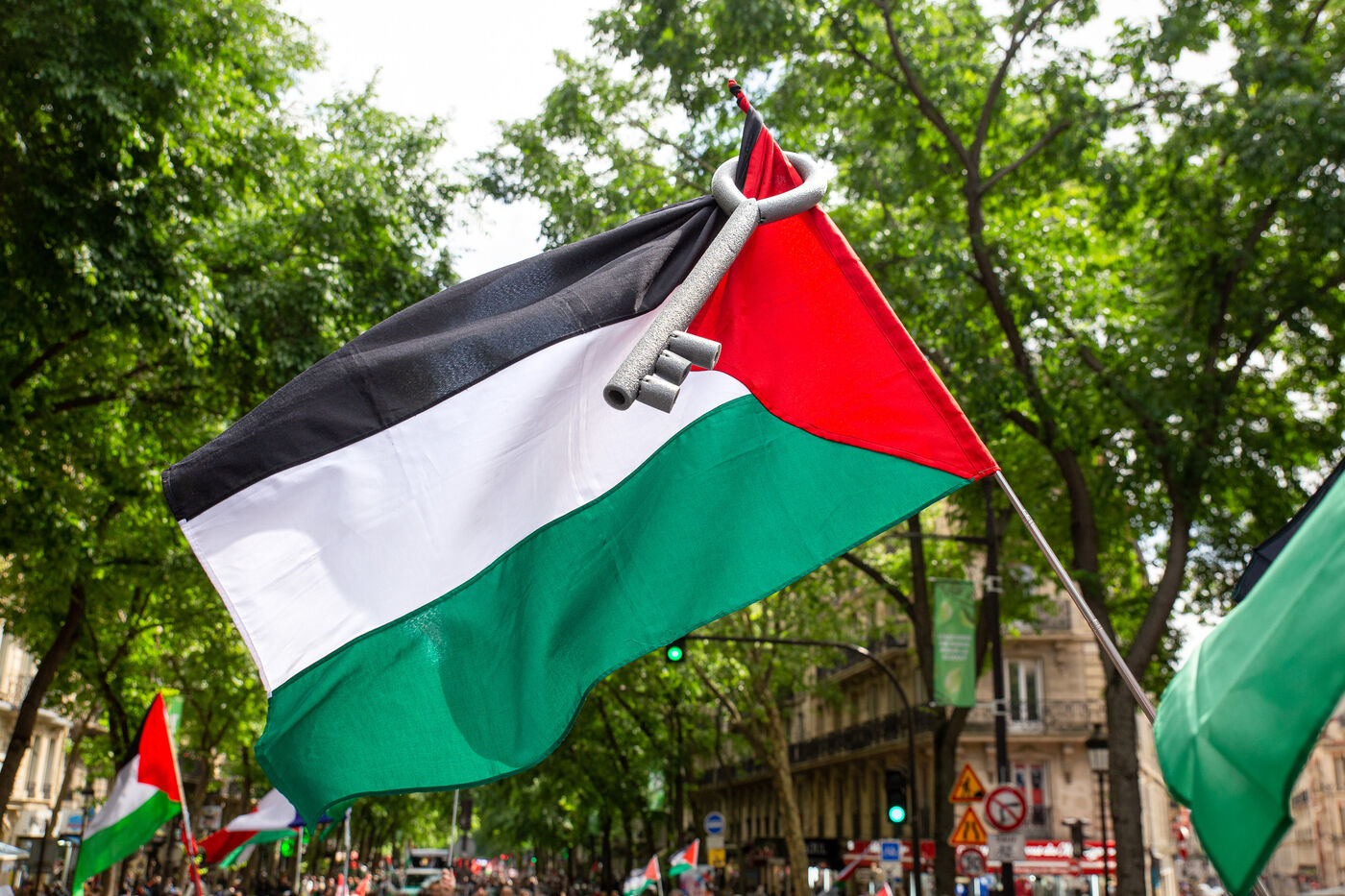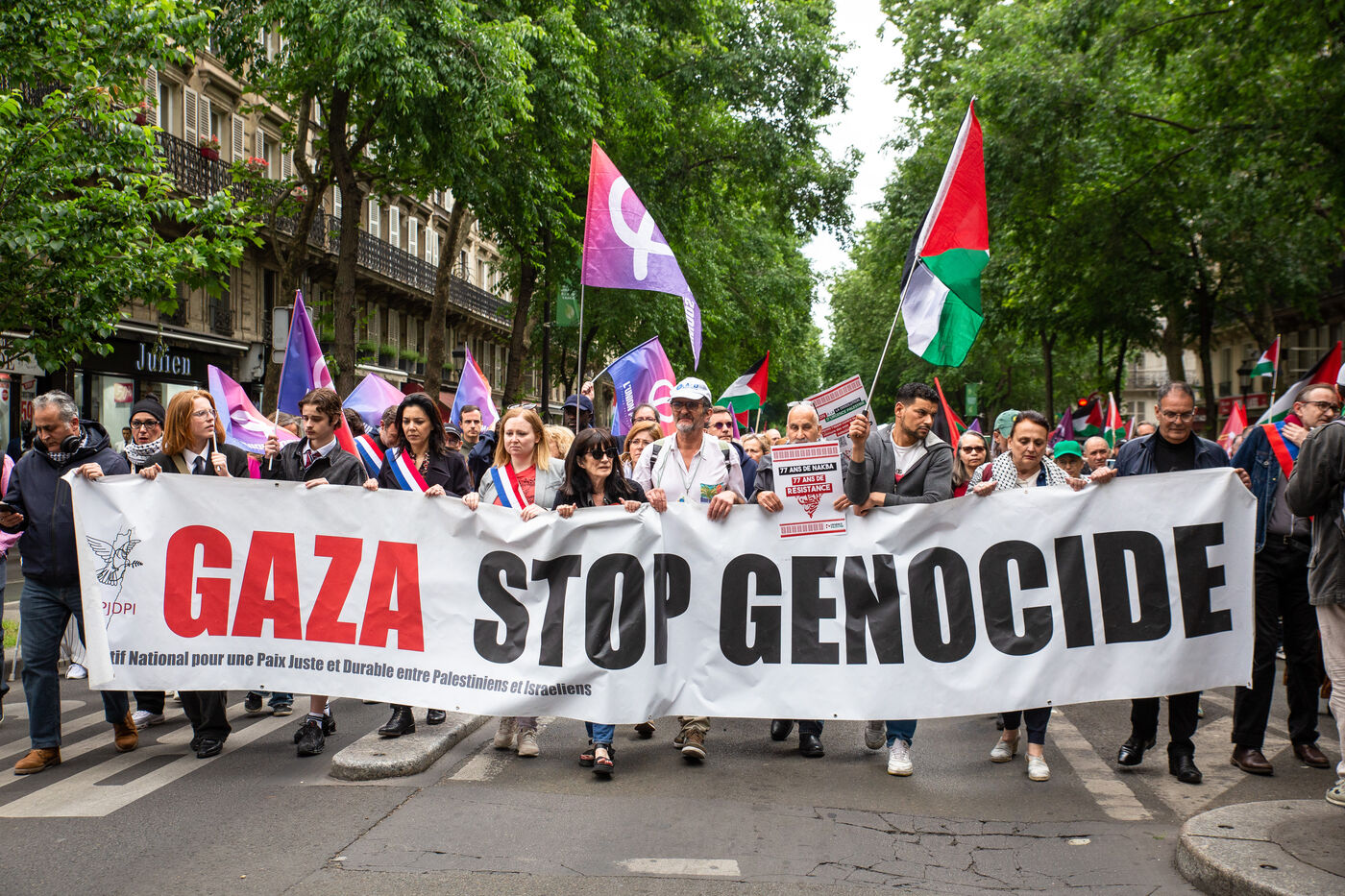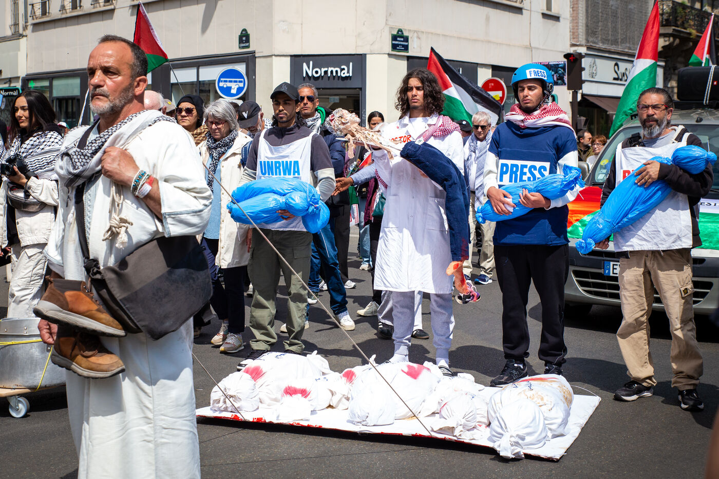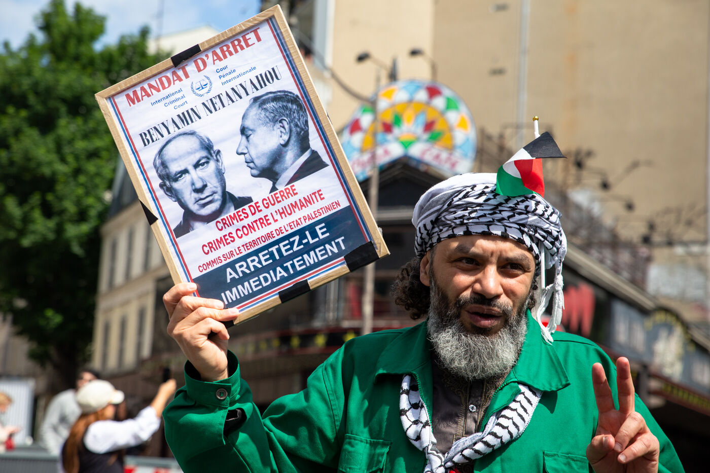 FRANCE, Paris, May 17, 2025. Demonstration in support of the Palestinian people and commemoration of the Nakba, which means “catastrophe” and refers to the Palestinian exodus following the creation of the State of Israel and the defeat of the Arab countries in the first Arab-Israeli war in 1948. A duty to remember for pro-Palestinian activists, it aims to keep Palestine in the public debate and influence diplomatic decisions, notably for the recognition of the Palestinian state.