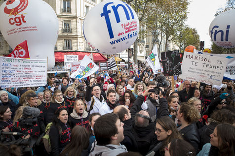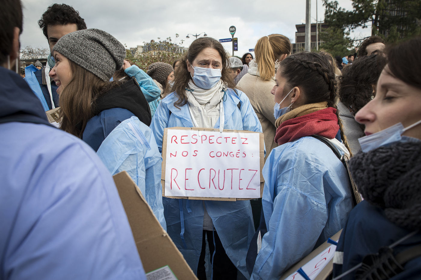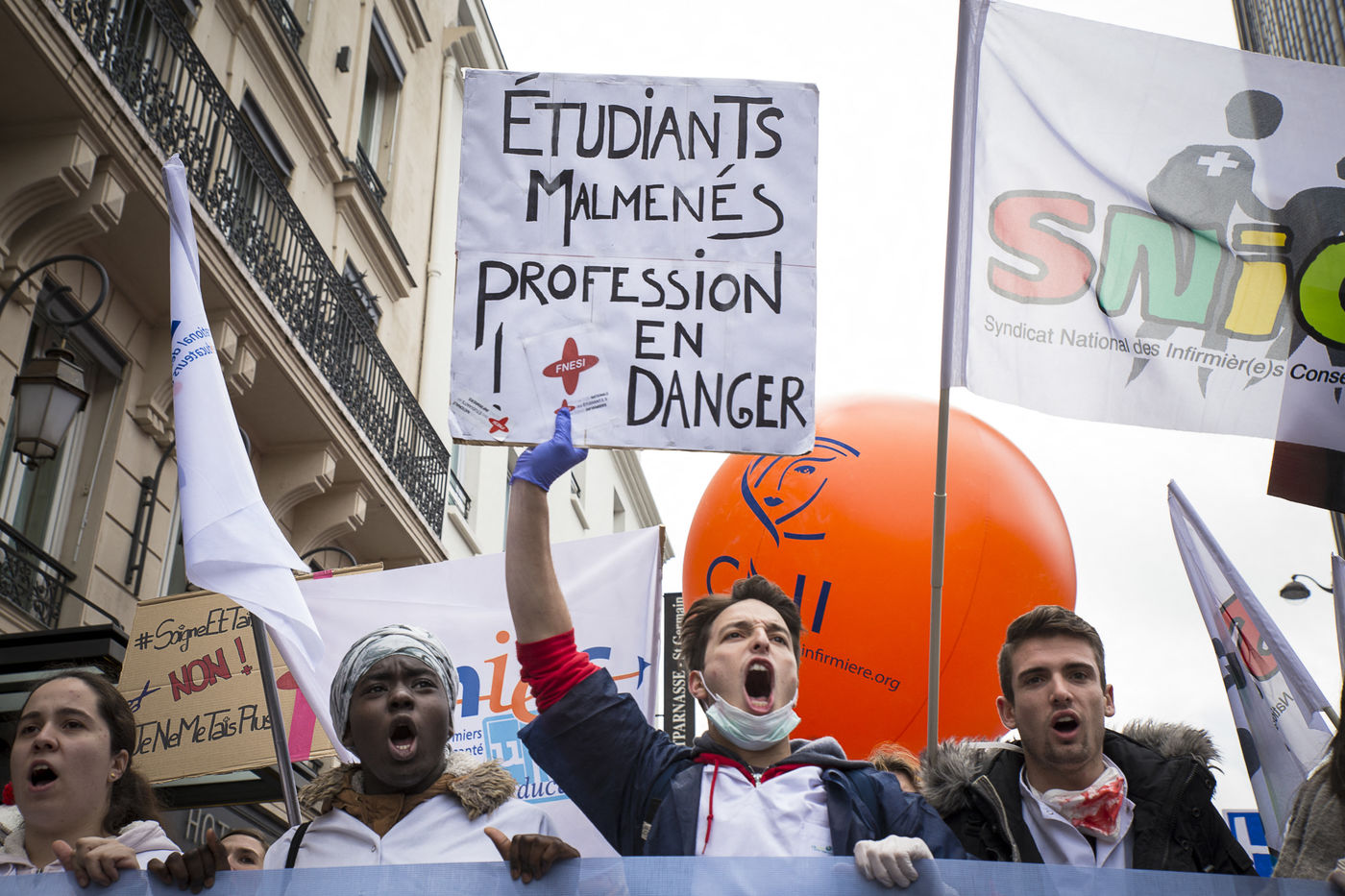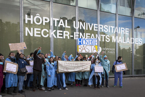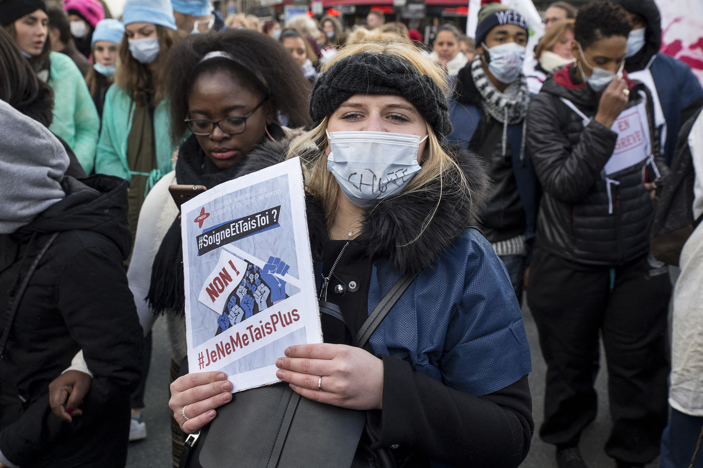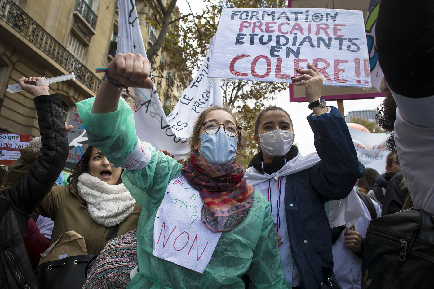 FRANCE, Paris. Nurses and Hospital staff demonstrate against the "deterioration of their working conditions" as part of a nation wide protest day on November 8, 2016.