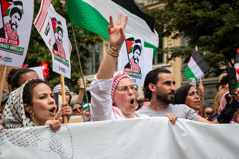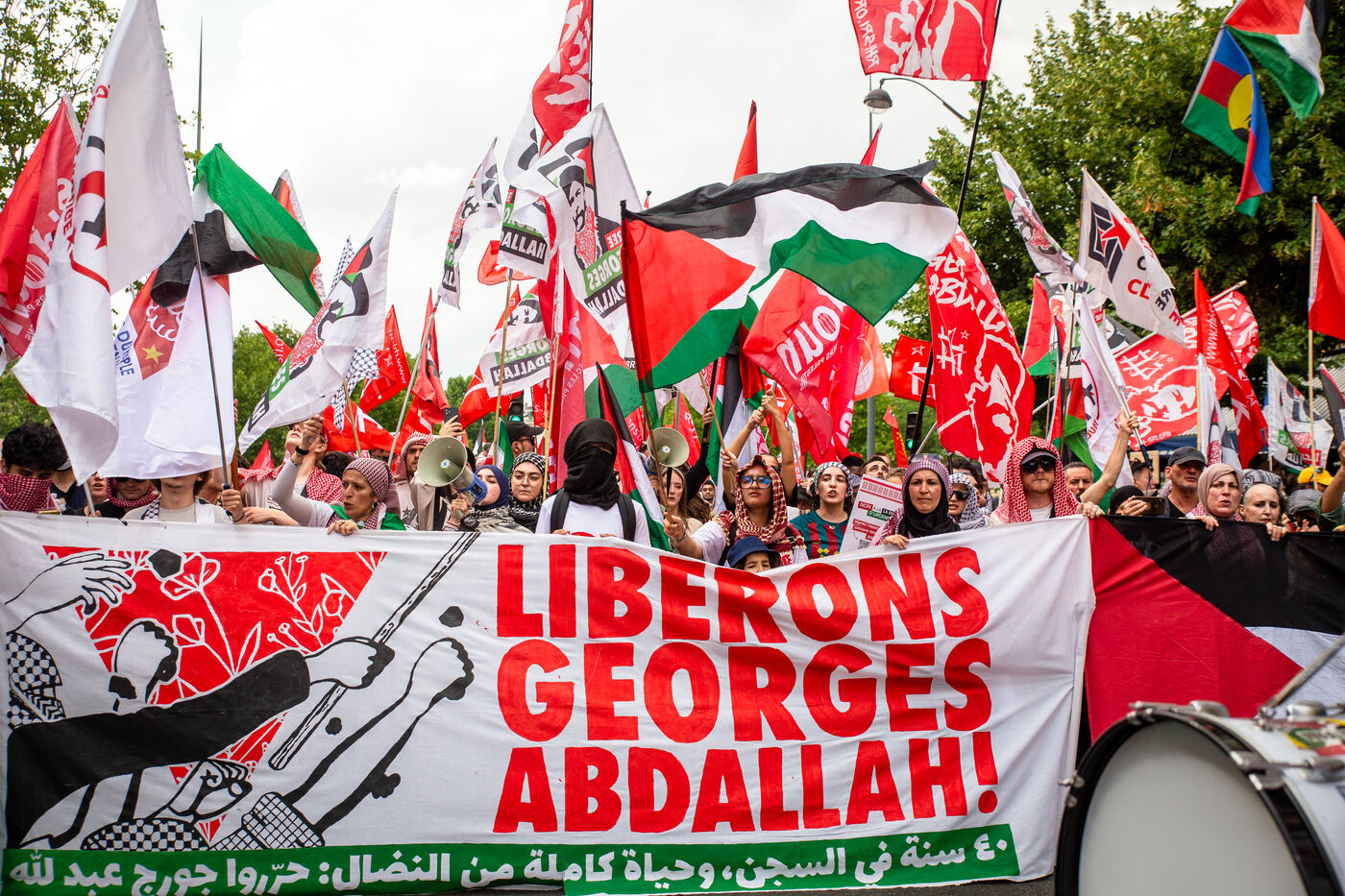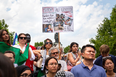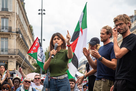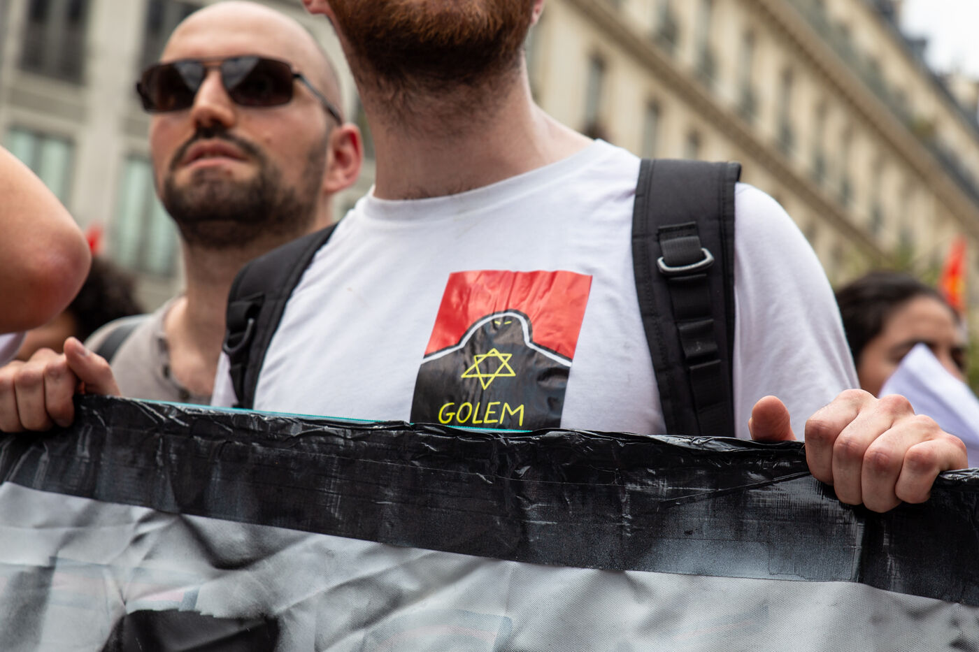 France, Paris, June 14, 2025. Mobilization for Palestine at the call of an inter-union coalition bringing together CFDT, CGT, Unsa, Solidaires, and FSU, the National Collective for a Just and Lasting Peace between Palestinians and Israelis (CNPJDPI), and left-wing parties (LFI, PS, PCF, EELV). Denouncing the abuses committed in Gaza (bombing of civilians, forced displacement, starvation as a weapon of war), and pointing to the genocidal intentions of the Israeli government, the organizers are calling for an immediate ceasefire and unhindered access for humanitarian aid.