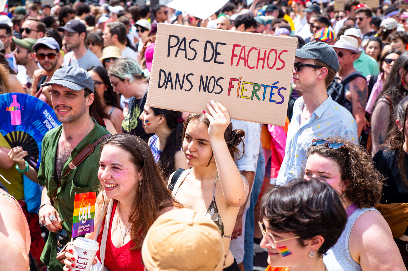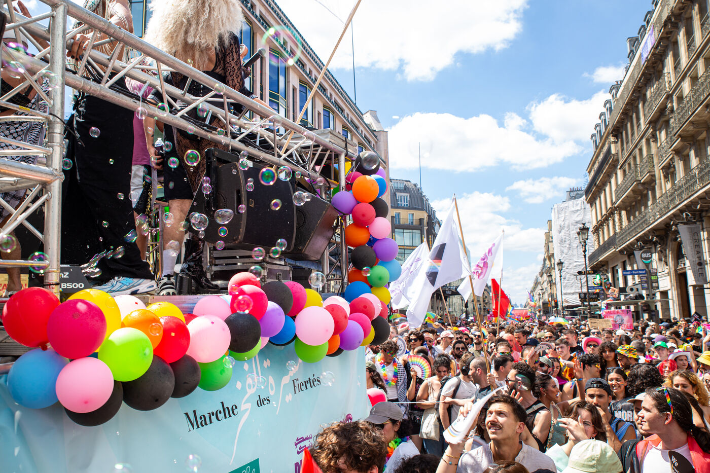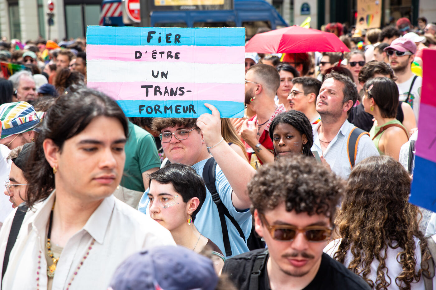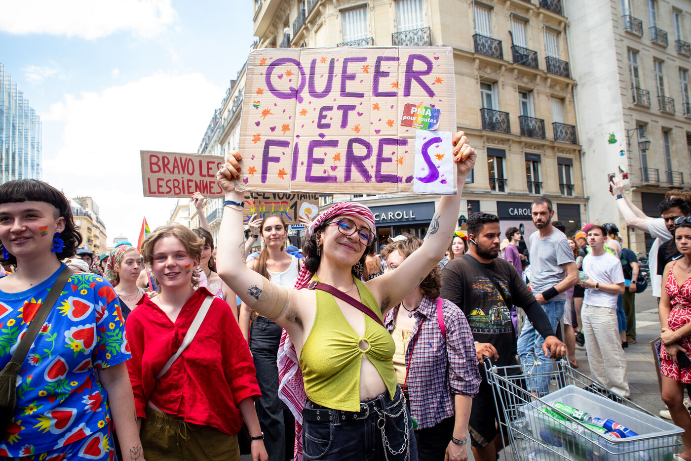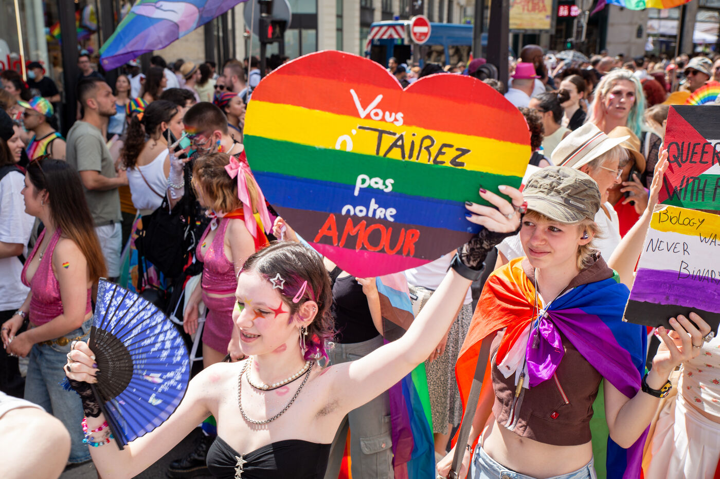 FRANCE, Paris, June 28, 2025. Pride March, a political demonstration and protest for the rights and visibility of LGBTQIA+ people, a celebration of tolerance and diversity in a festive and militant atmosphere.