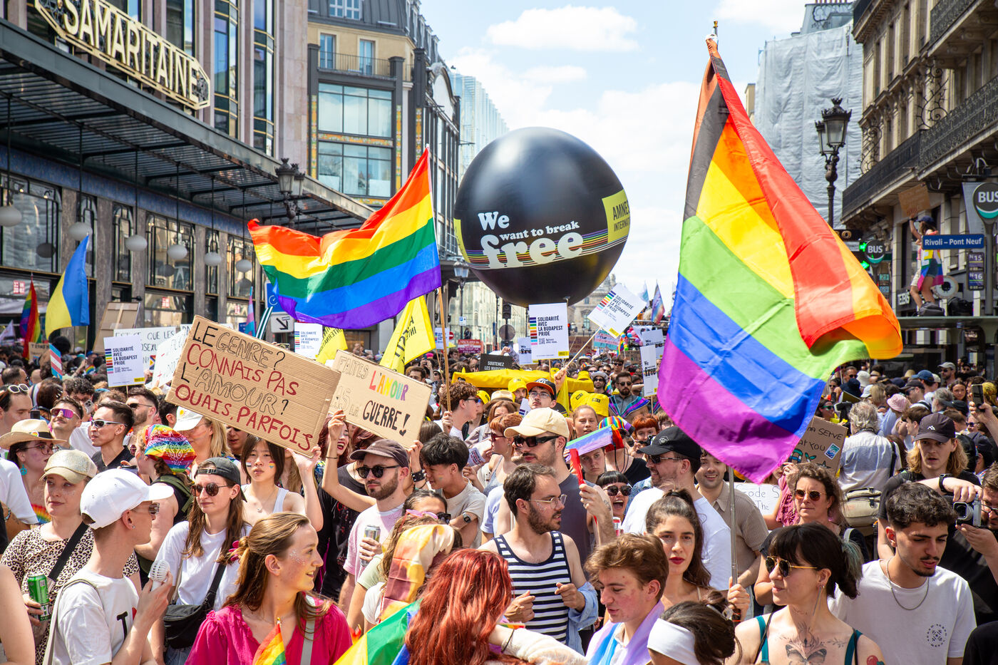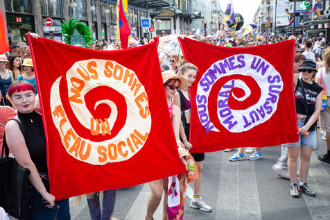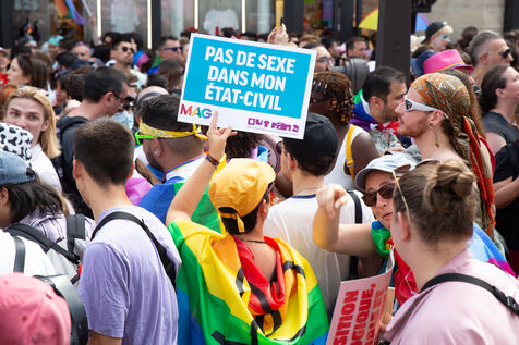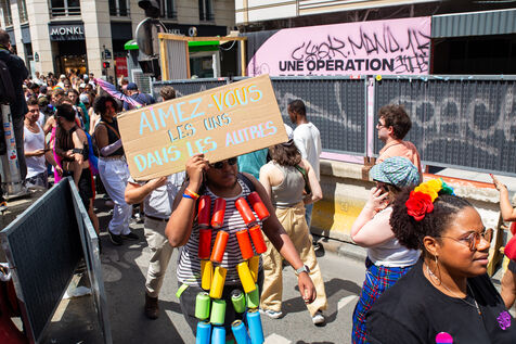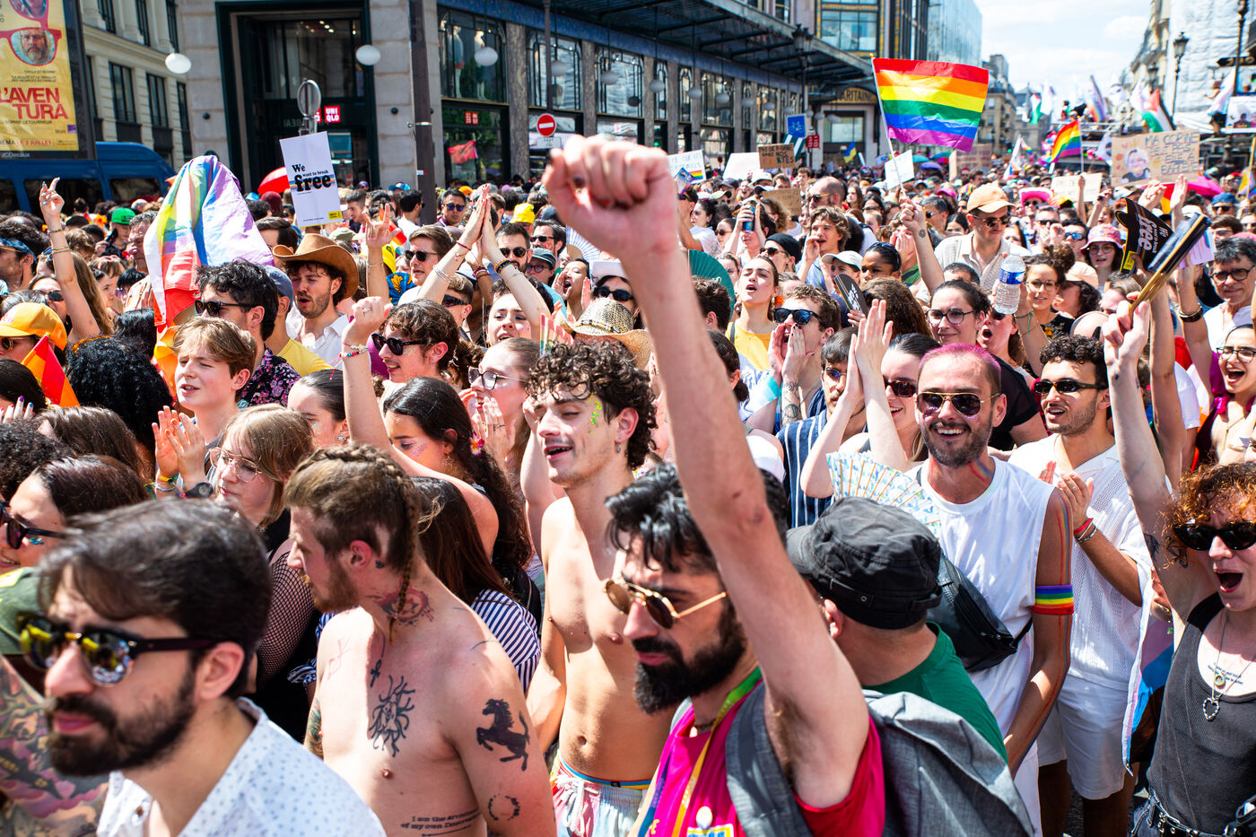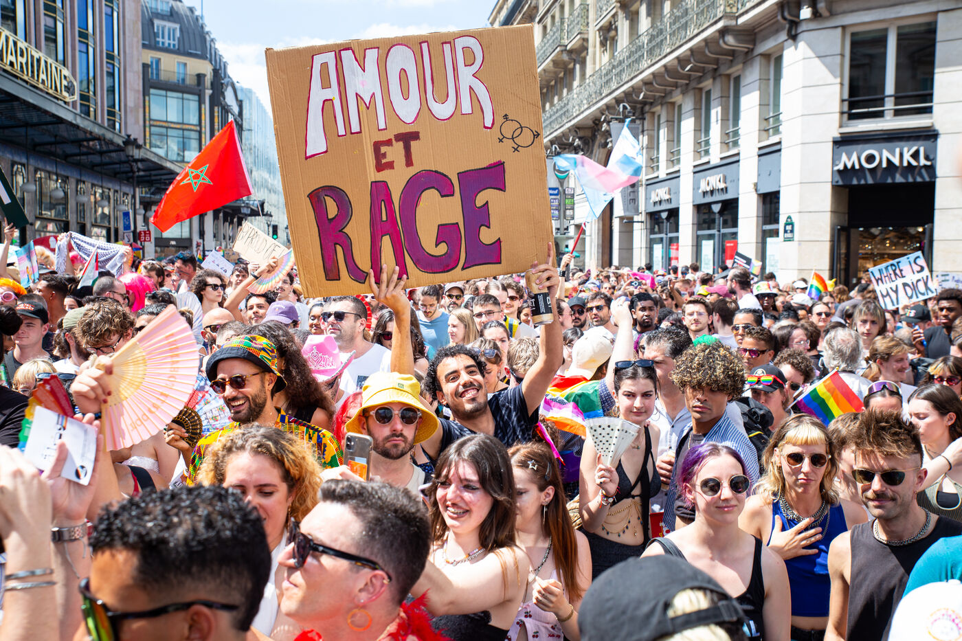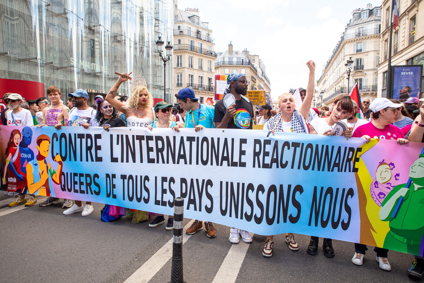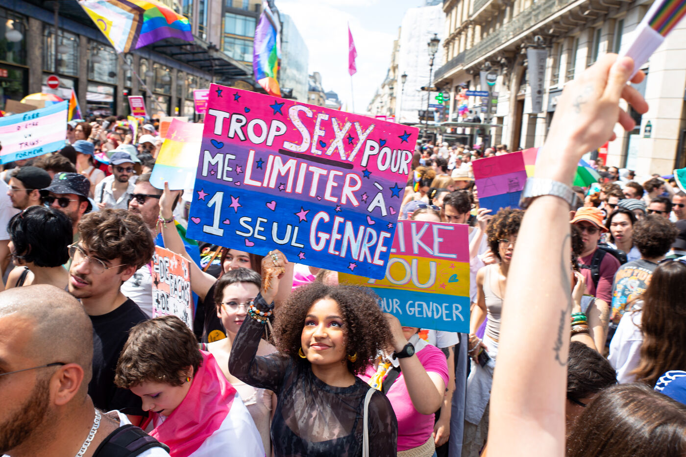 FRANCE, Paris, June 28, 2025. Pride March, a political demonstration and protest for the rights and visibility of LGBTQIA+ people, a celebration of tolerance and diversity in a festive and militant atmosphere.