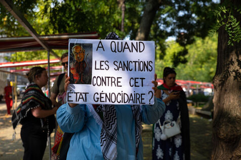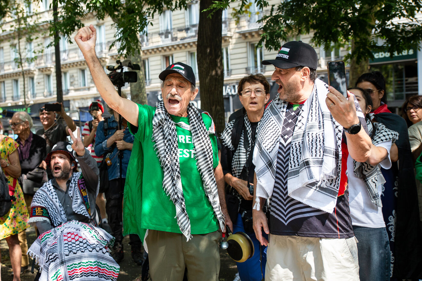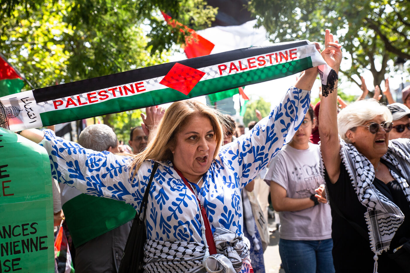 France, Paris, August 9, 2025. Rally for Palestine. Despite the summer truce, several hundred citizens continue to mobilize in solidarity with the Palestinian people. They are raising awareness about the ongoing genocide and famine in Gaza, calling for a ceasefire and sanctions against the Israeli regime.