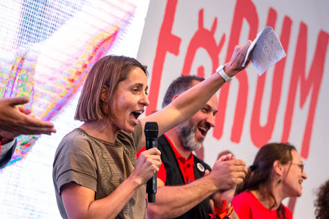 France, Paris, September 12, 2025. Fete de l'Humanité 2025 in Bretigny Sur Orge. Debates and speeches by political and union leaders at the Agora and the Social Forum.