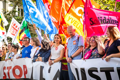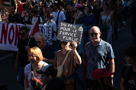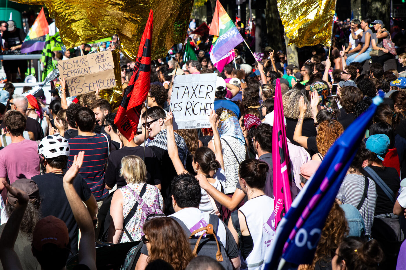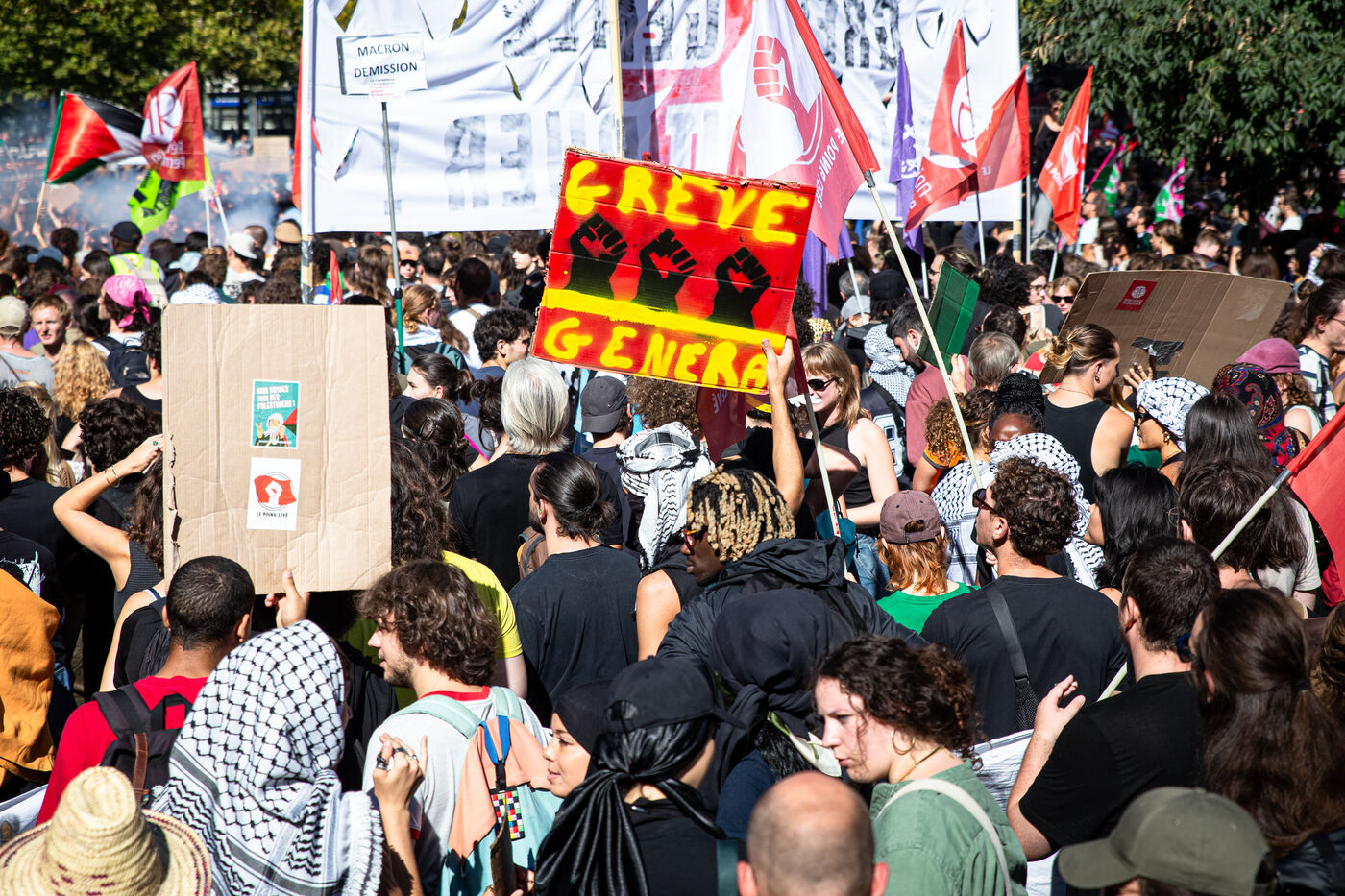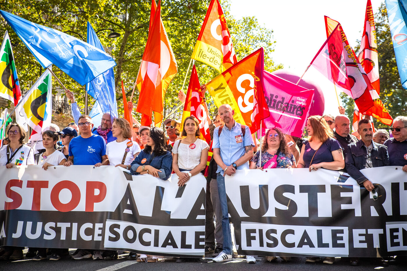 FRANCE, Paris, le 18 September 2025. Manifestation et greve a l appel de l intersyndicale contre les mesures d austerite budgetaire pour la defense des services publics et pour plus de justice sociale et fiscale.