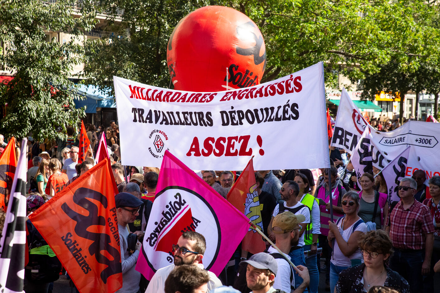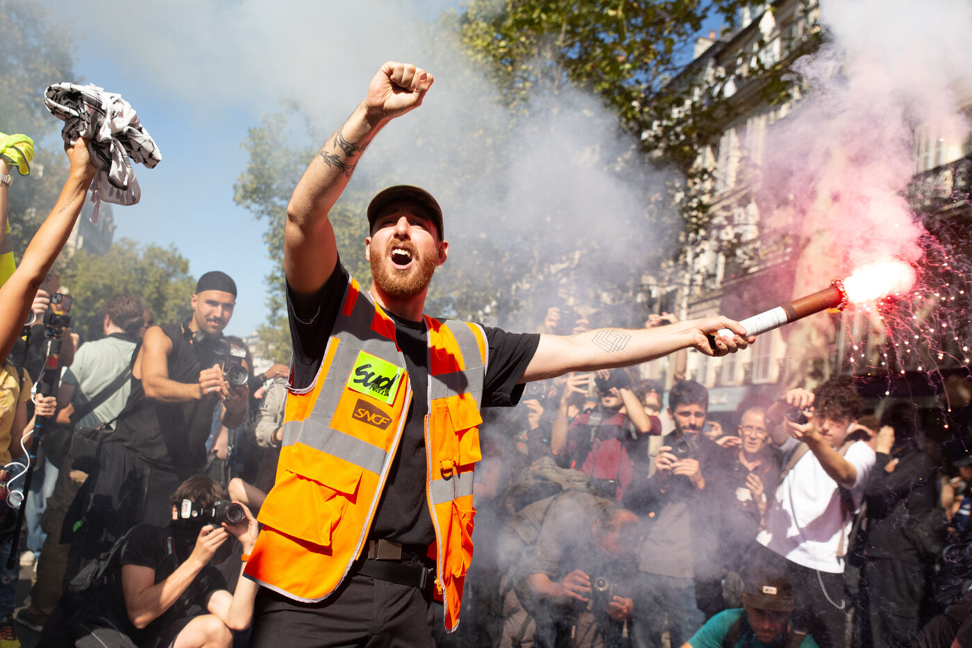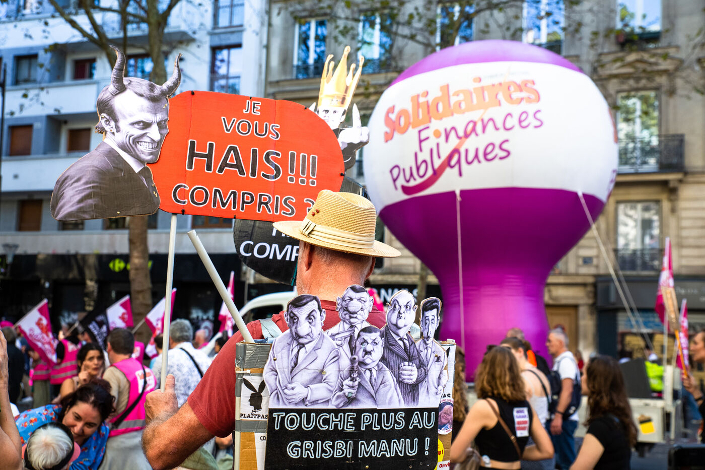 FRANCE, Paris, September 18, 2025. Demonstration and strike called by the inter-union coalition against budgetary austerity measures, in defense of public services and for greater social and fiscal justice.