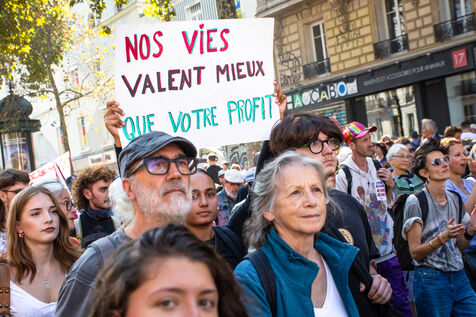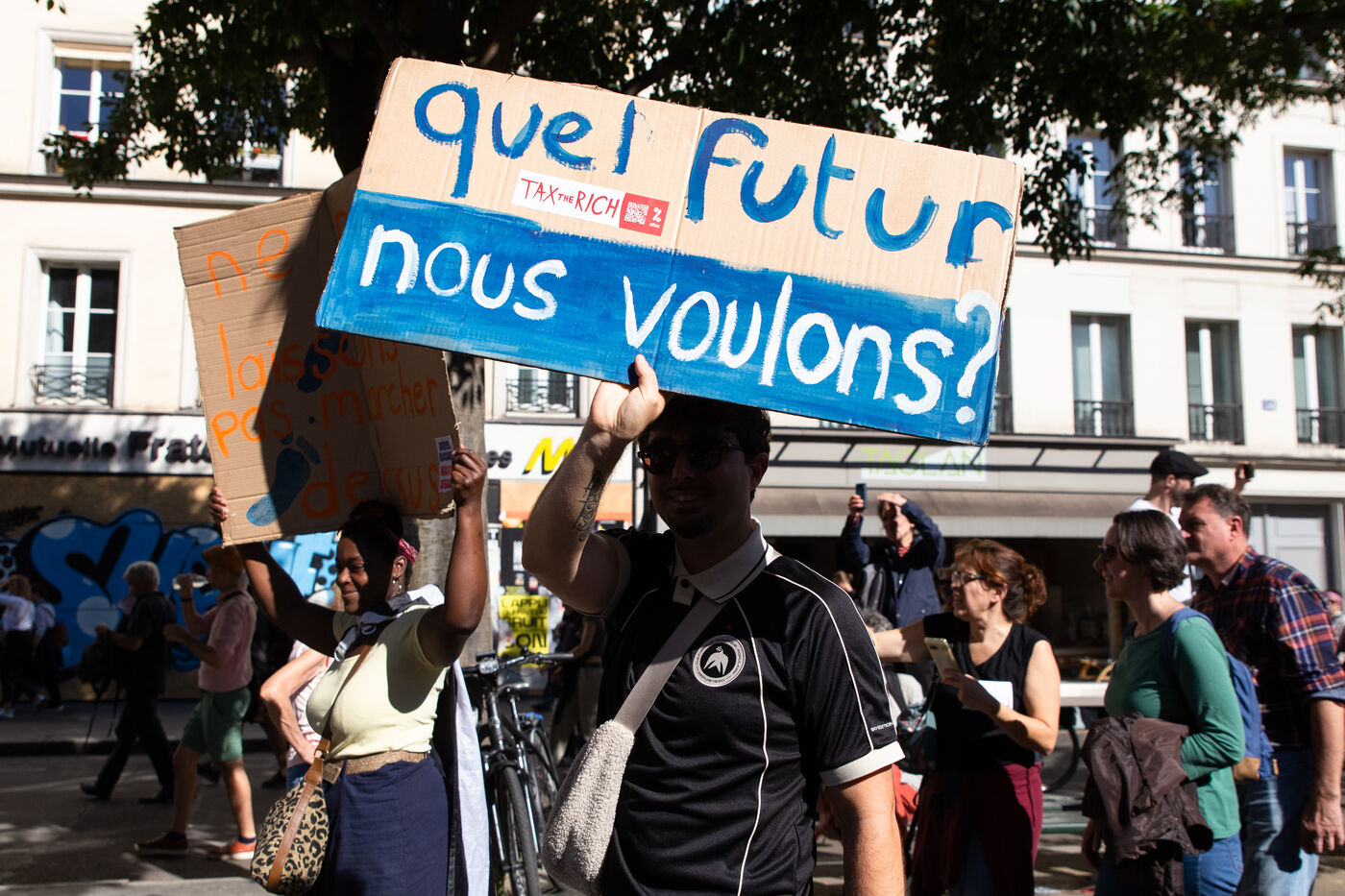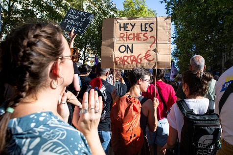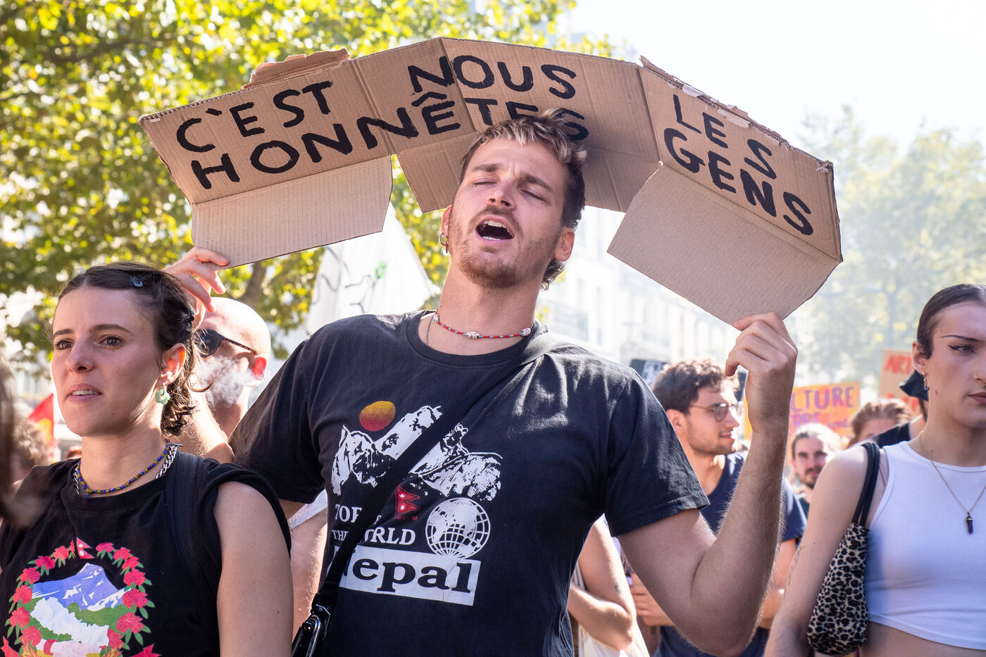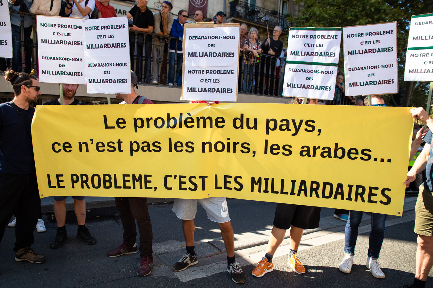 FRANCE, Paris, September 18, 2025. Demonstration and strike called by the inter-union coalition against budgetary austerity measures, in defense of public services and for greater social and fiscal justice.