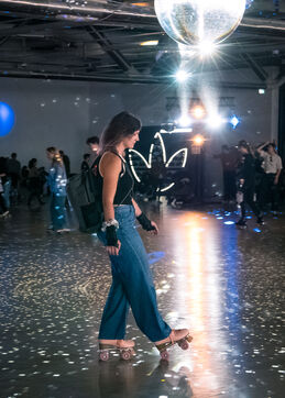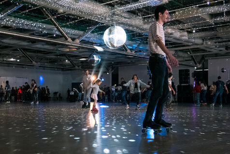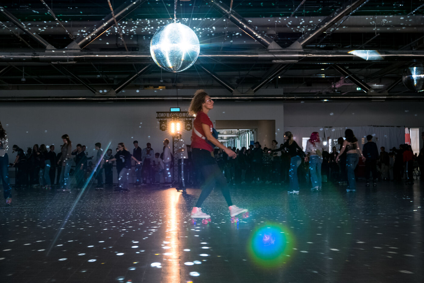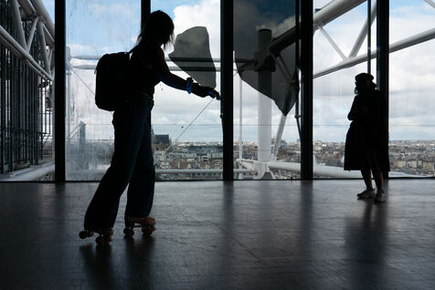 France, Paris, le 25 octobre 2025. Because Beaubourg, evenement de cloture. Le Centre Pompidou propose un dernier week-end festif avant sa fermeture pour cinq ans de travaux. Au dernier etage, le public est venu profiter de la piste du Roller Disco by La Main Jaune avec Dj sets et vue imprenable sur Paris.