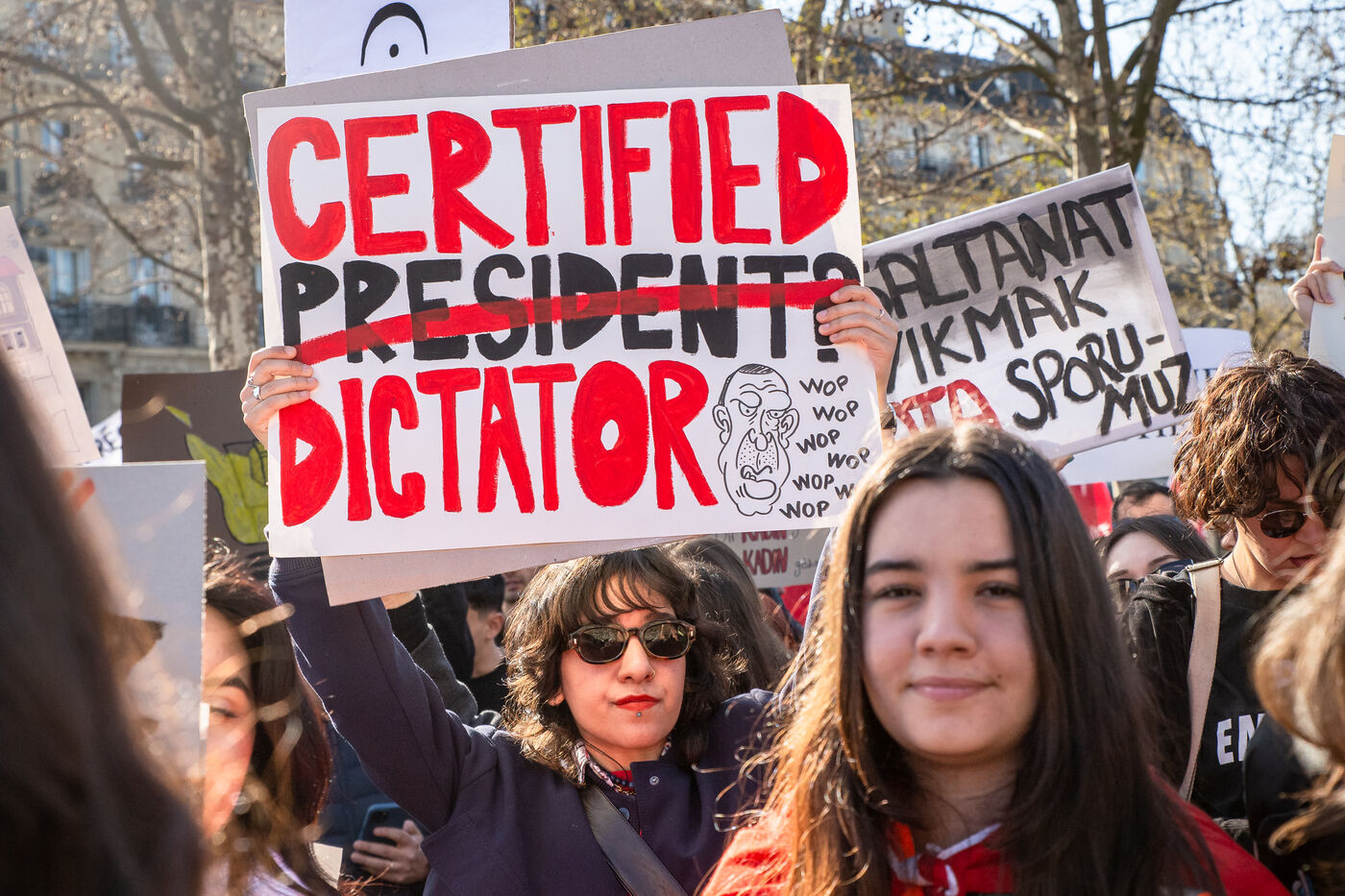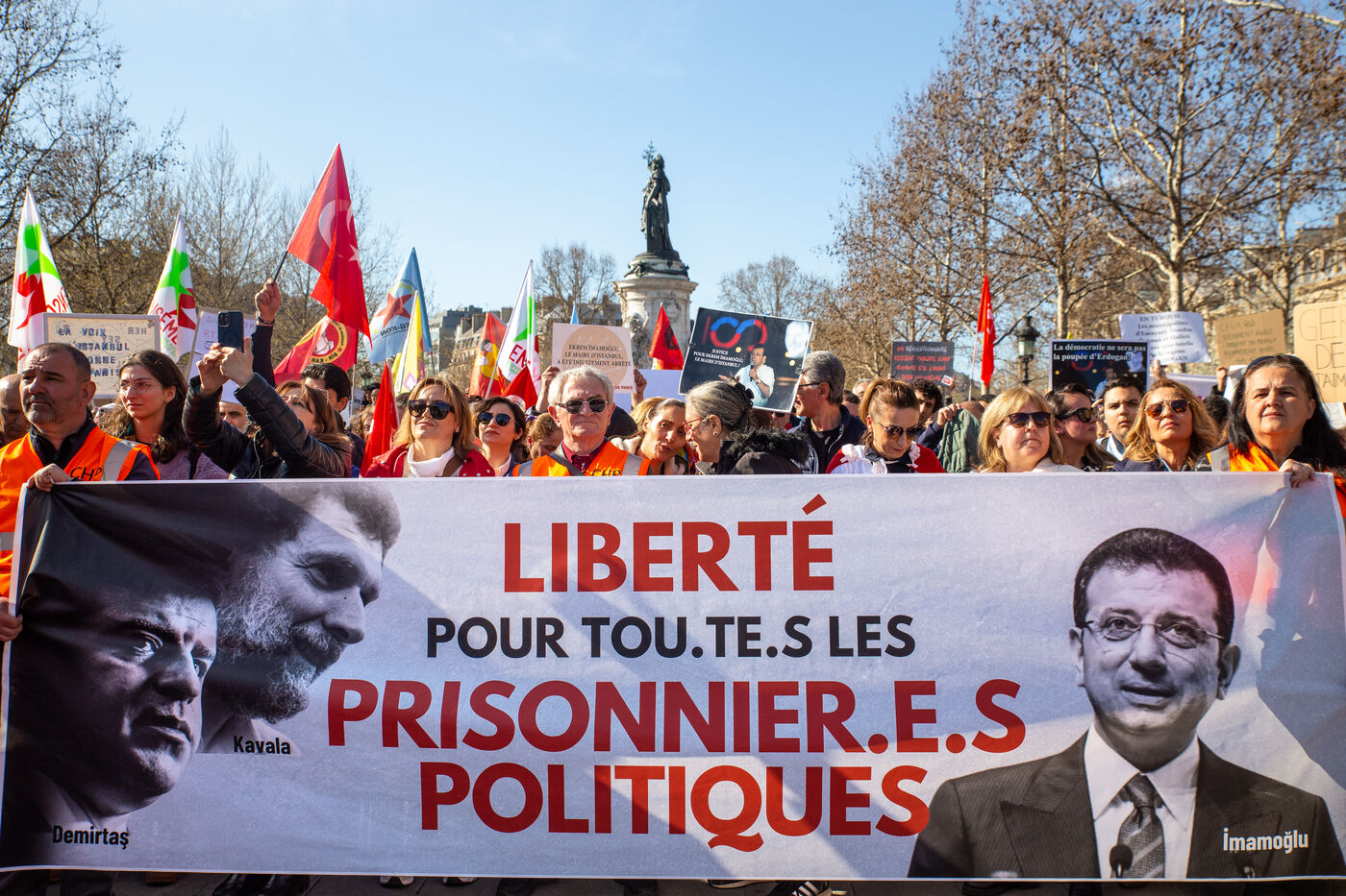 France, Paris, March 29, 2025. Rally organized by ACORT (Citizens' Assembly of People of Turkish Origin) in solidarity with resistance movements against the Erdogan regime. Denouncing the repression against journalists, protesters, and opposition politicians (CHP and Kurds), demonstrators gathered to demand freedom, democracy, and justice.
