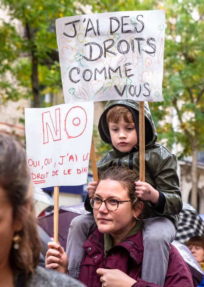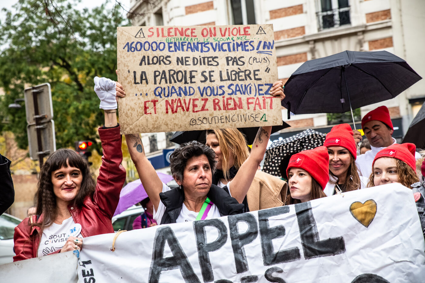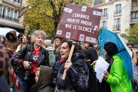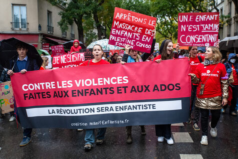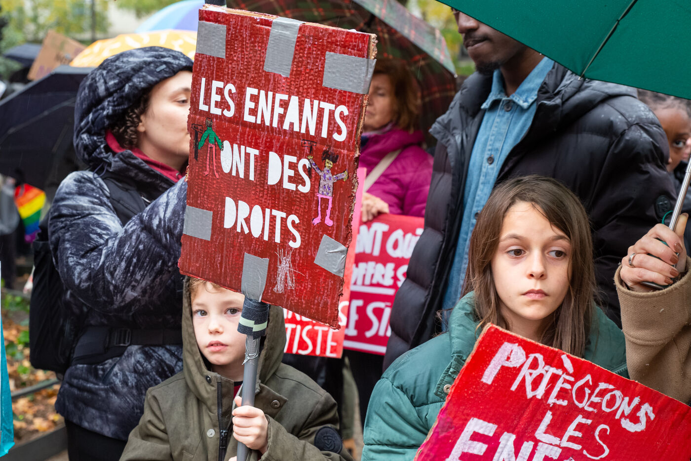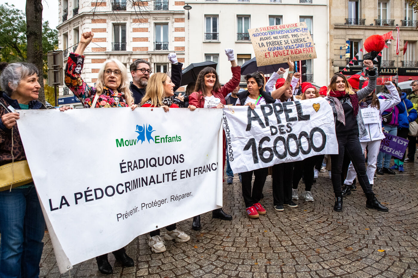 France, Paris, November 15, 2025. National demonstration called by the child protection collective against violence against children and adolescents. Associations, child protection professionals, activists, and victims came together to denounce adultism and multiple violations of children's rights. They are demanding justice for victims of sexual violence (rape, incest, pedophilia) and effective public policies for the protection of minors.