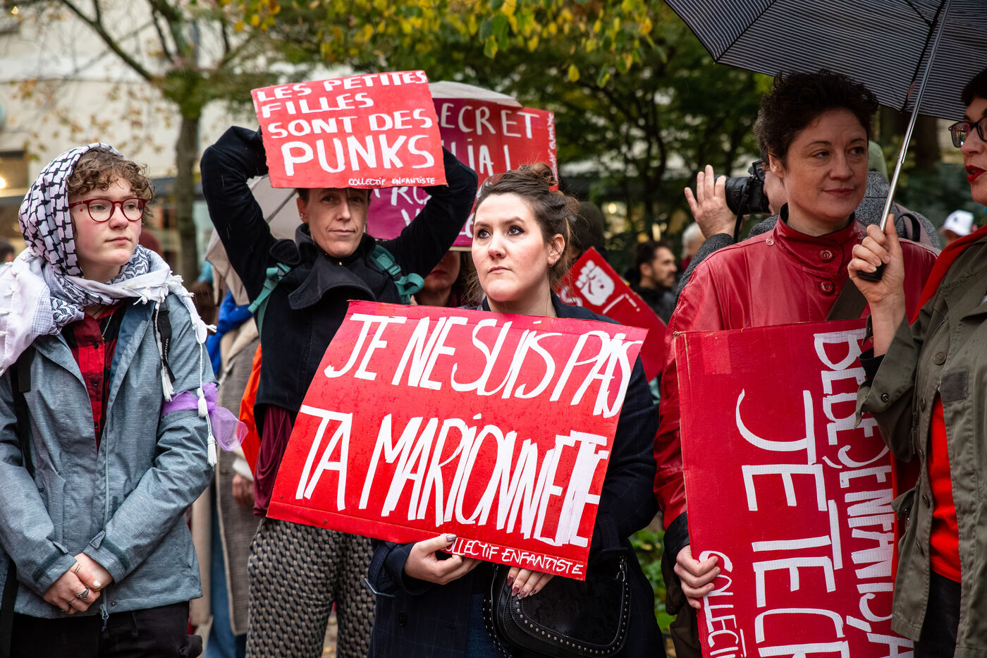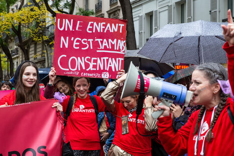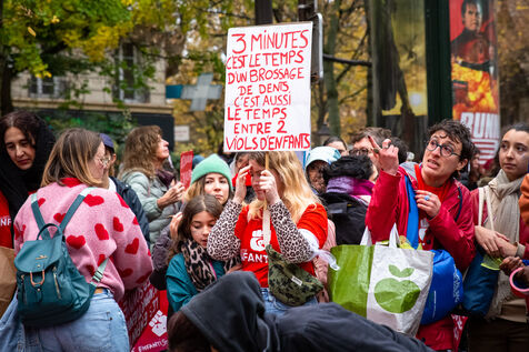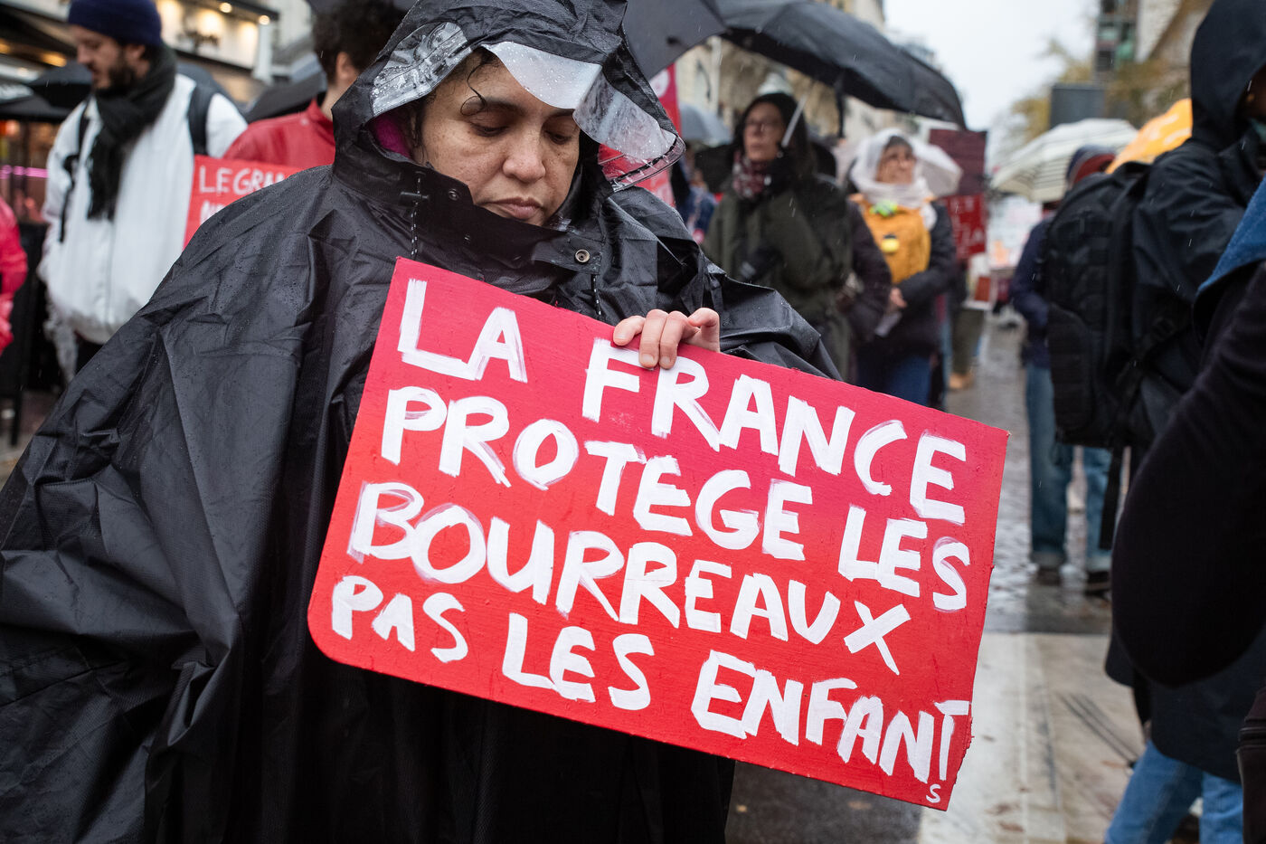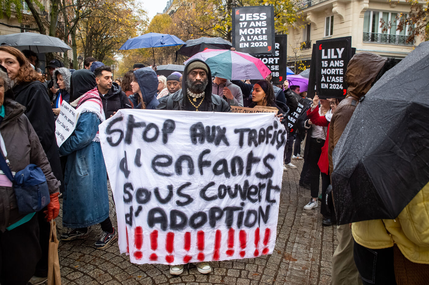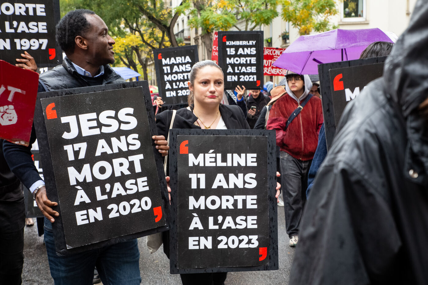 France, Paris, November 15, 2025. National demonstration called by the child protection collective against violence against children and adolescents. Associations, child protection professionals, activists, and victims came together to denounce adultism and multiple violations of children's rights. They are demanding justice for victims of sexual violence (rape, incest, pedophilia) and effective public policies for the protection of minors.