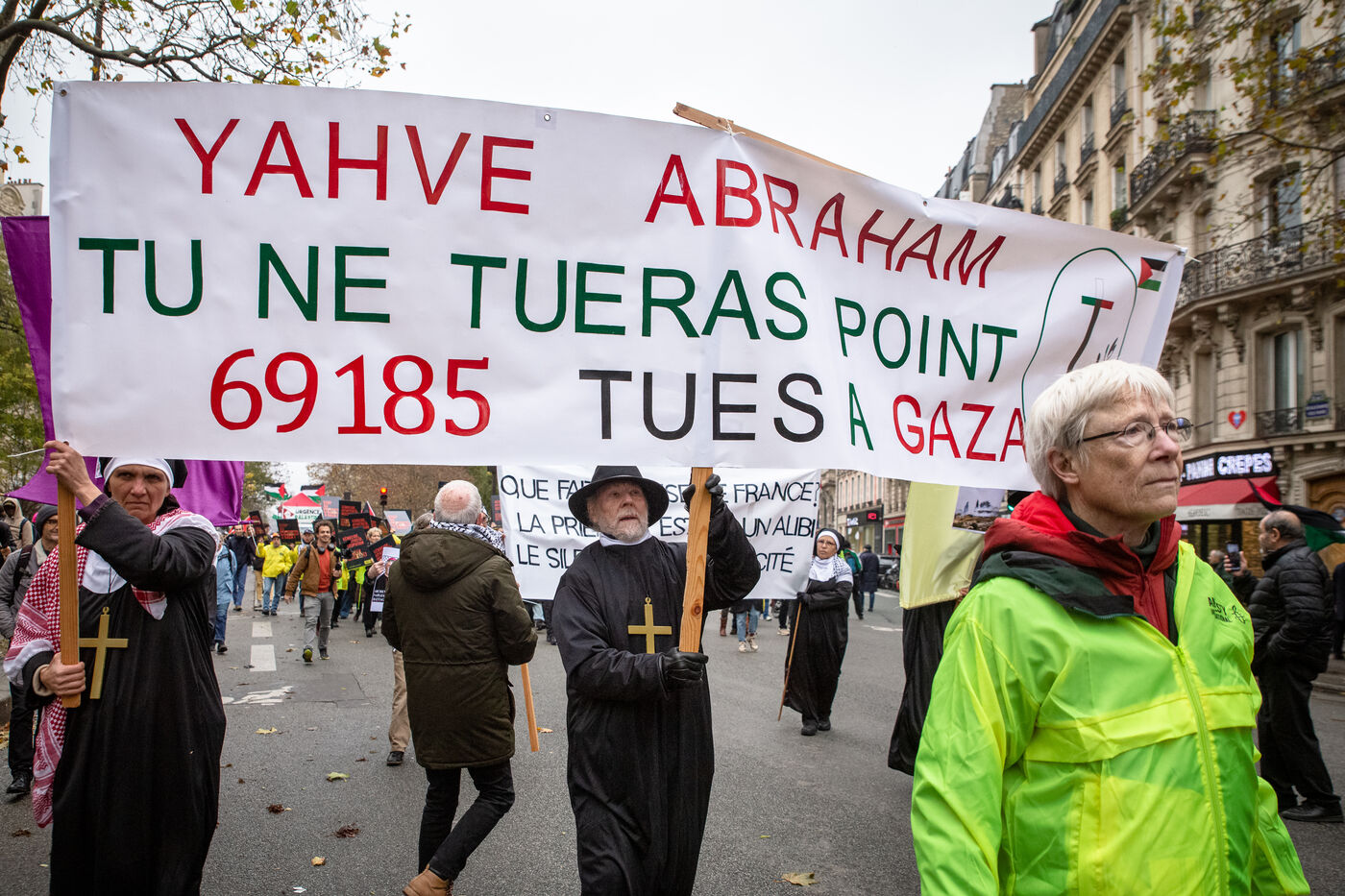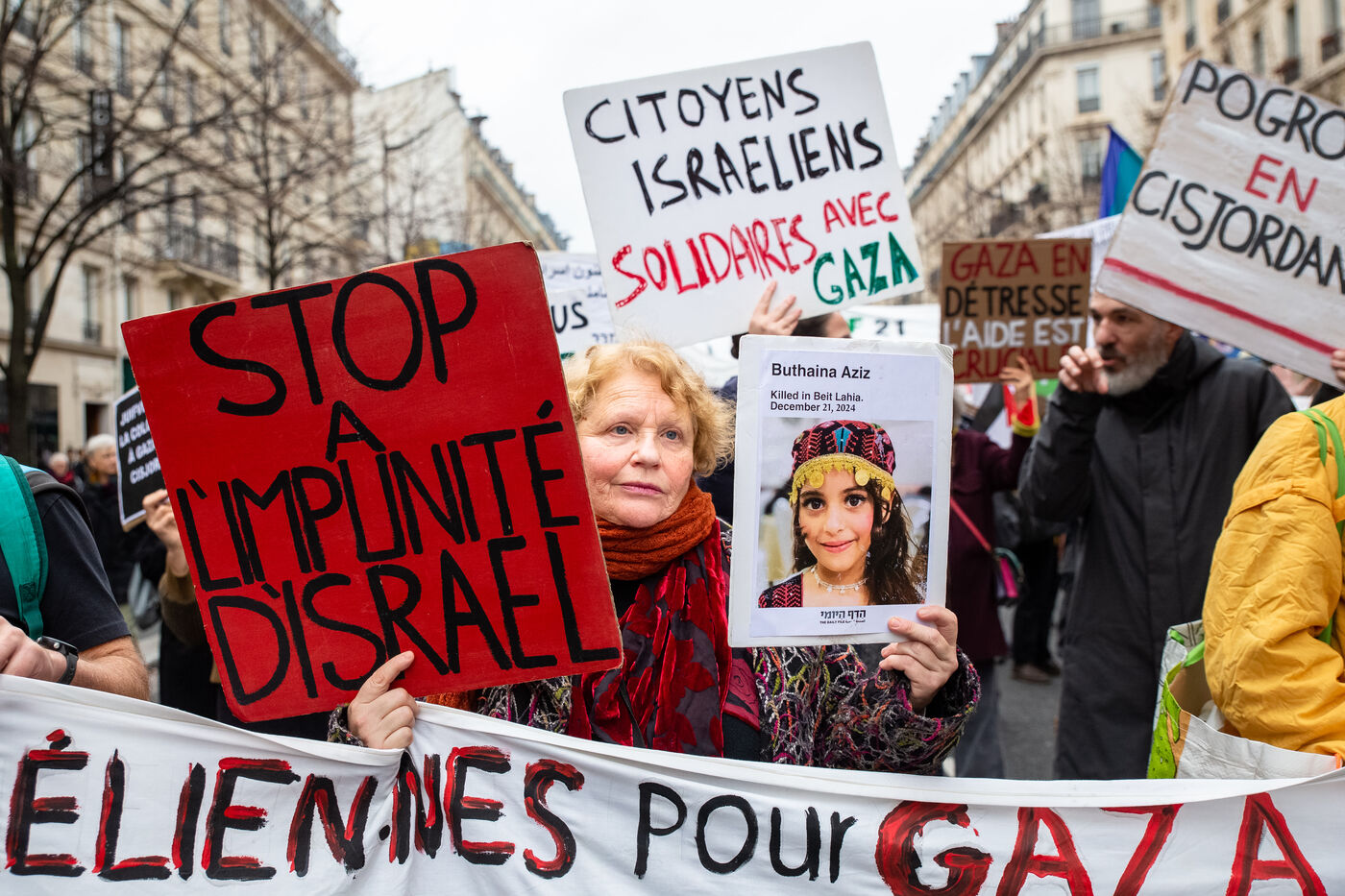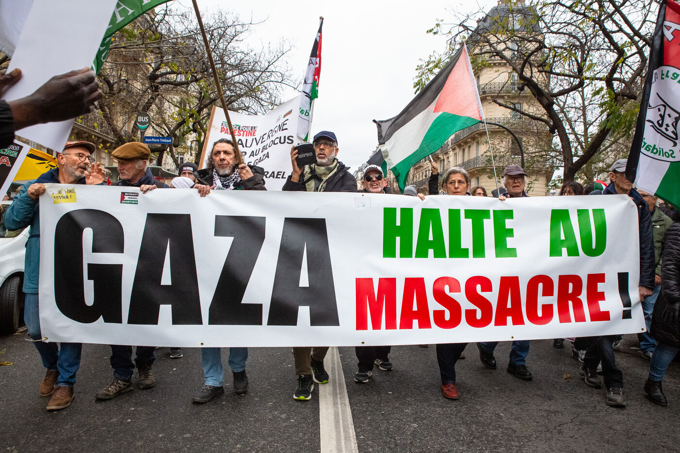 France, Paris, le 29 novembre 2025. Manifestation nationale de solidarite avec la Palestine reclamant une cessez le feu permanent, la fin de la colonisation israélienne et des sanctions pour les crimes de guerre.