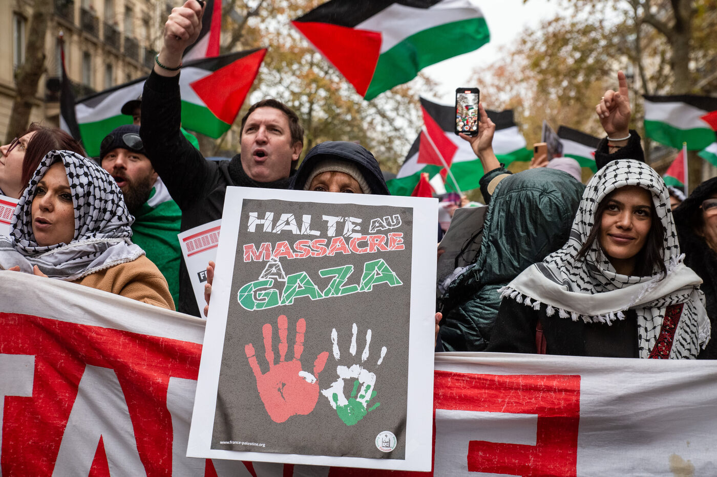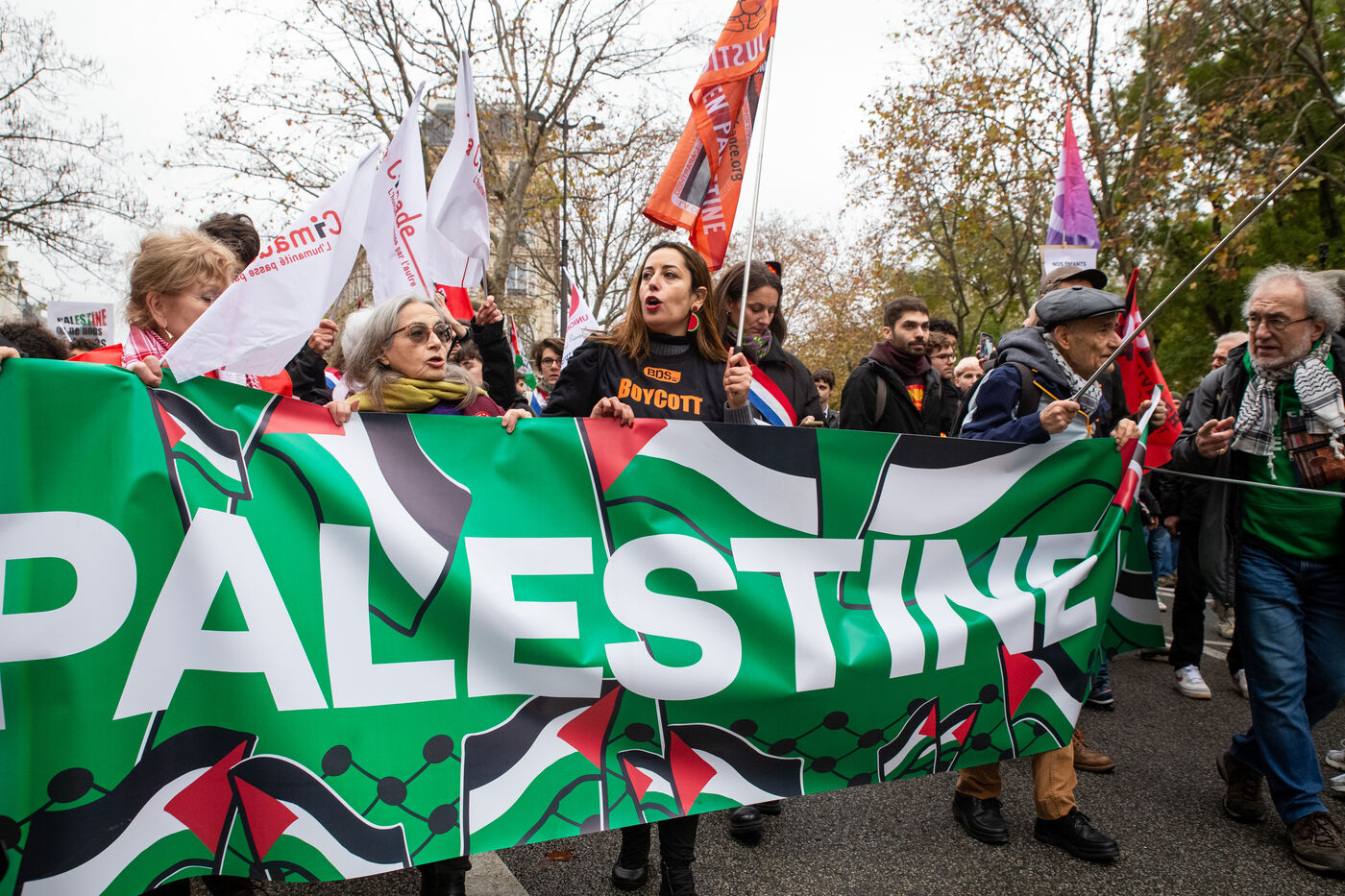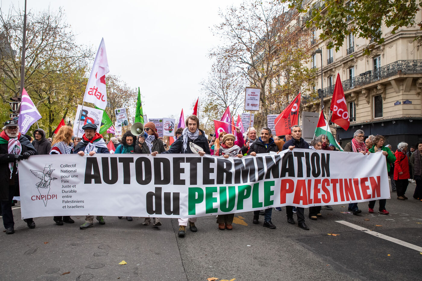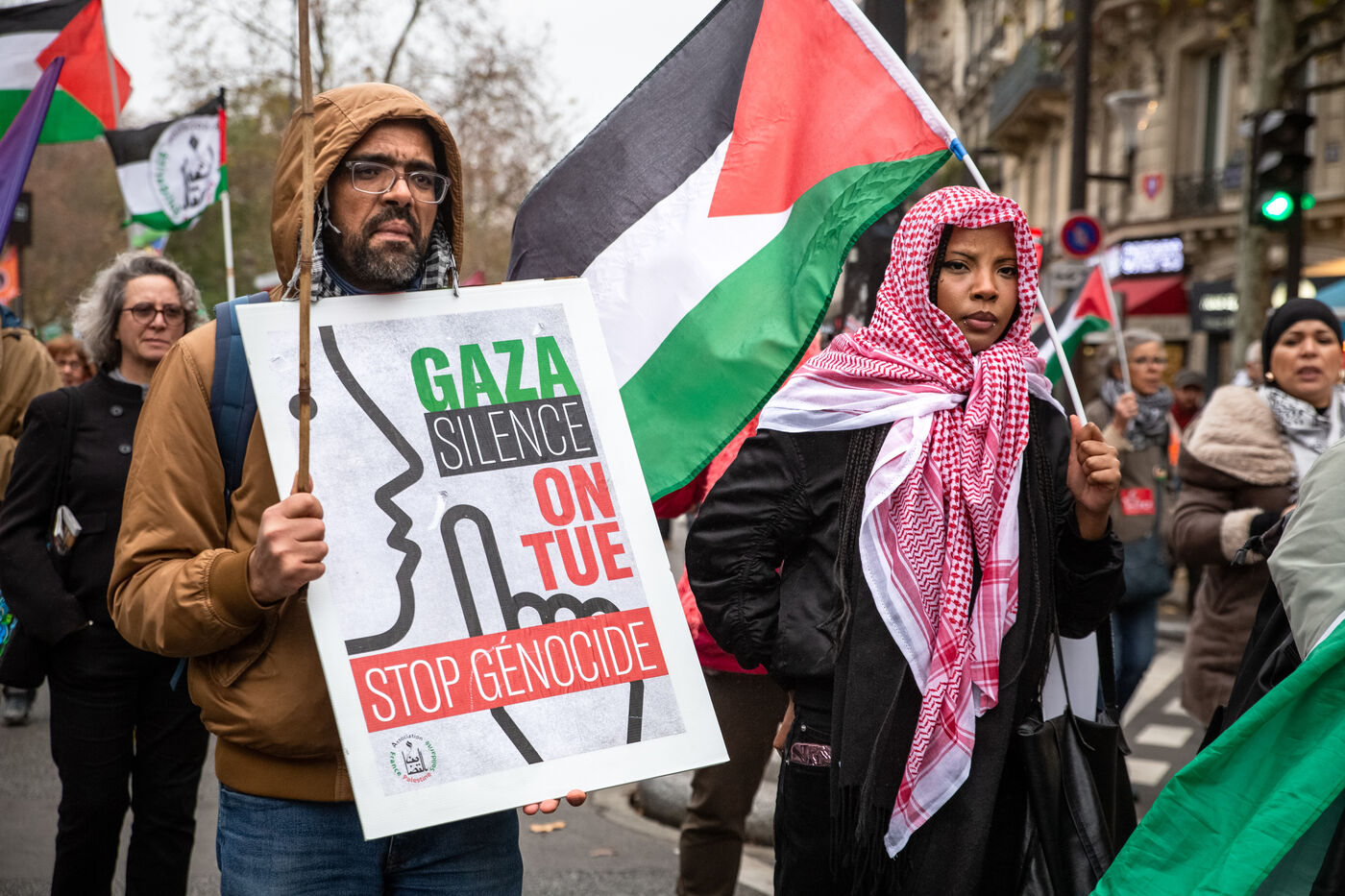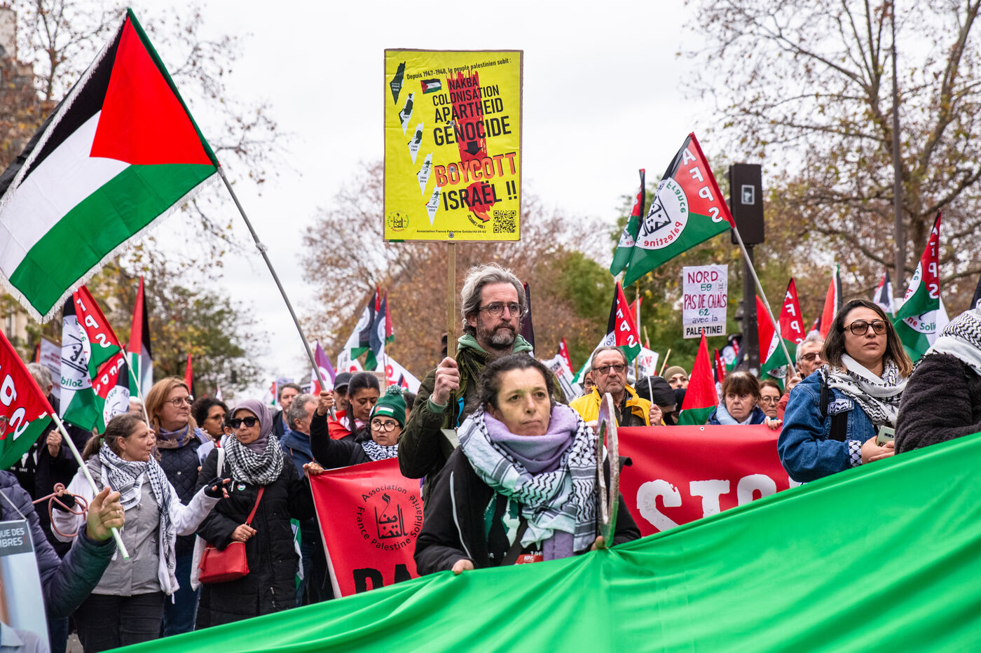 France, Paris, November 29, 2025. National demonstration in solidarity with Palestine demanding a permanent ceasefire, an end to Israeli colonization, and sanctions for war crimes.
