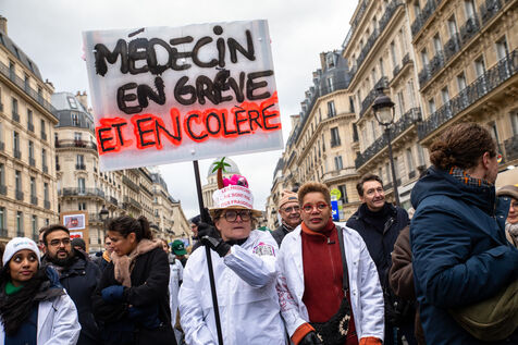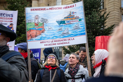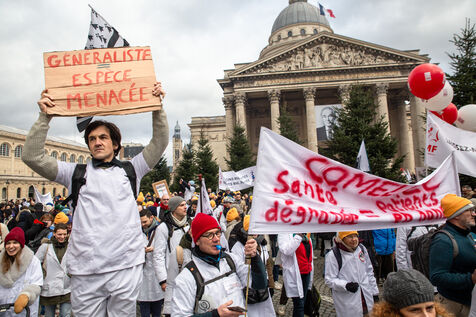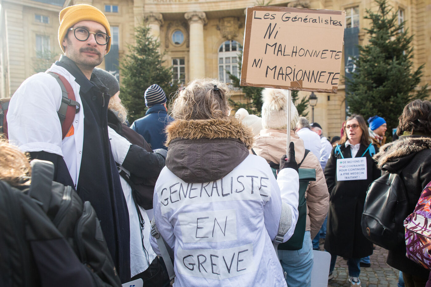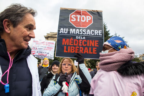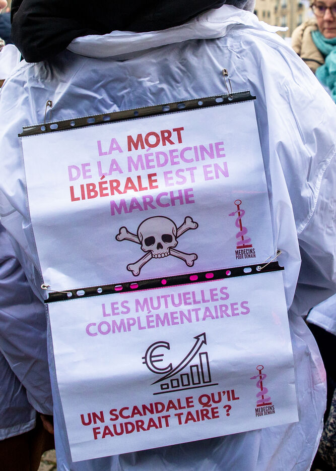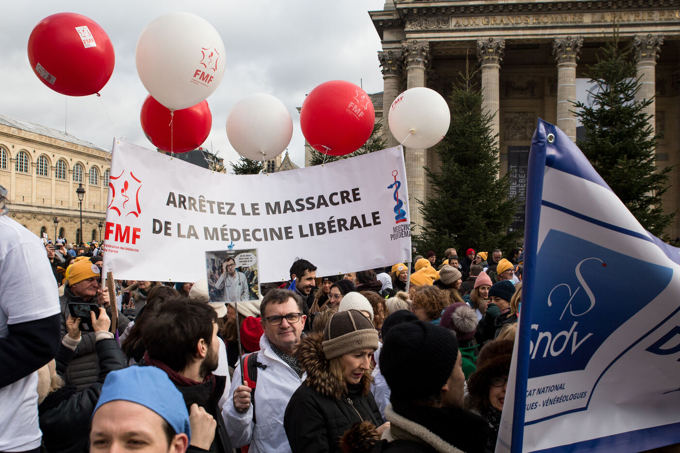 France, Paris, January 10, 2026. Strike and demonstration by private doctors against the 2026 Social Security Financing Bill (PLFSS) and the anti-fraud bill.