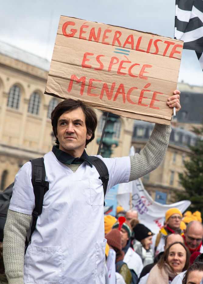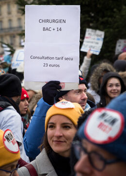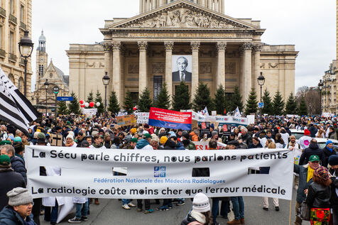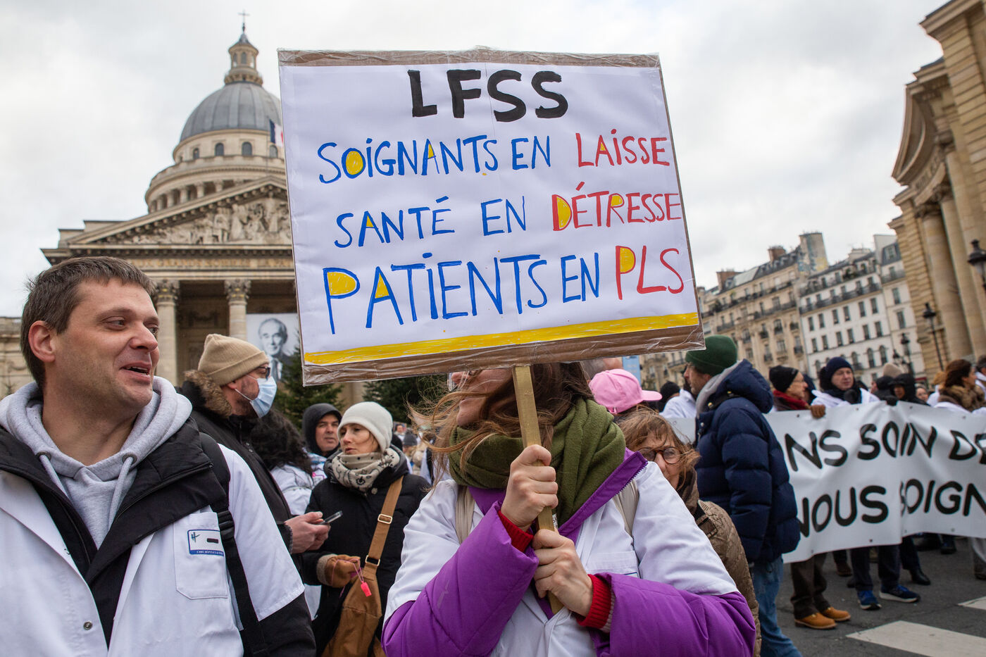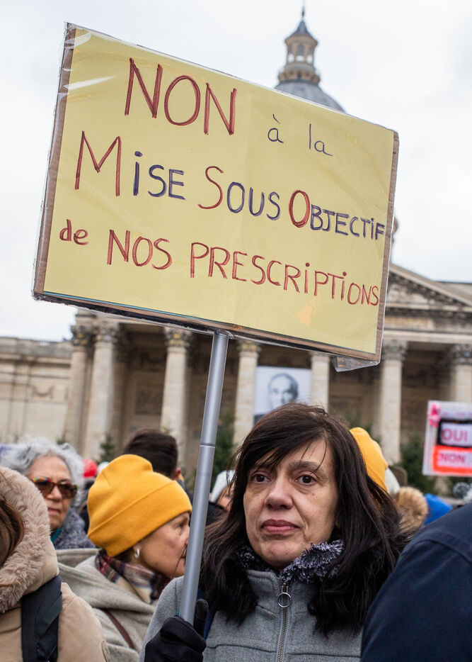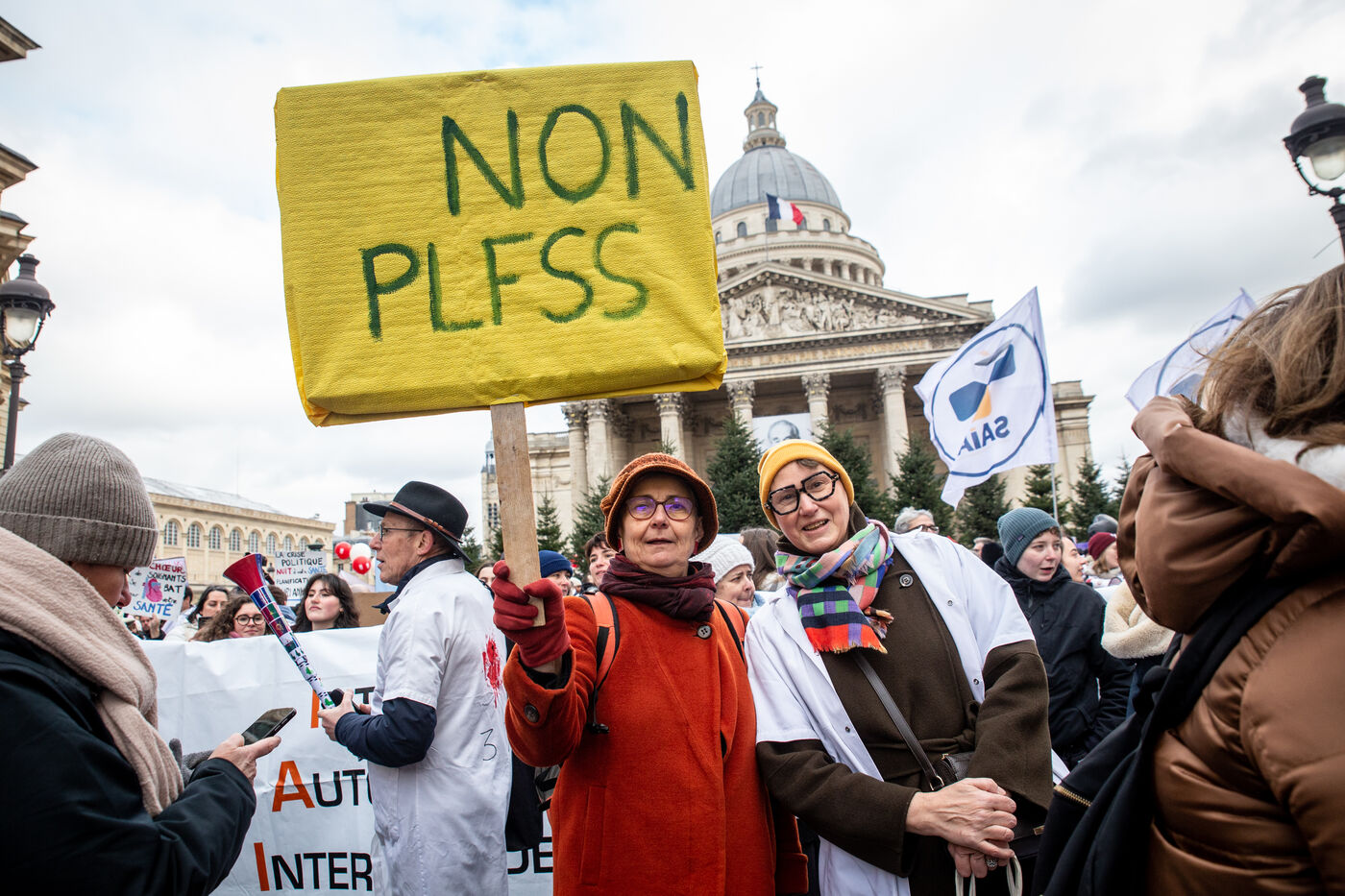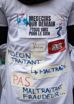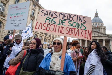 France, Paris, January 10, 2026. Strike and demonstration by private doctors against the 2026 Social Security Financing Bill (PLFSS) and the anti-fraud bill.