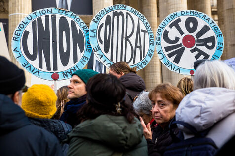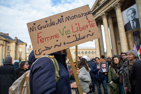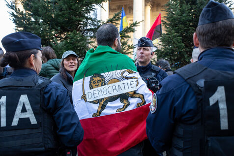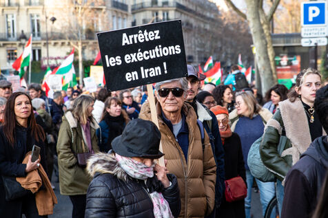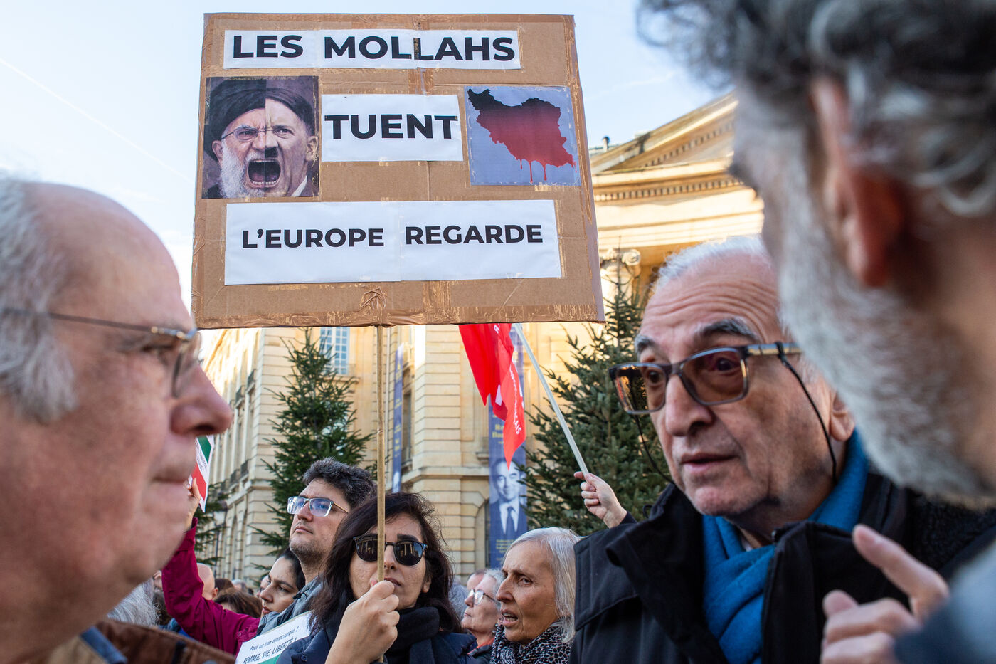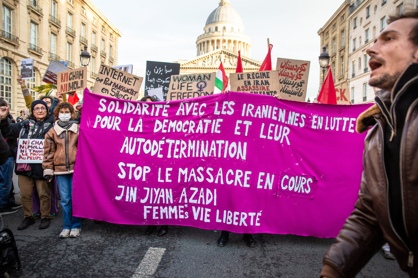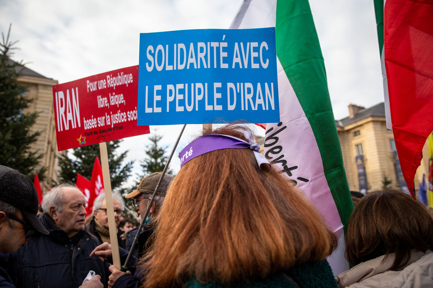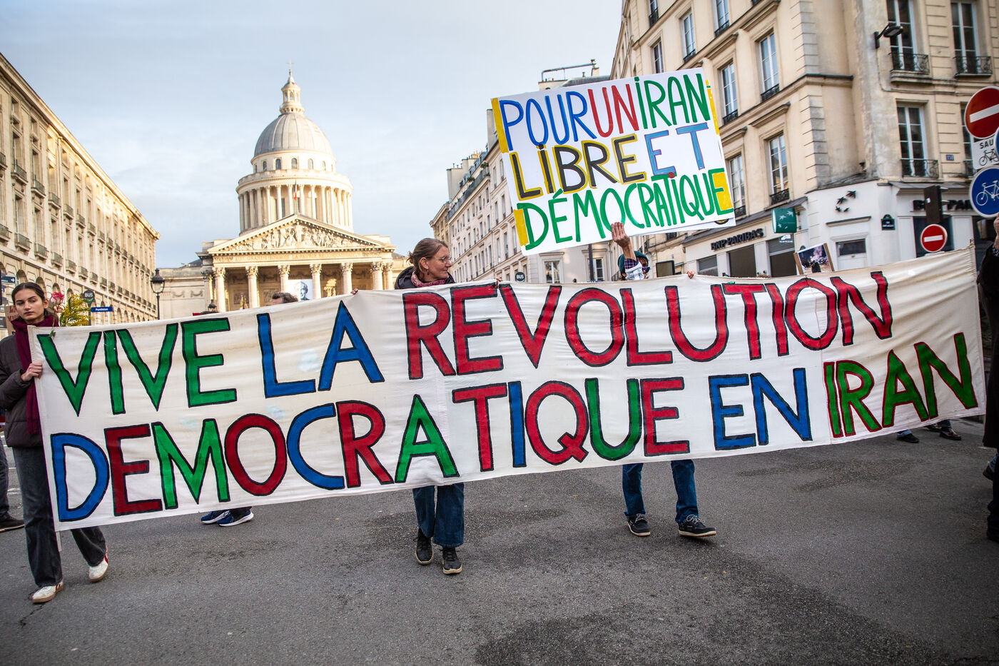 France, Paris, Place du Pantheon, January 17, 2026. Solidarity demonstration in support of the Iranian people, who have been severely repressed by the authoritarian theocratic regime of the mullahs during recent protests.