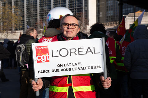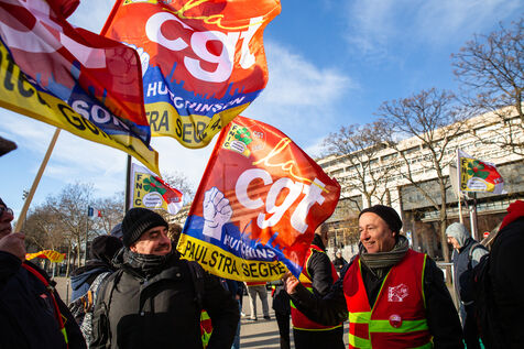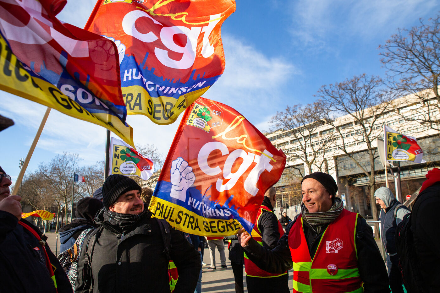 France, Paris, January 21, 2026. Rally in front of the Ministry of Economy, Finance, and Budget, organized by the National Federation of Chemical Industries union, calling for a better distribution of profits, stable jobs, decent wages, and an end to precarious contracts.