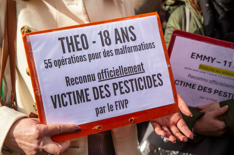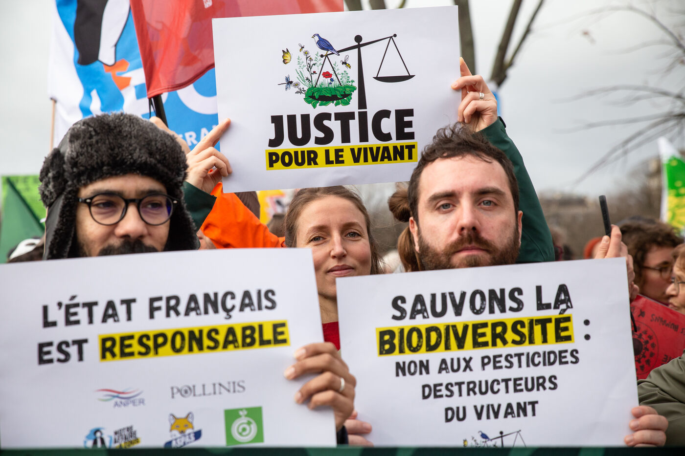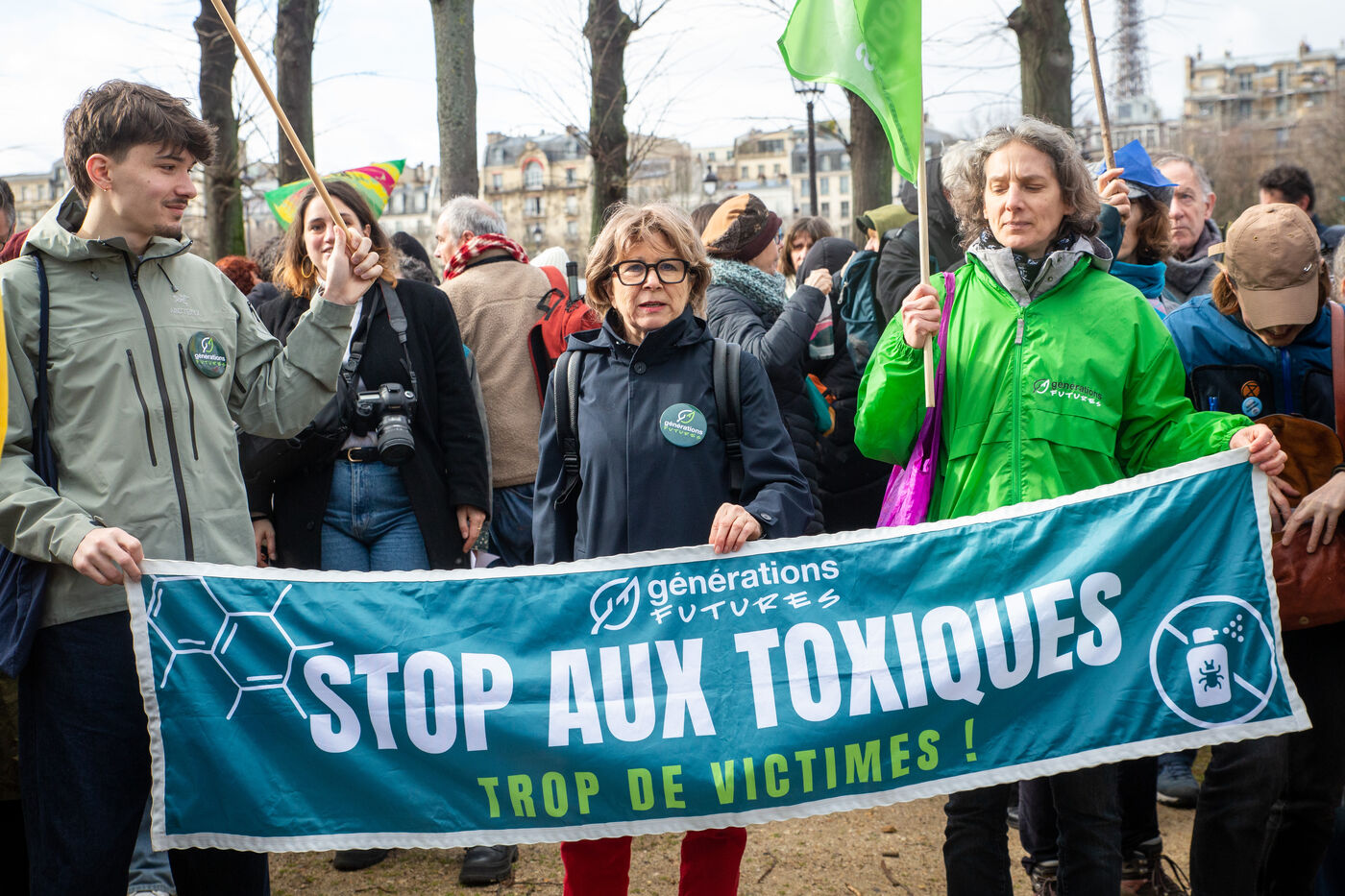 France, Paris, February 11, 2026. Mobilization for health, the environment, and farmers. Environmental associations, elected officials, groups of scientists and victims gathered to demonstrate their opposition to pesticides and support the Raux bill on the protection of drinking water collection points. In the National Assembly, after a record petition with more than 2 million signatures, the national representatives must devote a session to citizen mobilization against the Duplomb law and its agricultural model.