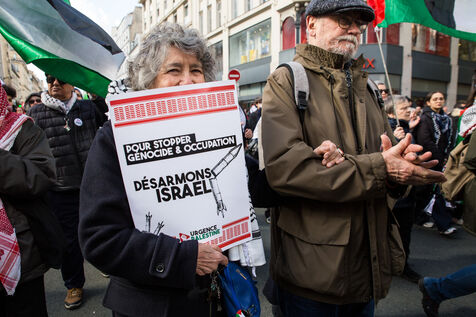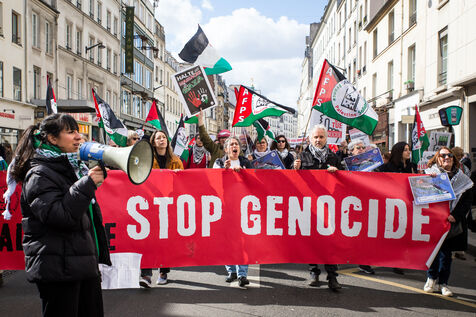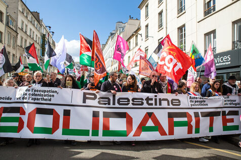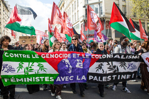 France, Paris, March 28, 2026. On Earth Day, a solidarity march in support of the Palestinian people.