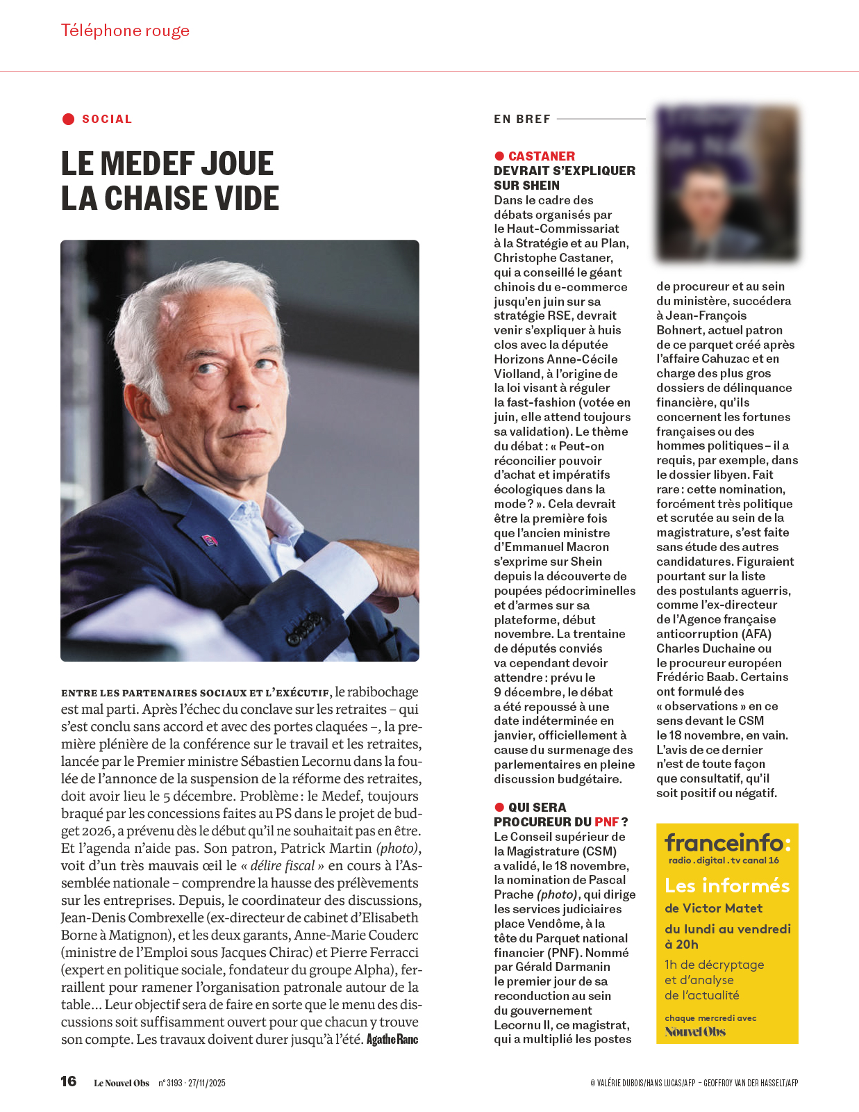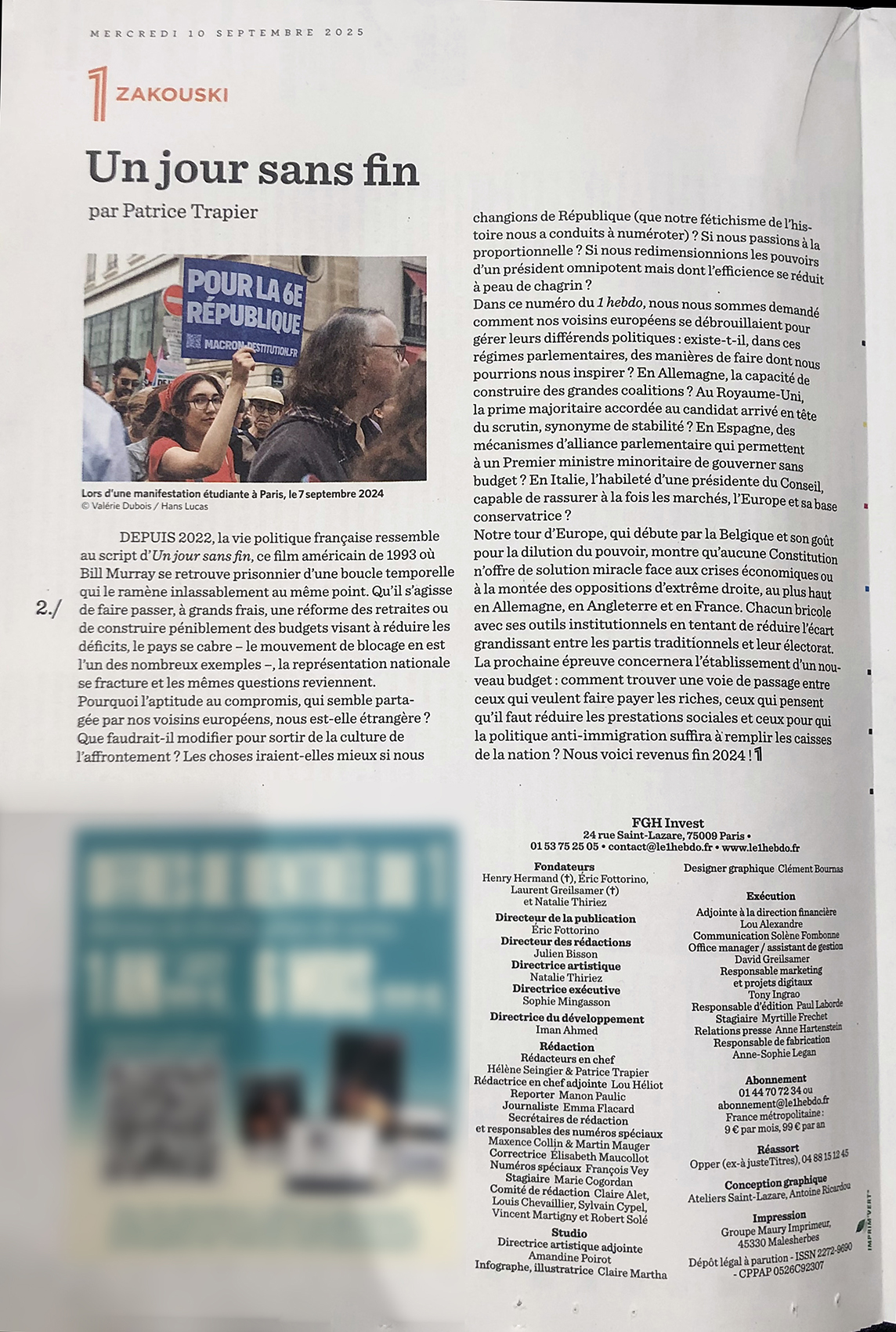 Valérie Dubois Publications Séries / Archive Culture — Environnement — Grand Ouest — Paris — Politique — Société — Spiritualité — Sport Sélection de séries La Croix Hebdo du 03/12/2025 La Croix Hebdo du 03/12/2025 Nouvel Obs du 27/11/2025 L'Humanite du 19/11/2025 La Croix du 14/11/2025 Hors-serie L'humanite Nov 2025. Les clés pour comprendre: La bataille du budget Ouest France du 06/11/2025 Journal du Dimanche du 02/11/2025 L'Humanité du 29/10/2025 Libération du 21/10/2025 La Croix du 20/10/2025 L'Humanité du 20/10/2025 LA TERRE - n°20 - Magazine bimestiel - Octobre 2025 La Vie Ouvriere - Ensemble - Octobre 2025 Le figaro du 04/10/2025 Libération du 04/10/2025 Liberation du 29/09/2025 L'Humanité du 18/09/2025 Cahiers Français - Septembre Octobre 2025 Le 1 hebdo du 10 /09/2025