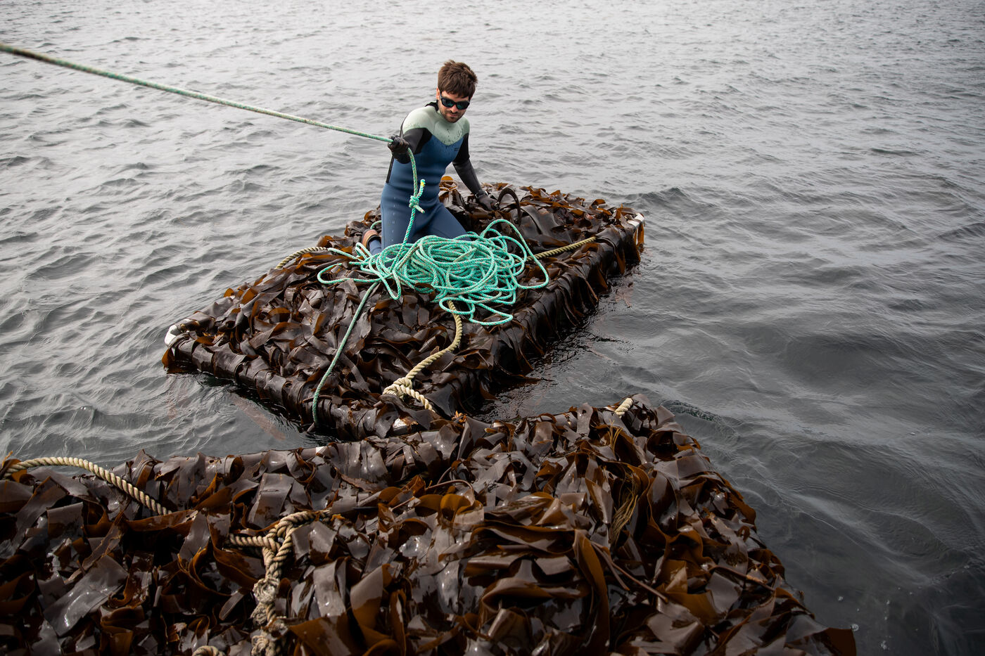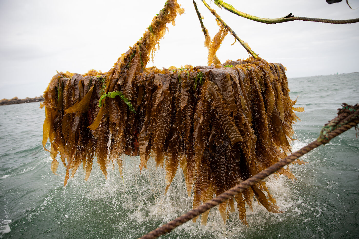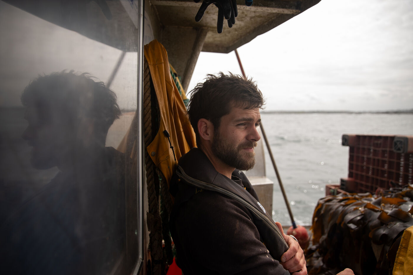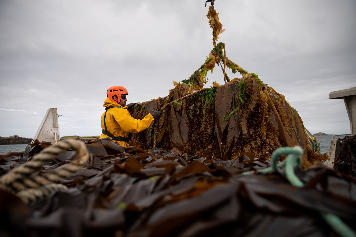 Sunday, May 25, 2025, 07:30 in the morning. The appointment has been made at Kerazan harbor in Lilia to accompany Guillaume, Alexandre and Titouan, three seamen from France Haliotis, the only company in Europe to raise wild abalone. The boarding sets the tone. We row to the boat moored to a dead body aboard a frail skiff. The aim of the day is to collect seaweed to feed the wild abalone growing in traps off the coast. Leaving the sheltered area at the mouth of the Aber Wrac'h, it's a 30 minute sail to the seaweed collection site. The ship and sailors face a 2.50 meter swell with impassivity, which is quite normal for these men who are used to the fury of the ocean. We finally come in sight of a rocky islet just above the surface of the water, the tide is almost out, and work can begin after a short break for lunch. A lifeline is stretched between our boat and the collection area, in the middle of the vast seaweed fields of North Finistère. The work looks like something from another era. Immersed in waist-deep water, the sailors slice through the seaweed with billhooks, the gestures precise and endlessly repeated, five tenders each loaded with 700 kilos of the precious resource before the tide rises too much. Once the ship has been loaded, it heads for the concession where the abalone grow. Unlike farming areas on land, here the production site has been transformed into a veritable refuge for biodiversity. The second phase of the day begins. Four by four, the trays containing the abalone are lifted from the seabed by crane to be filled with the collected seaweed that will feed the precious mollusks for a month. Here, too, the movements are precise, the operation is dangerous, and concentration is the order of the day. 72 trays are thus filled before the day comes to an end, heralding the return to port. It will be three to four years before the wild abalone can be sold on the country's finest tables.