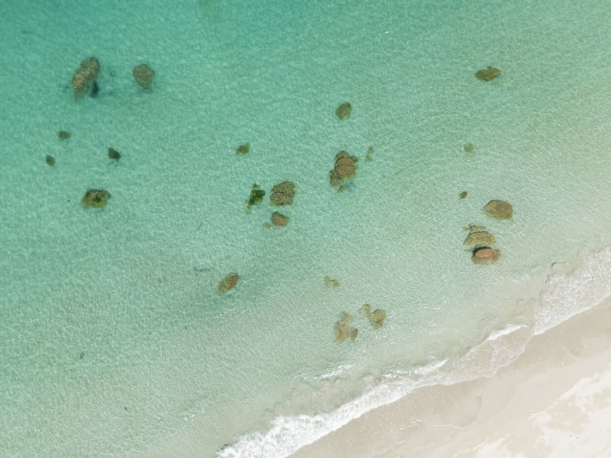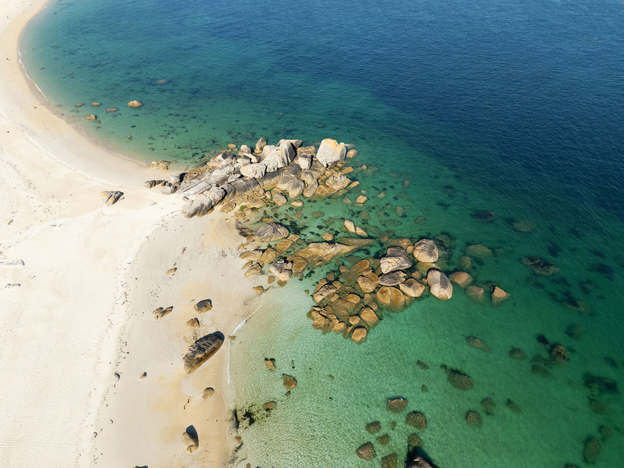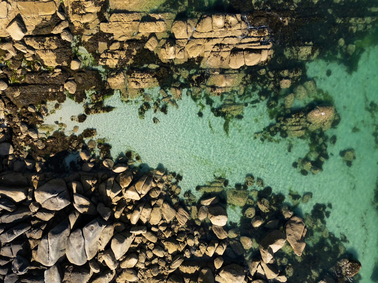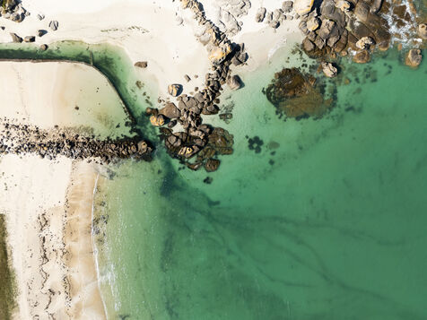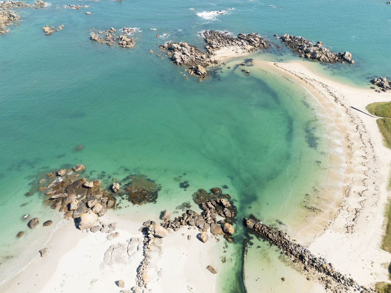 Fine sand, deserted beaches dotted with rocks whose shapes stimulate the imagination, turquoise water that changes with the light. Kerlouan's picture-postcard scenery invites you to contemplate and get away from it all. Flying over the Breton Caribbean at Kerlouan.