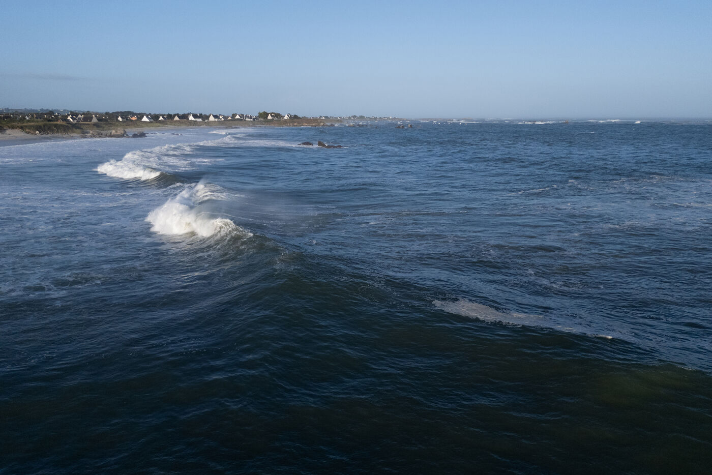 Mardi 26 aout 2025, les côtes françaises sont touchées par la houle générée par le cyclone Erin. Le Finistère est comme à son habitude en première ligne, offrant un spectacle toujours impressionnant et un terrain de jeu inhabituel pour la saison pour les surfers les plus aguerris.