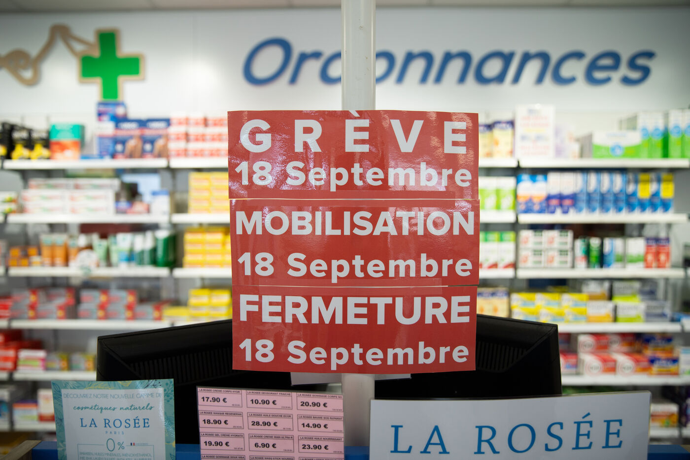 Following a decree issued by former Prime Minister François Bayrou announcing a reduction in drugstore margins in favor of pharmaceutical laboratories, 98 percent of drugstores across the country will be closed during the inter-union strike on September 18, 2025.