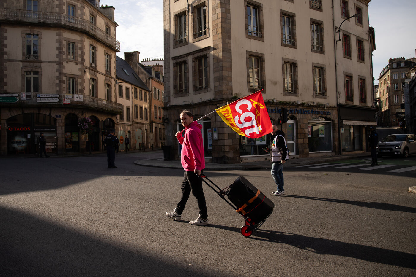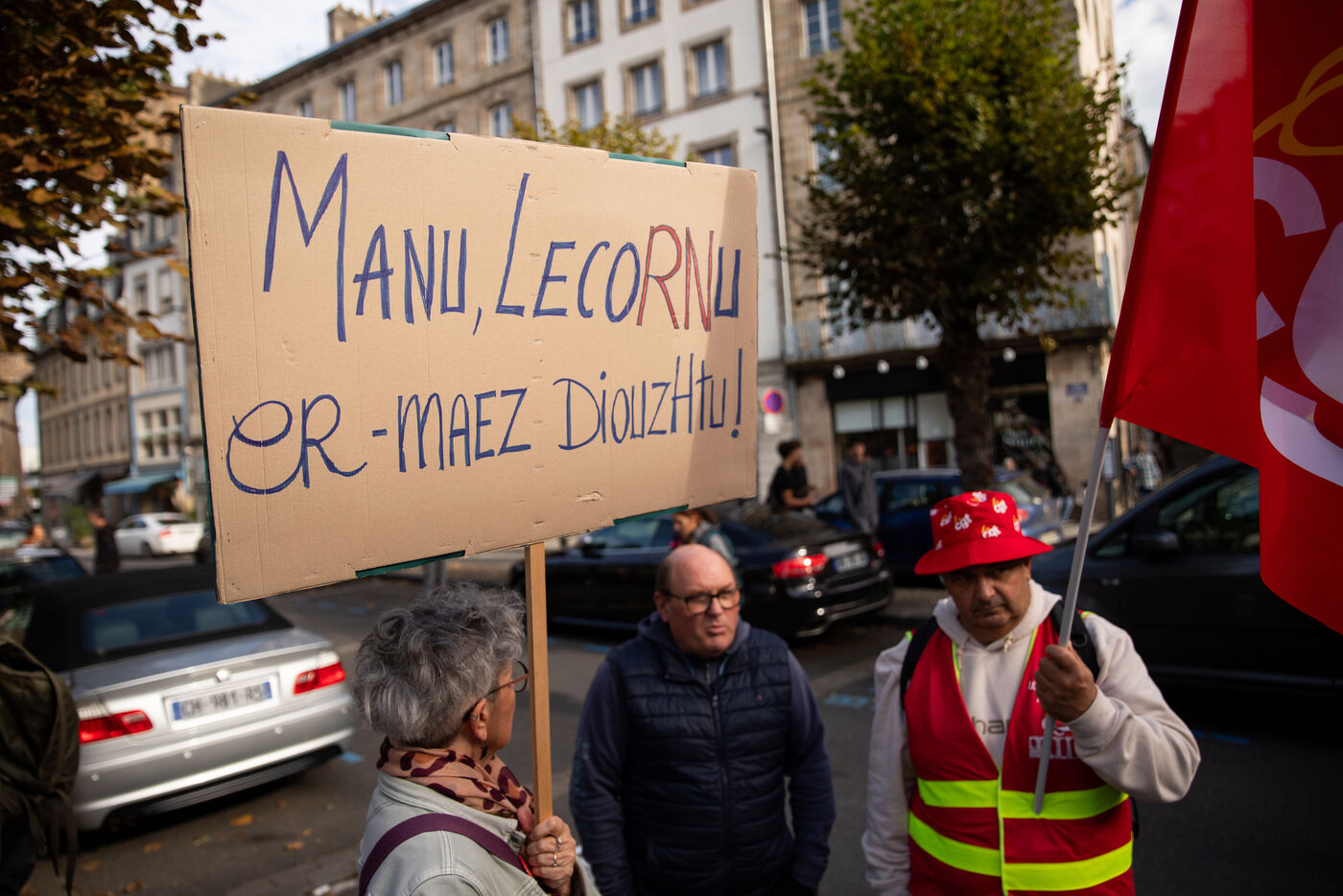 October 02, 2025. Second inter-union demonstration following the mobilization of the “Block Everything” movement on September 10. 1000 people demonstrate in the streets of Morlaix.