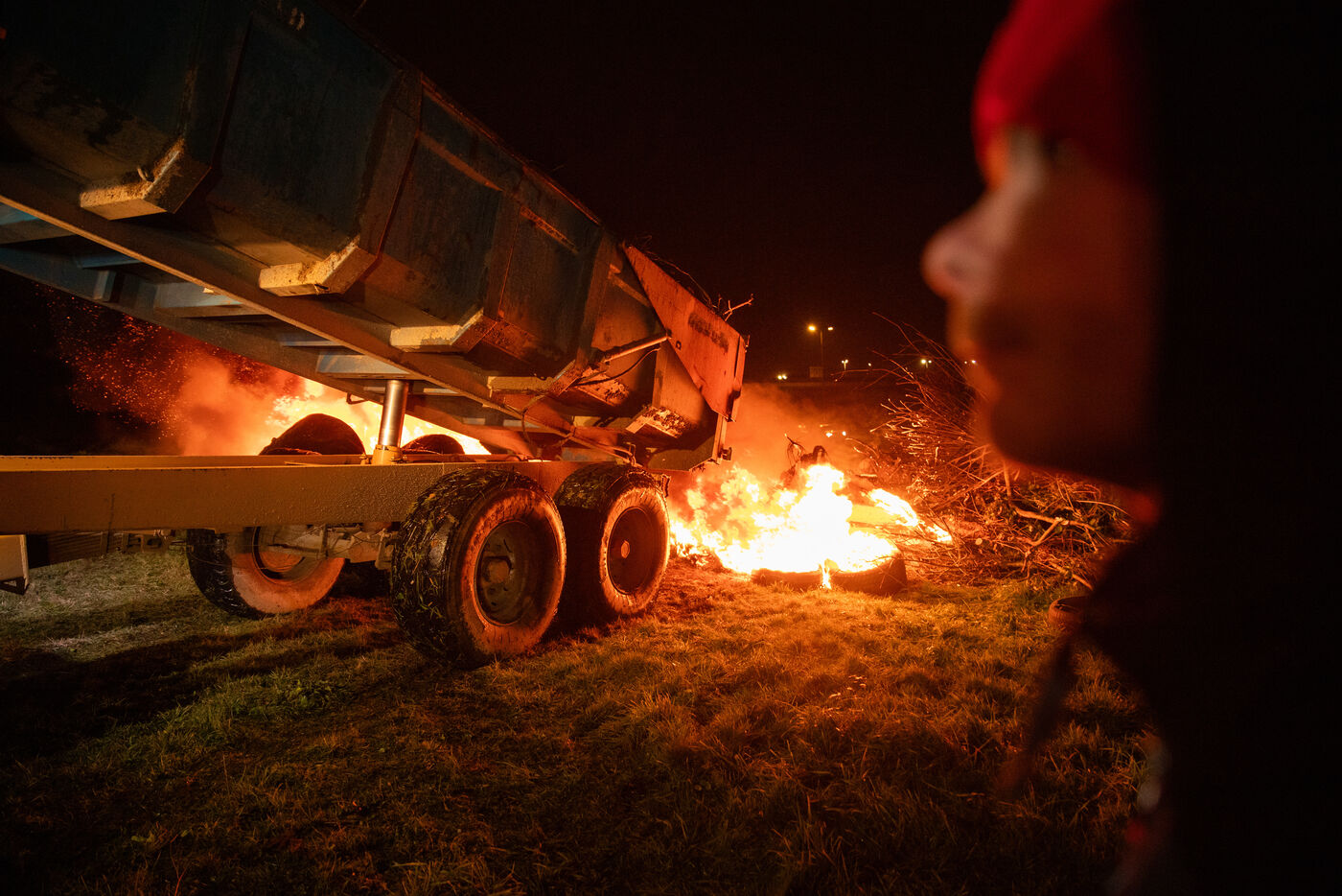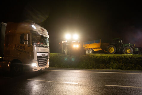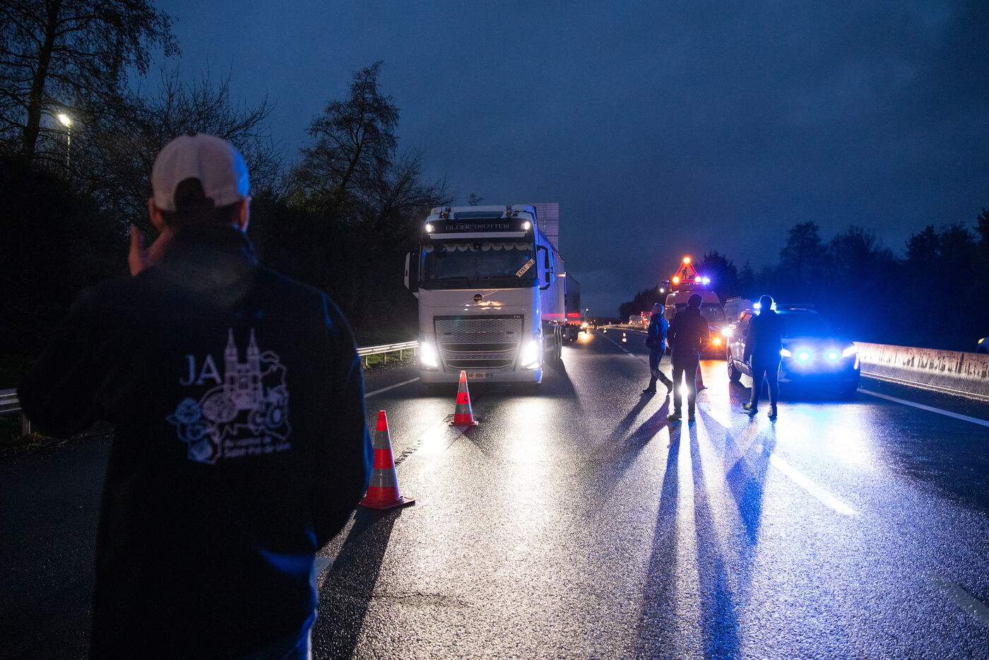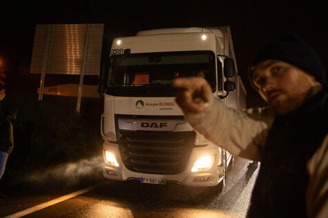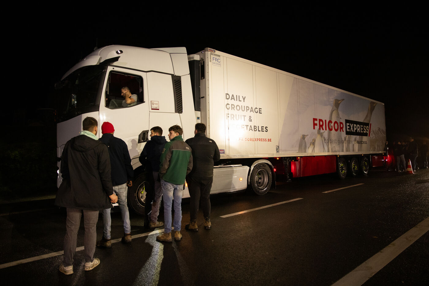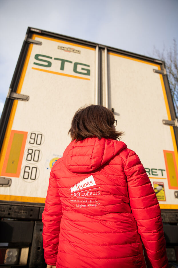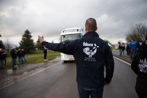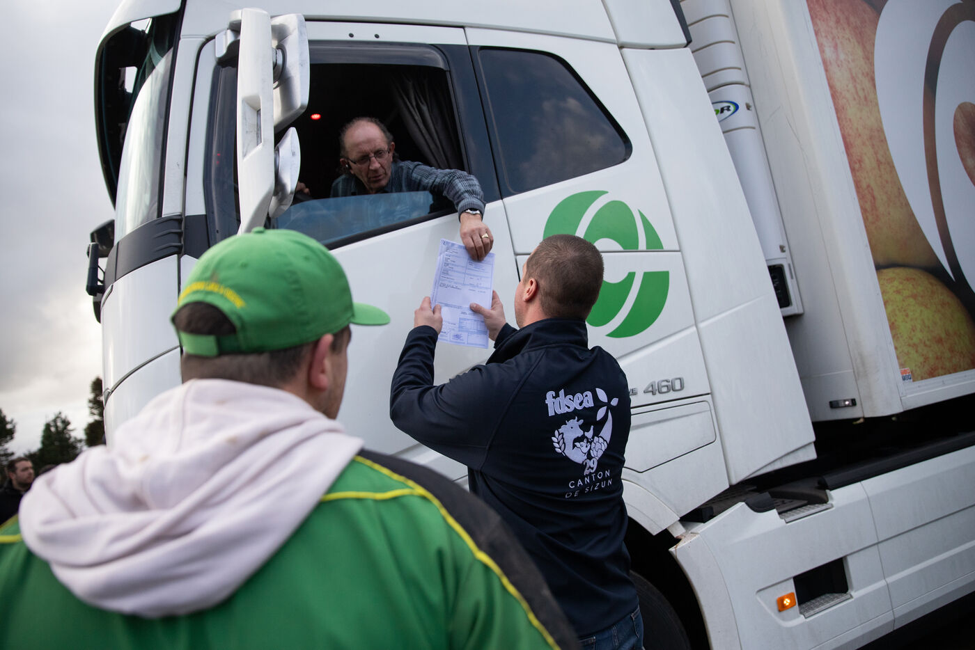 Les Jeunes Agriculteurs et la FDSEA du Finistère contrôlent les marchandises sur la RN 12