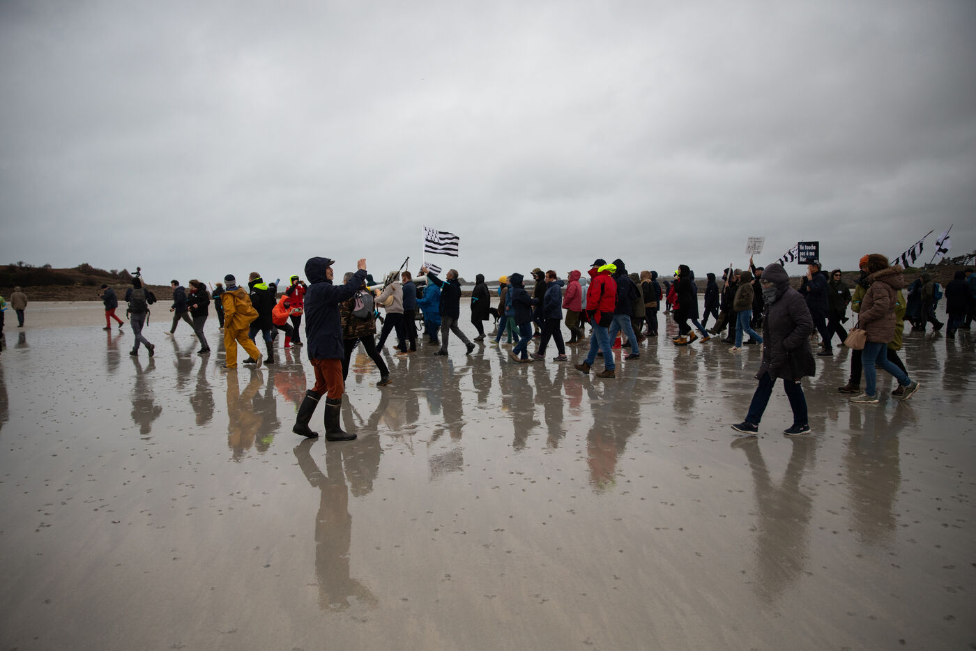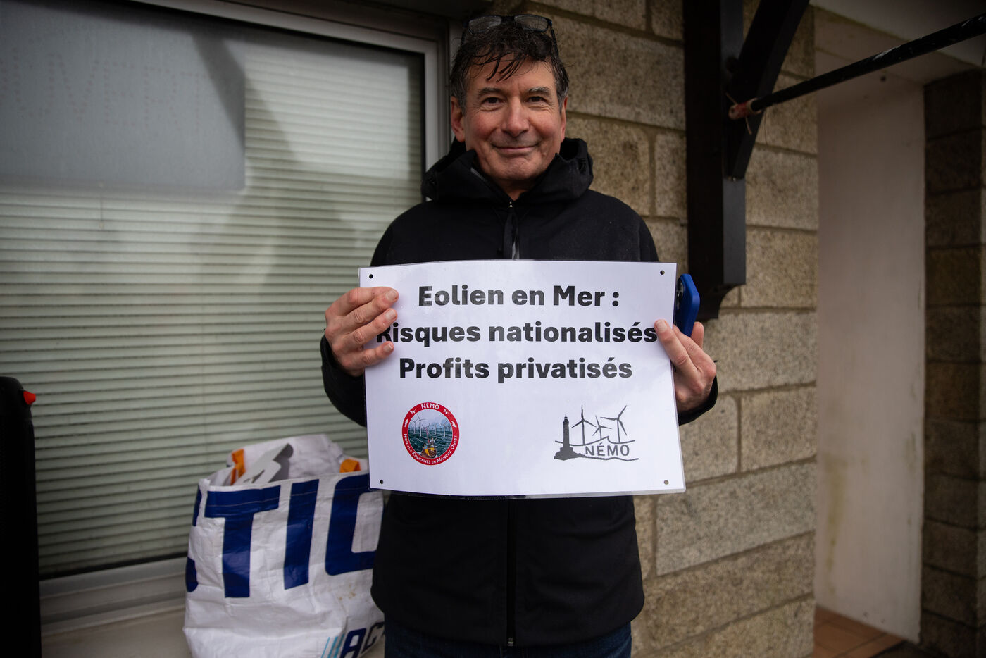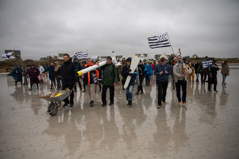 Le collectif NEMO ( Non aux Eoliennes en Manche Ouest ) a organisé dimanche 22 Février une manifestation contre le projet éolien en mer Bretagne Nord Ouest. D'ici 2035, 110 éoliennes de 287 mètres de hauteur devraient être construites au large de la côte bretonne du Haut-Léon. Les 200 manifestants rassemblés dénoncent un projet couteux, mortifère pour le littoral et sa biodiversité. Après des prises de parole, le cortège s'est dirigé vers l'île de Sieck pour y installersymboliquement une réplique d'éolienne avant de la détruire.