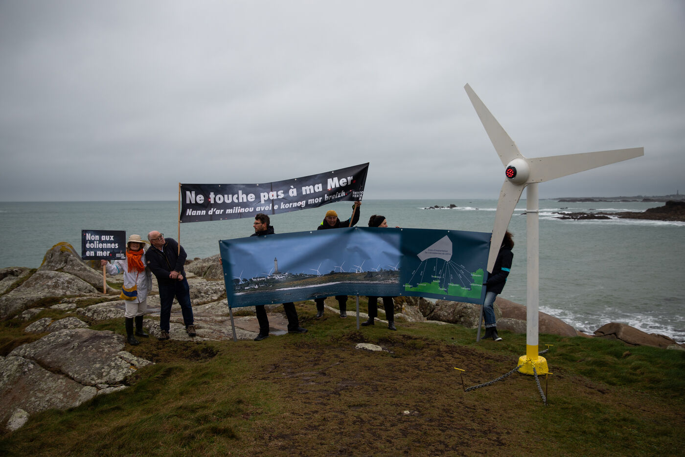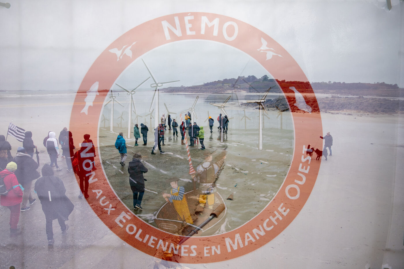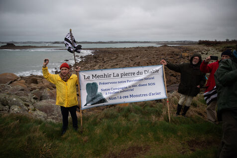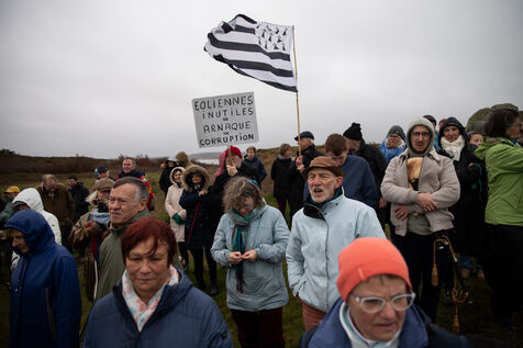 On Sunday, February 22, the NEMO collective ( Non aux Eoliennes en Manche Ouest ) organized a protest against the offshore wind farm project in northwestern Brittany. By 2035, 110 wind turbines, each 287 meters tall, are expected to be built off the coast of Haut-Léon in Brittany. The 200 protesters gathered to denounce a project that is costly and deadly for the coastline and its biodiversity. After speeches, the procession headed to the island of Sieck to symbolically install a wind turbine replica before destroying it.