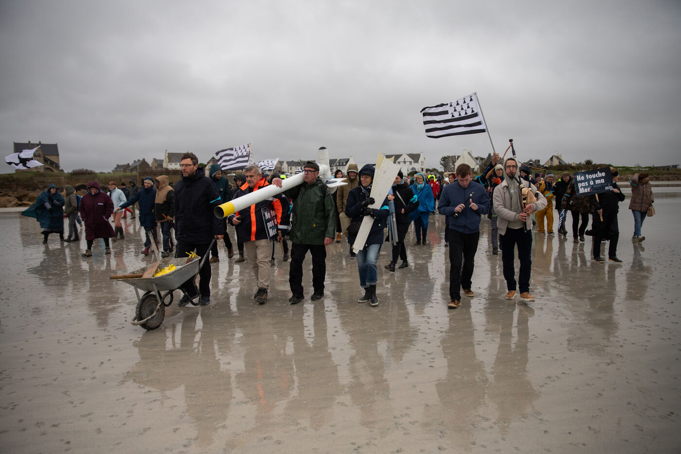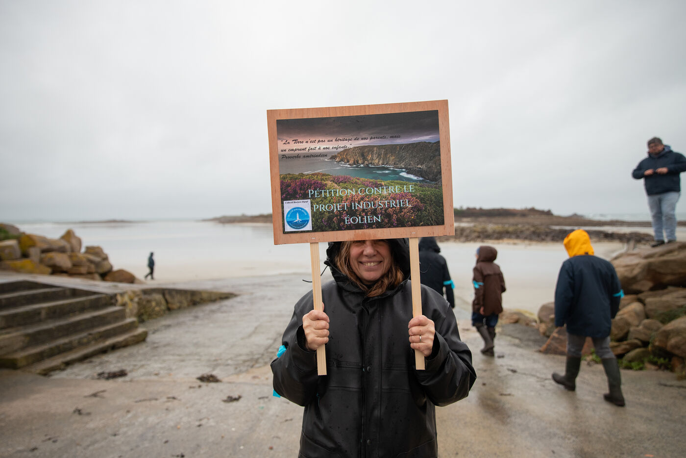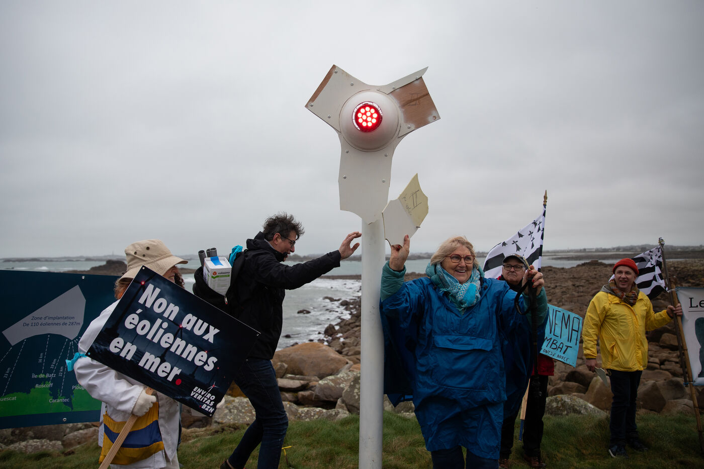On Sunday, February 22, the NEMO collective ( Non aux Eoliennes en Manche Ouest ) organized a protest against the offshore wind farm project in northwestern Brittany. By 2035, 110 wind turbines, each 287 meters tall, are expected to be built off the coast of Haut-Léon in Brittany. The 200 protesters gathered to denounce a project that is costly and deadly for the coastline and its biodiversity. After speeches, the procession headed to the island of Sieck to symbolically install a wind turbine replica before destroying it.