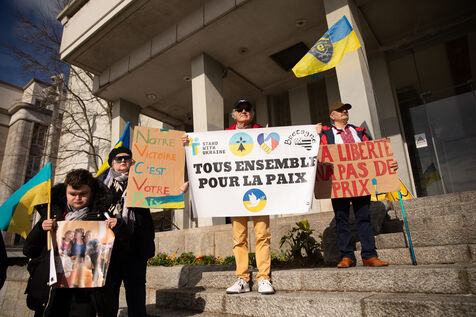 Samedi 28 Février, 200 personnes, réfugiés ukrainiens, association et citoyens solidaires, se sont rassemblées place de la Liberté à Brest pour soutenir l'Ukraine quatre ans après le début de l'invasion Russe.