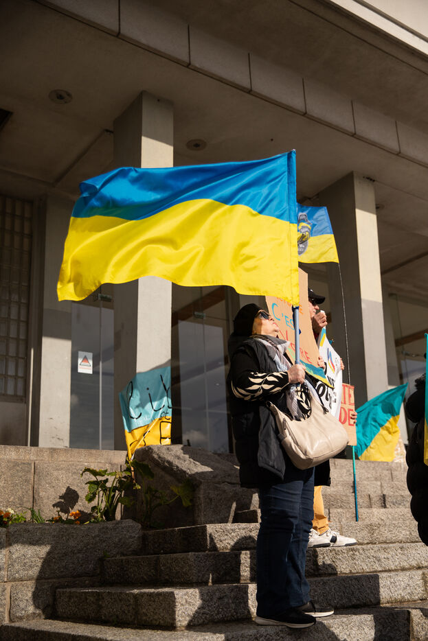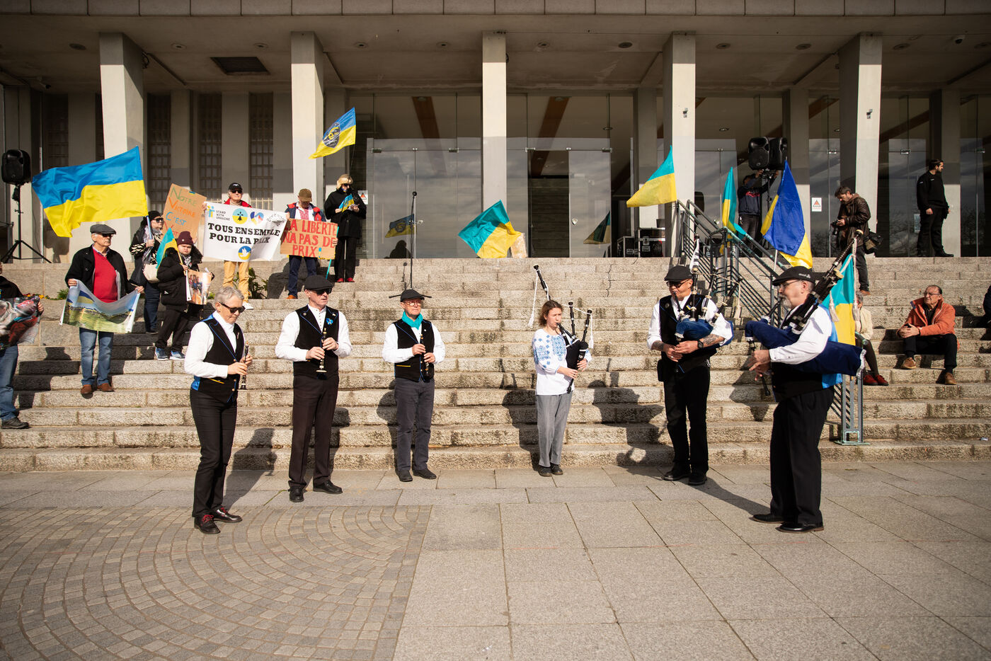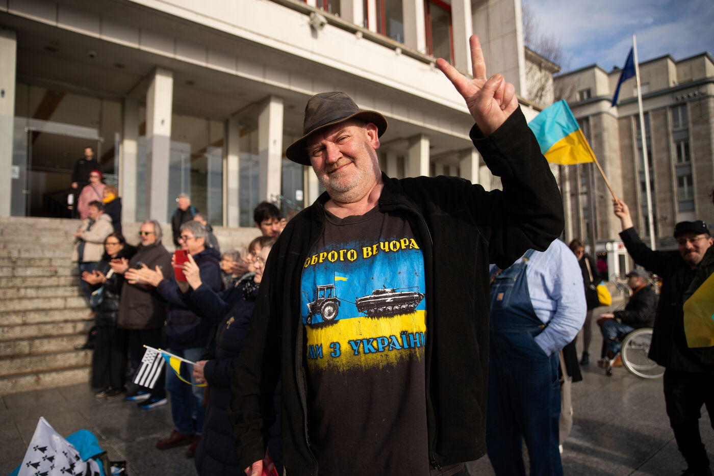 On Saturday, February 28, 200 people, including Ukrainian refugees, associations, and supportive citizens, gathered at Place de la Liberté in Brest to show their support for Ukraine four years after the start of the Russian invasion.