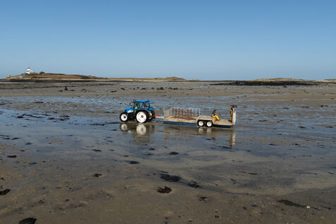 Entre Océan Atlantique et Manche, sur la côte du Finistère Nord, l'archipel de Lilia sur la commune de Plouguerneau. Dominé par la silhouette du phare de l'île Vierge, le paysage est saisissant. C'est dans ce cadre exceptionnel, profitant d'une nature riche et préservée, que depuis 1986 la maison Legris cultive ses huîtres. Une activité qui nécessite toutes les attentions. A chaque grande marée basse, un étrange ballet se joue sur l'estran. Les tables portant les poches d'huîtres se découvrent, permettant aux ostréiculteurs de secouer et de retourner les poches contenant le précieux mollusque. Brassées régulièrement, les huîtres gardent ainsi une forme équilibrée. Il faudra entre trois et cinq années pour obtenir un produit maintenant largement réputé, fruit d'un travail passionné régulièrement récompensé. Pour se rendre compte de l'ampleur de la tache et profiter d'un spectacle impressionnant, il faut prendre de la hauteur. Vol au dessus des parcs à huîtres de la maison Legris à Lilia.
