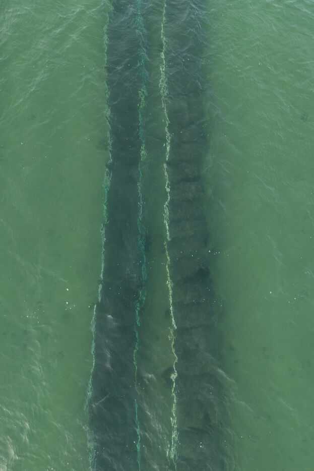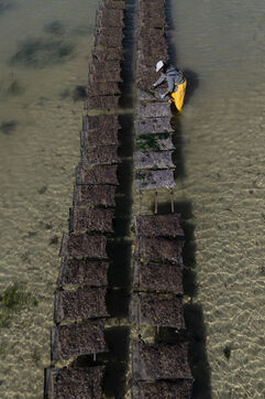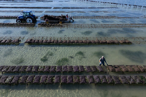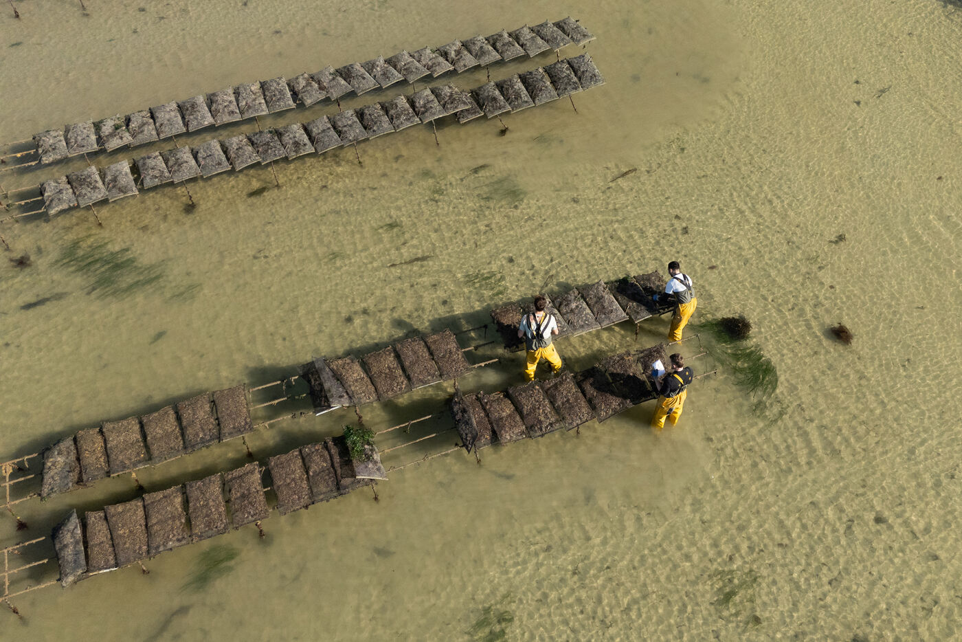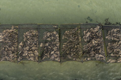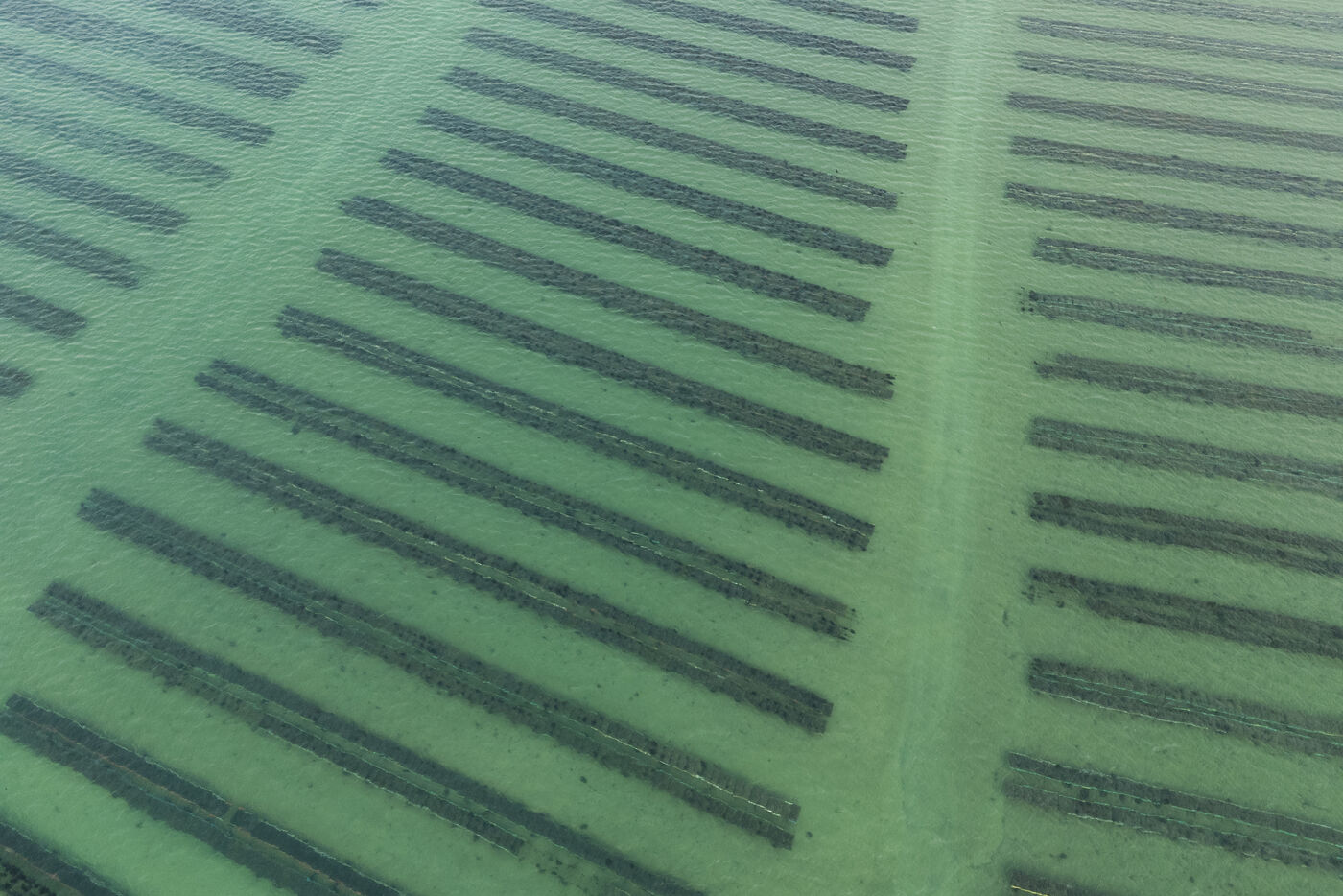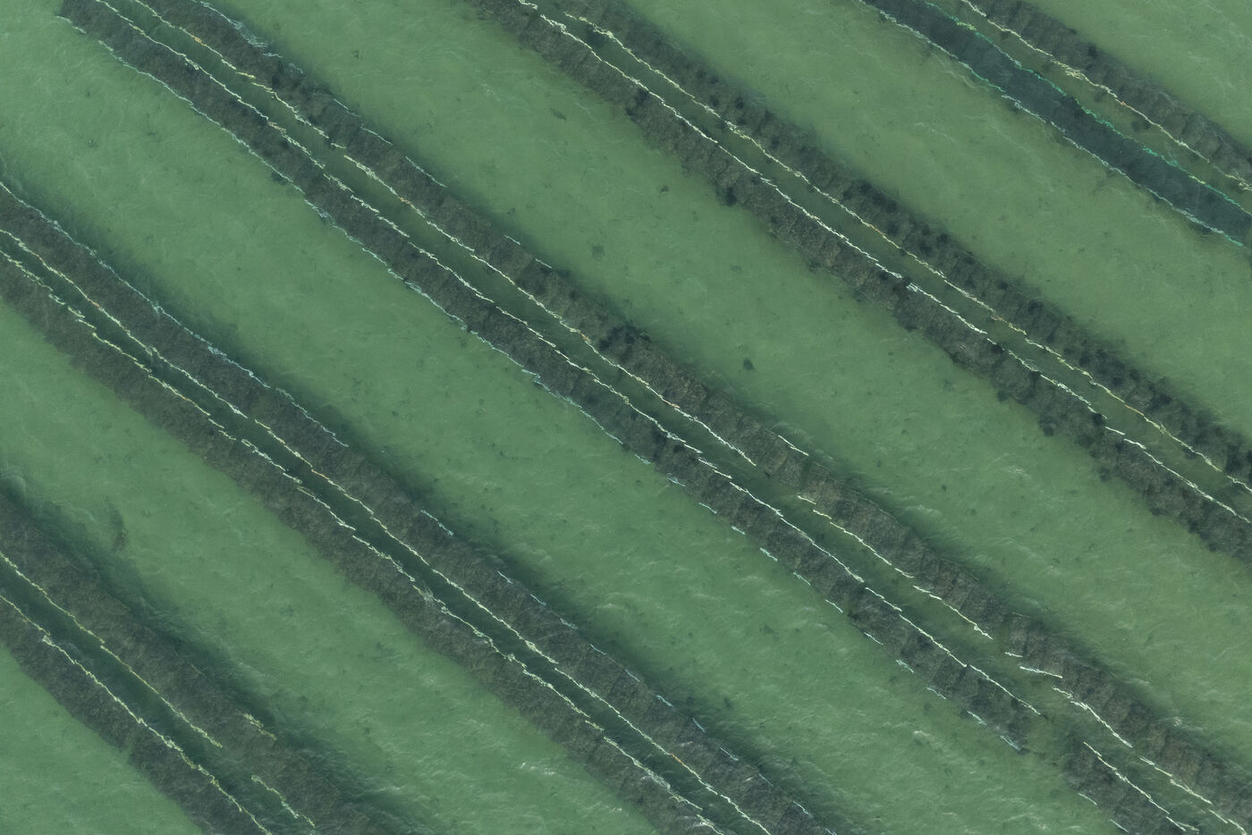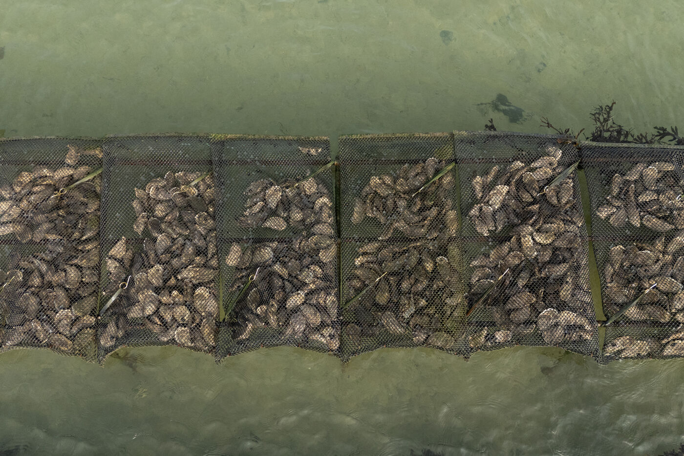 Oyster farms seen from sky at Lilia