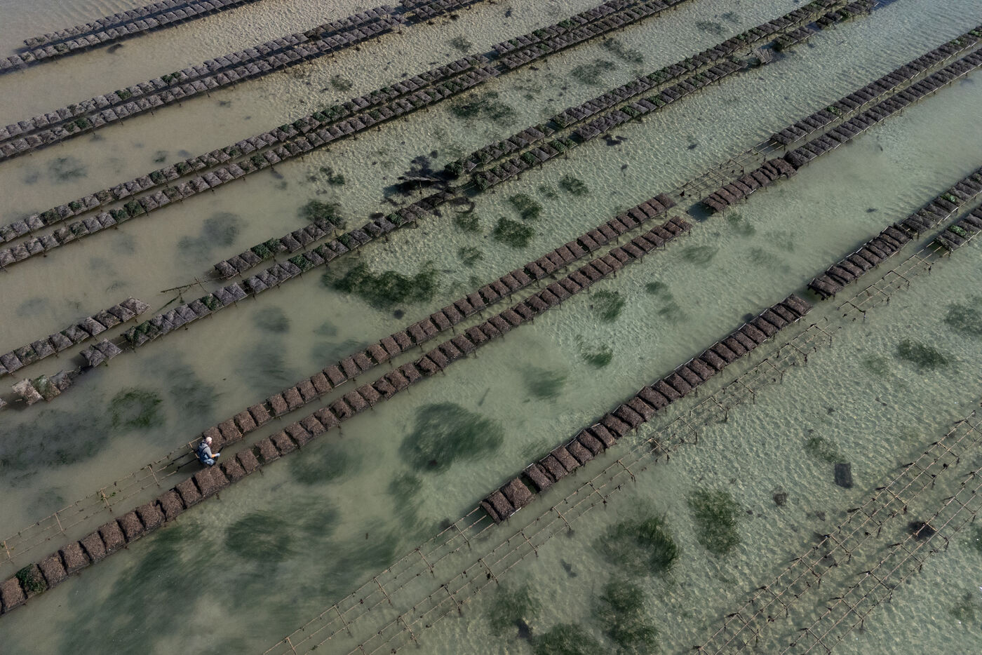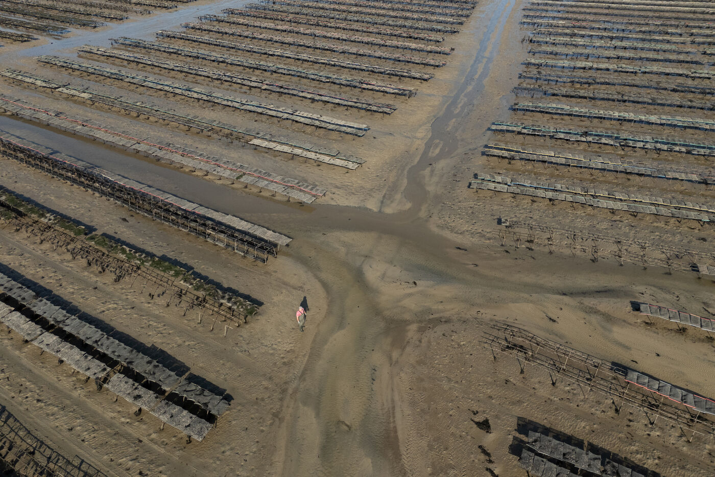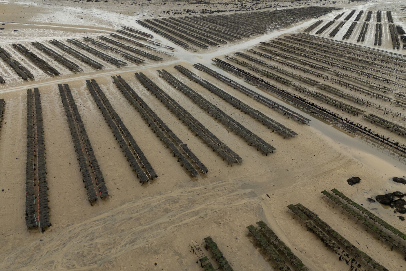 Les parcs à huîtres vus du ciel à Lilia