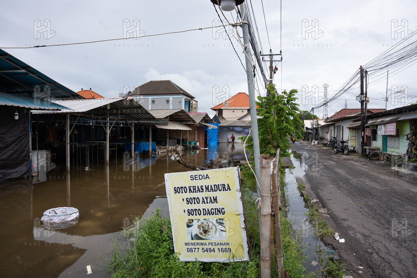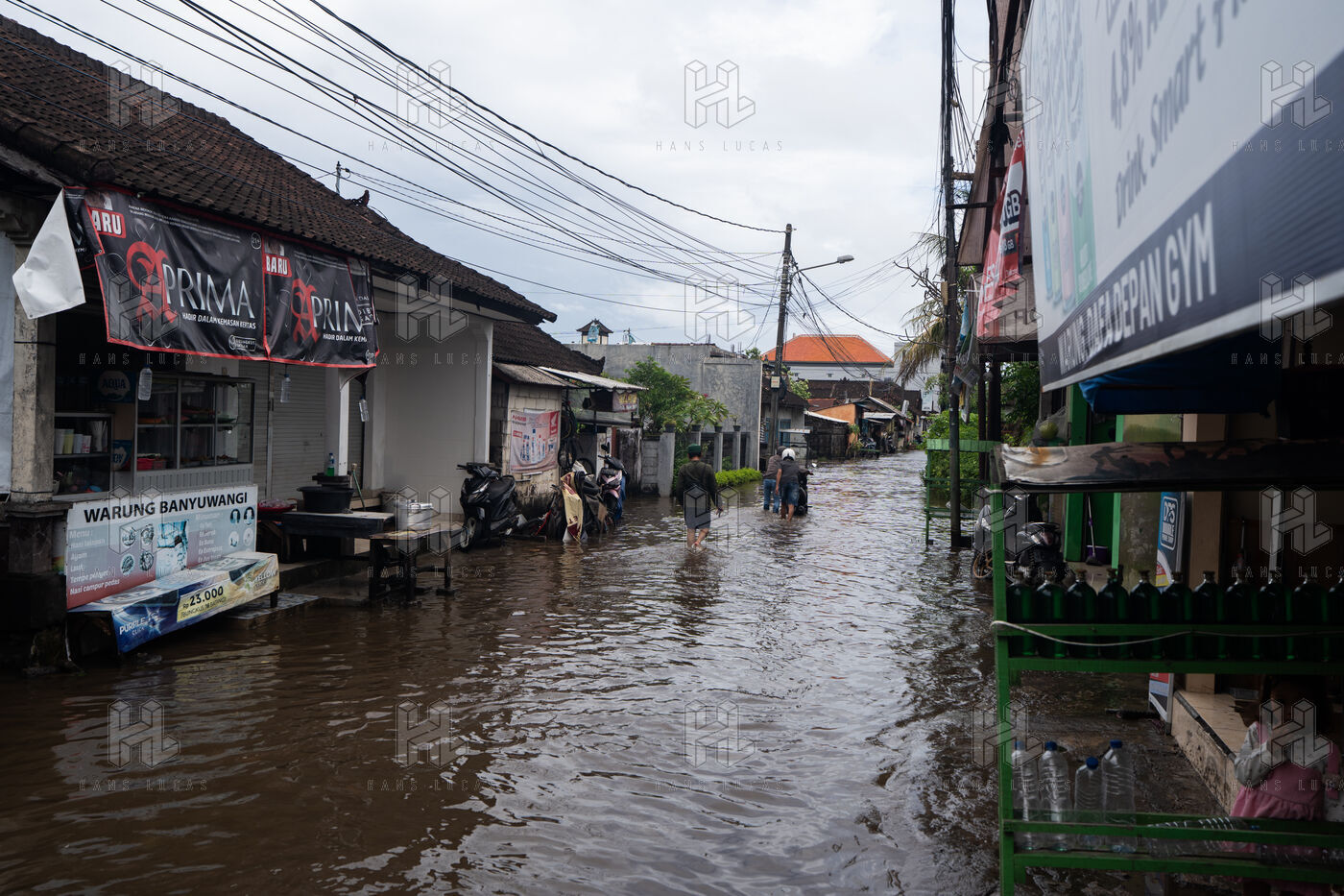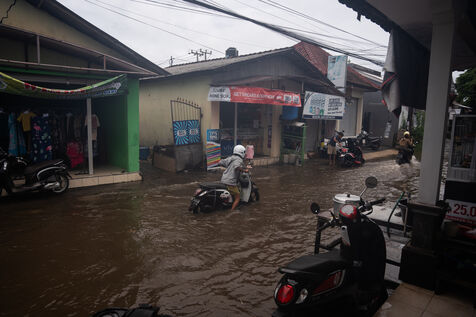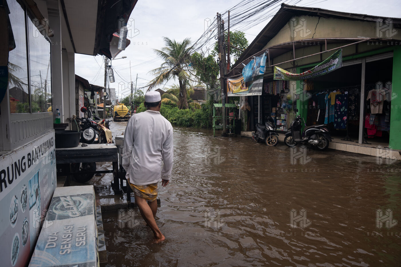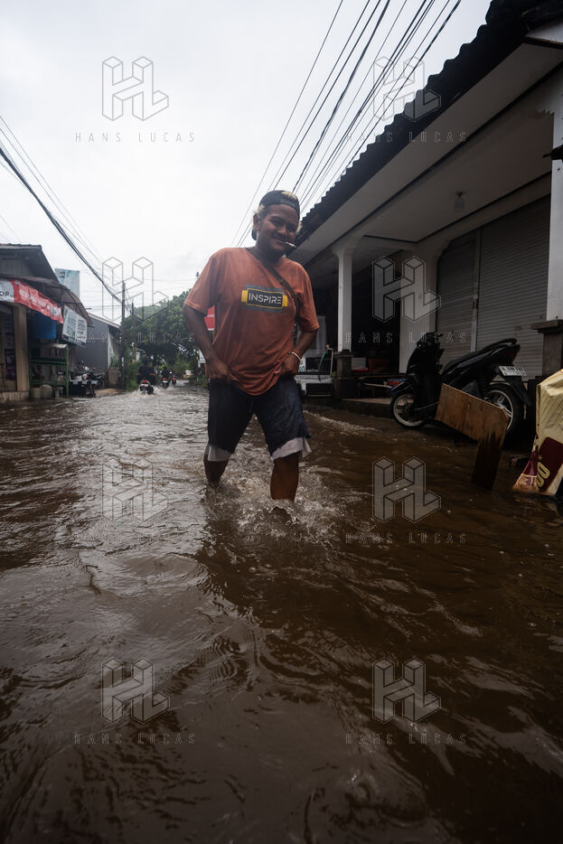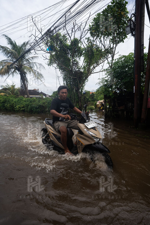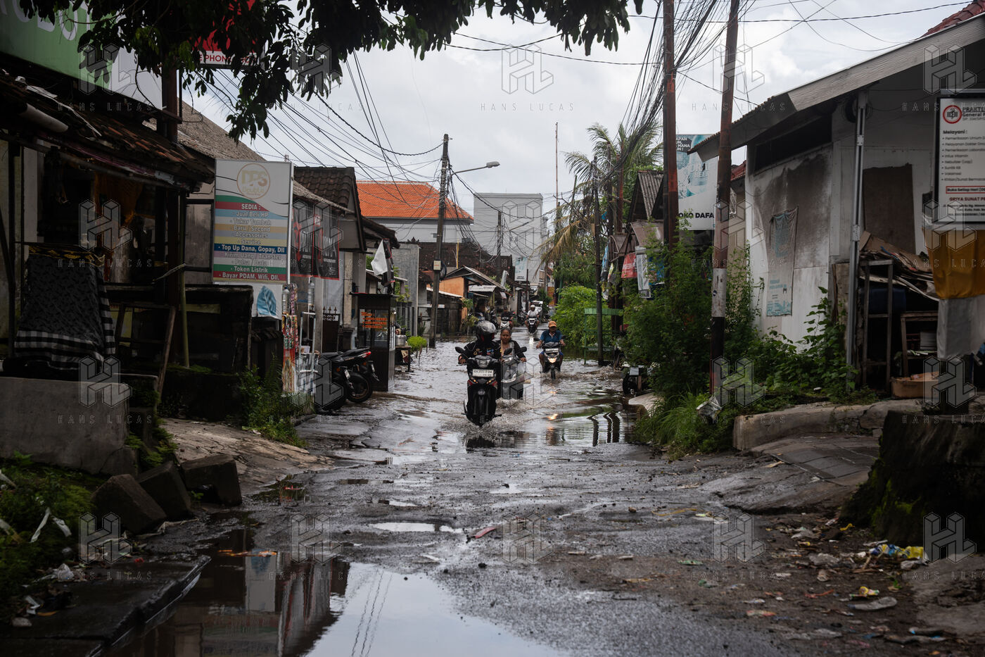 On February 25, 2026, heavy rainfall triggered flooding in several neighborhoods near Denpasar on the island of Bali in Indonesia. Streets and local shops were inundated with water, forcing residents and scooter drivers to move through flooded roads.