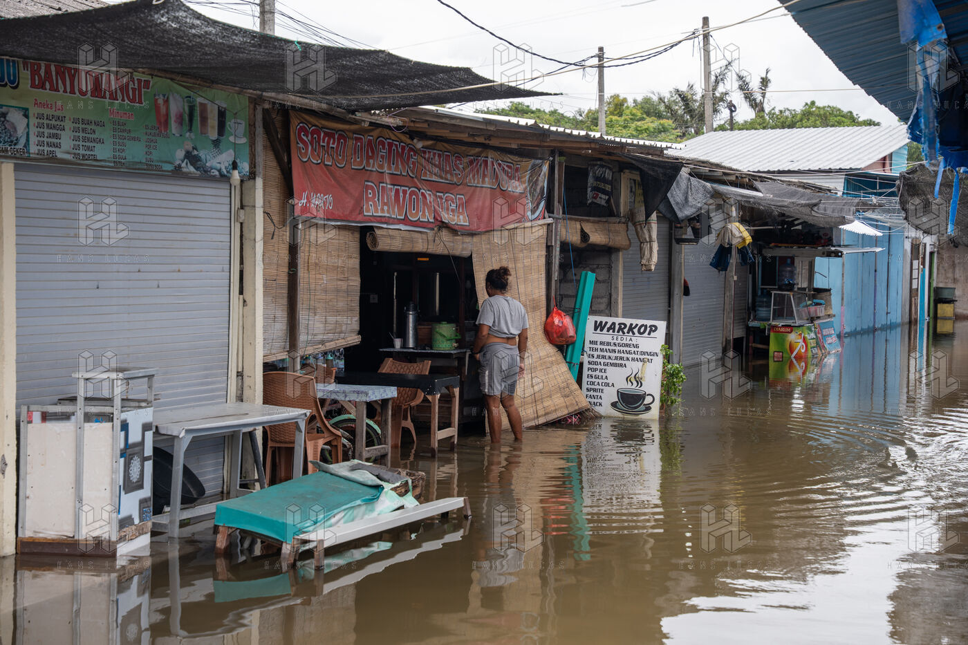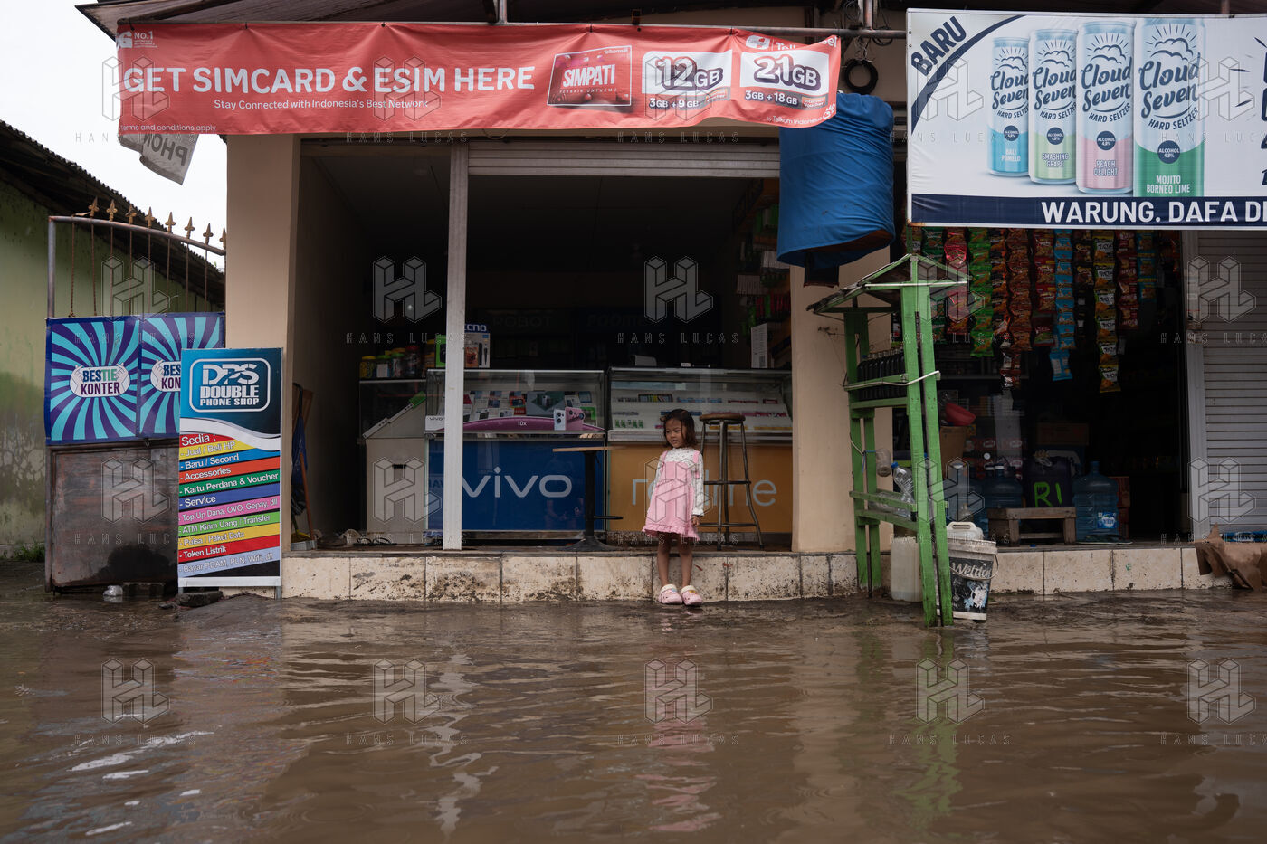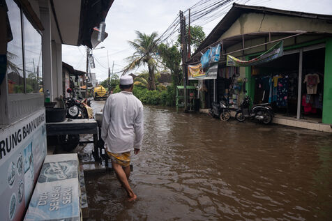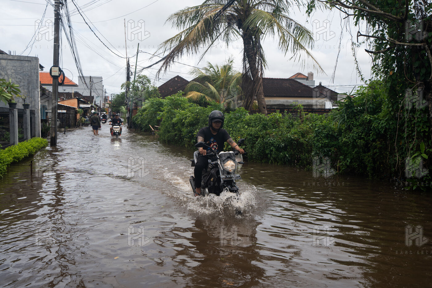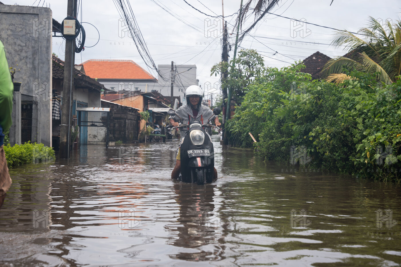 On February 25, 2026, heavy rainfall triggered flooding in several neighborhoods near Denpasar on the island of Bali in Indonesia. Streets and local shops were inundated with water, forcing residents and scooter drivers to move through flooded roads.