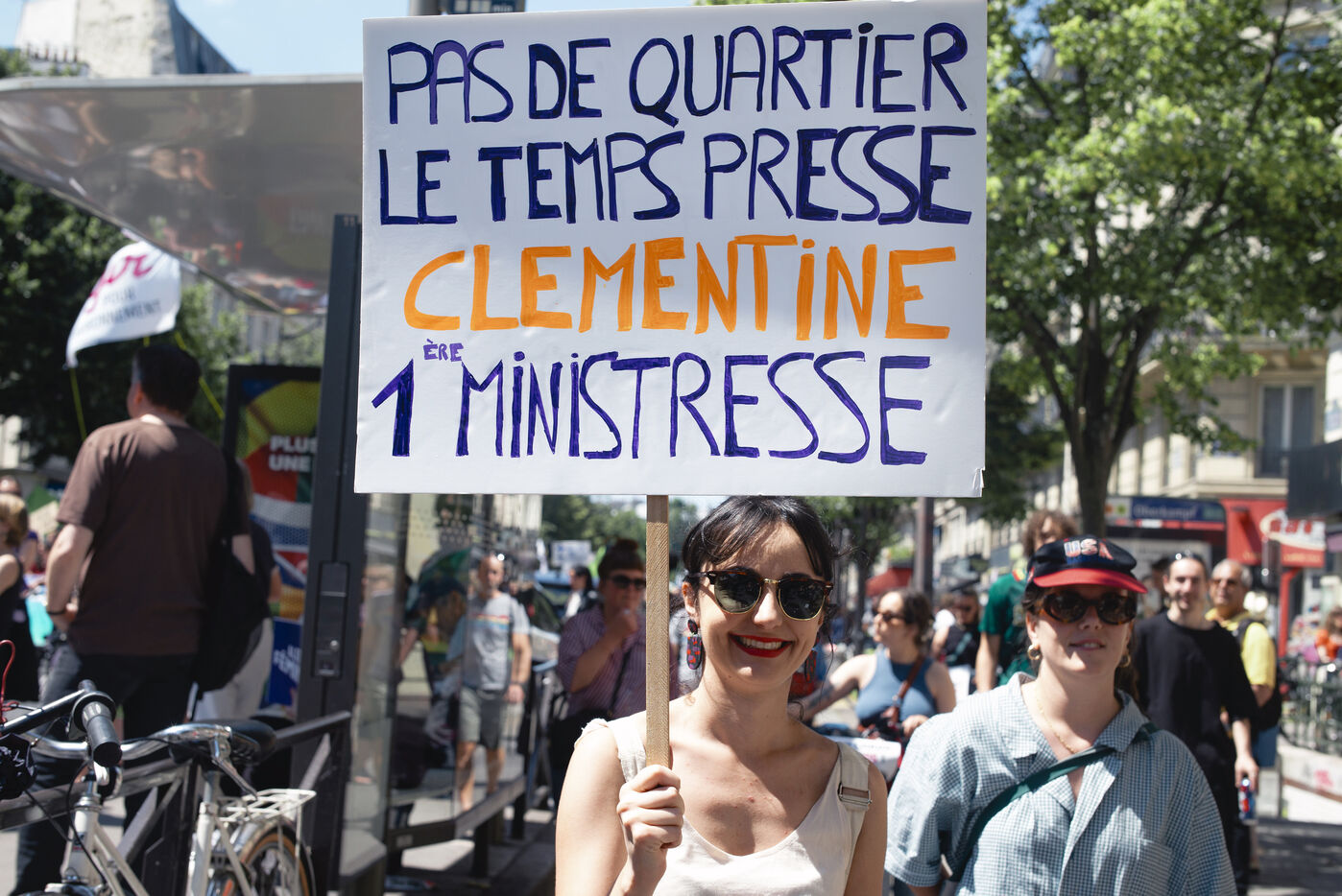 A une semaine du premier tour des élections législatives anticipées, des manifestants étaient mobilisés ce dimanche 23 juin, à Paris, pour alerter sur la menace que représente une éventuelle accession au pouvoir du Rassemblement national sur les droits des femmes.