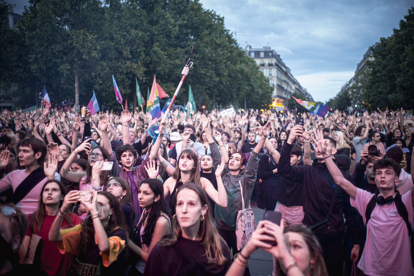 On Sunday 30 June 2024, hundreds of people gathered in Place de la République in support of the New Popular Front (NFP), the left-wing coalition that came second in the first round of the early parliamentary elections.